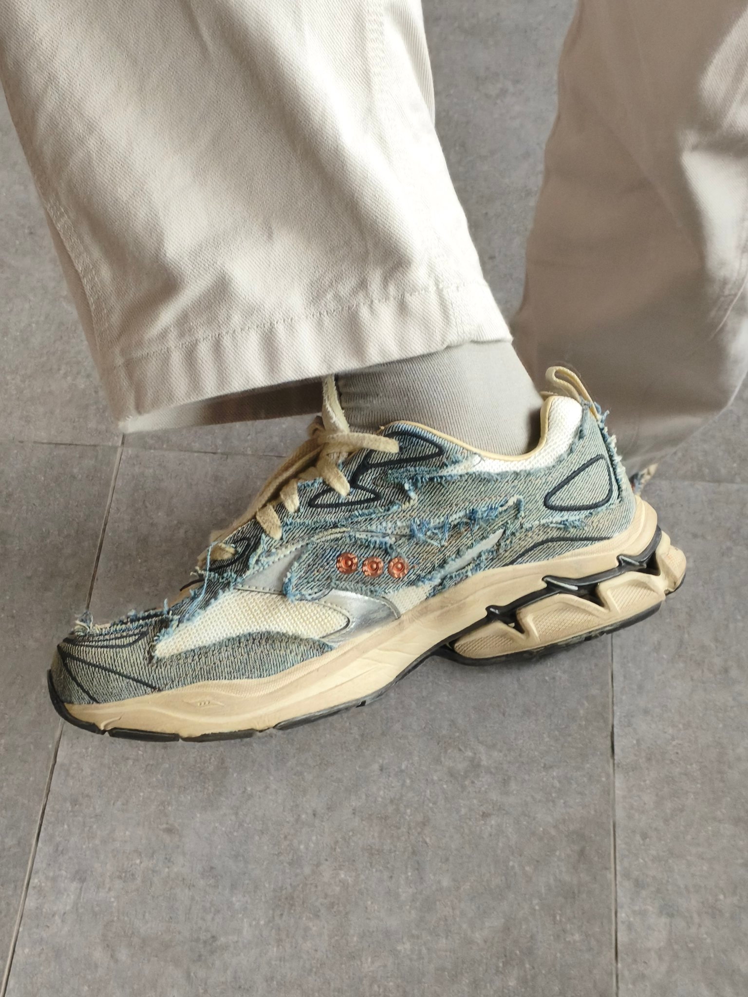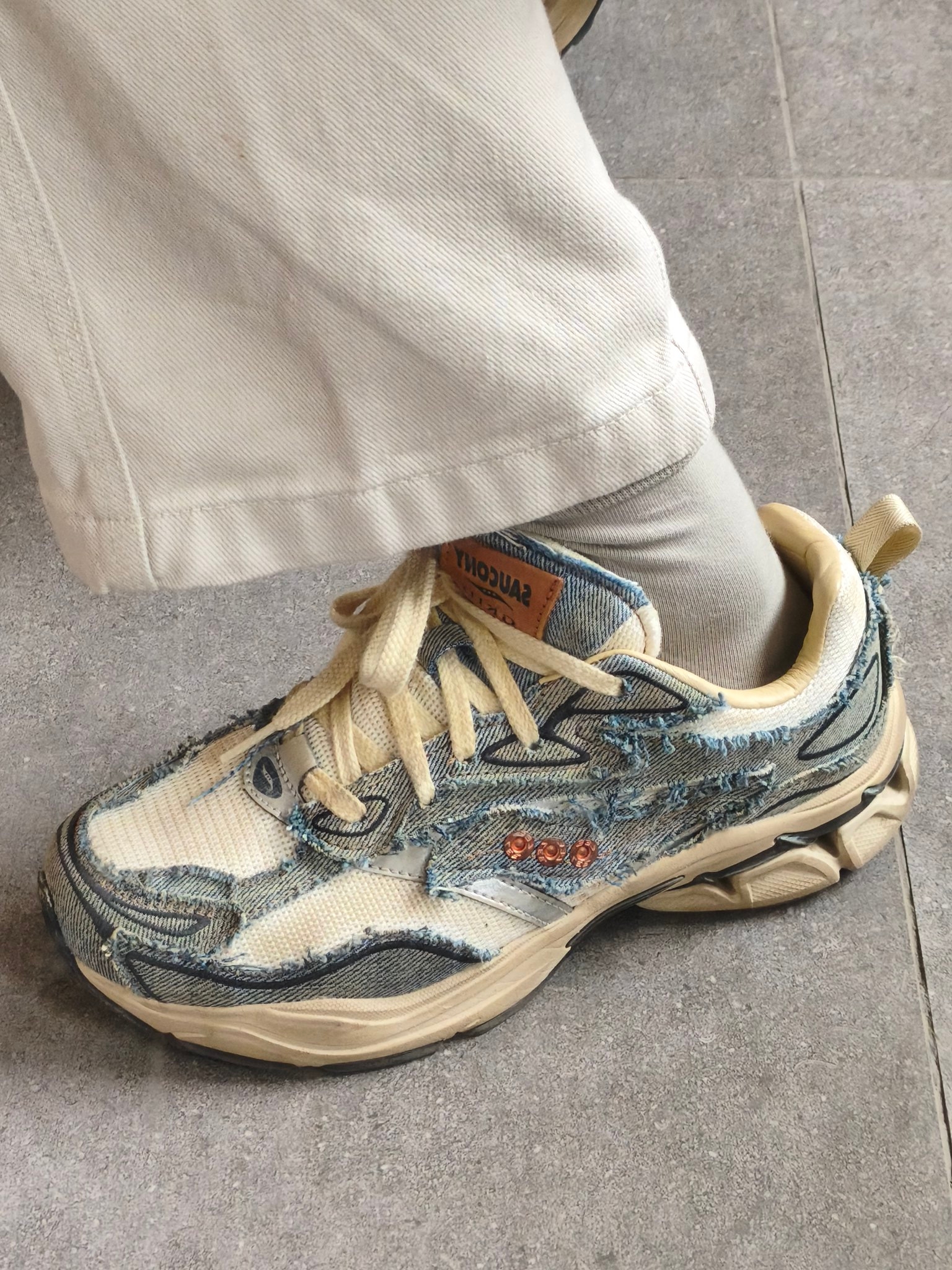 Lee牛仔×索康尼GRID联名跑鞋,把经典丹宁玩到鞋上!做旧牛仔布+复古铆钉,鞋舌皮牌、不对称细节拉满,工装感直接拉满。搭载GRID缓震,脚感软弹稳定,日常穿搭、慢跑都适配,复古又百搭,小众不撞款,颜值与质感双在线,你种草了吗?🌿🌿🌿 #礼物节 #送给时髦精 #saucony索康尼 #情人节送男生 #做旧复古跑鞋