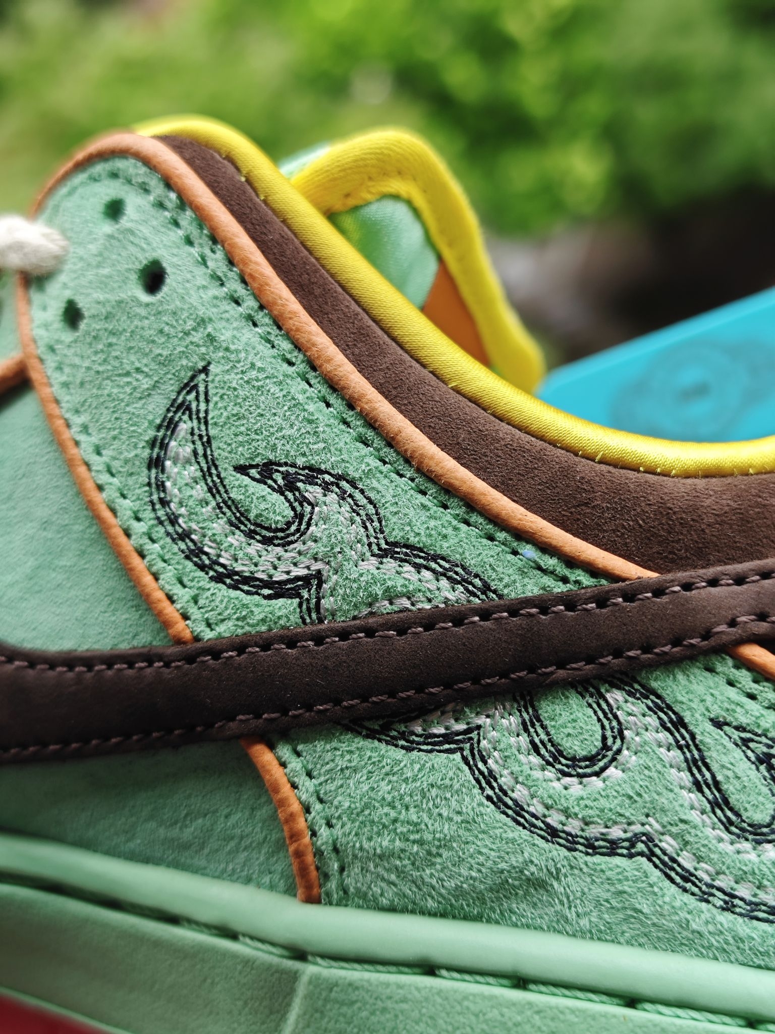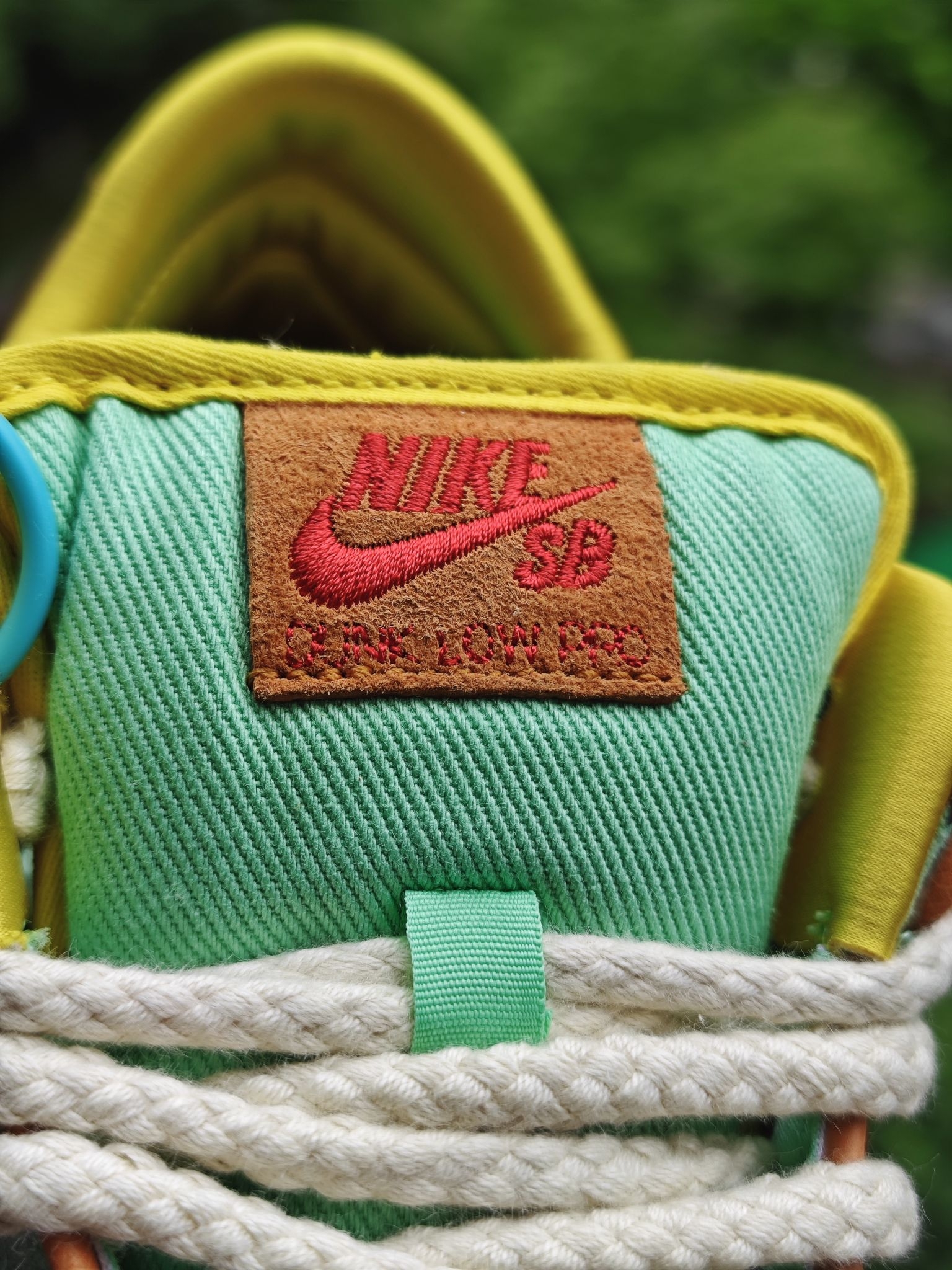 👀这鞋就是西瓜🍉配色,血红透明的大底,这西瓜包红包甜 首先,这鞋皮质可以和倒钩一样,左右手刷,记得摩卡AJ1也能刷色,这种手感会很好 每块皮质边缘都采用了黄色的皮包边,这个其实很难的,这么小的褶皱,很容易弄破皮的,设计很高级的 麻绳鞋带SBdunk里也很少见的 原价加一点就能买到,现在是真香啊,喜欢可以闭眼冲