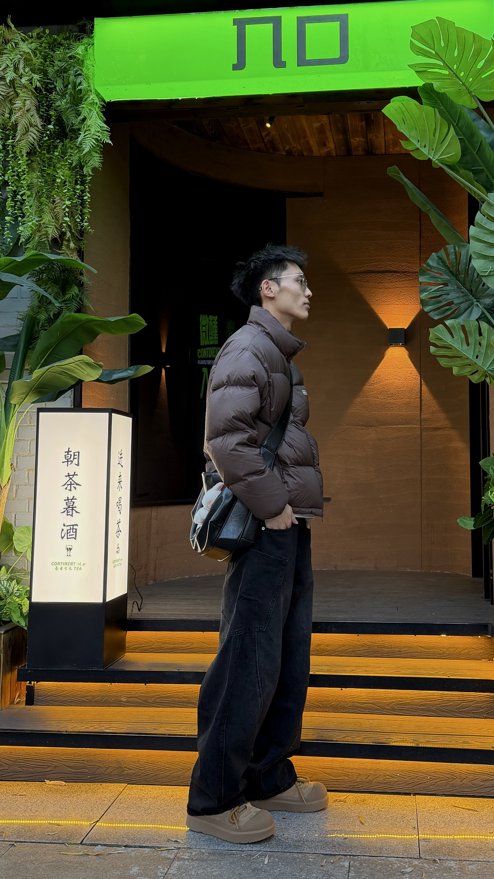 身高|体重:183\128 🧍♂️ 穿搭风格:潮流复古 👔 上衣:FPA轻薄羽绒服 👖 下装:黑色水洗弯刀牛仔裤 简单出片,整起来