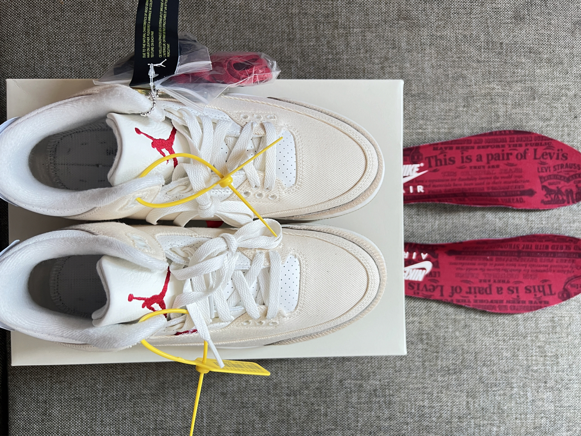 本篇笔记关联了Air Jordan 3 运动休闲鞋 潮流复古抓地支撑缓震合成革圆头 Levi's联名/米色/红色等商品,为用户提供真实的使用体验和购买参考。
