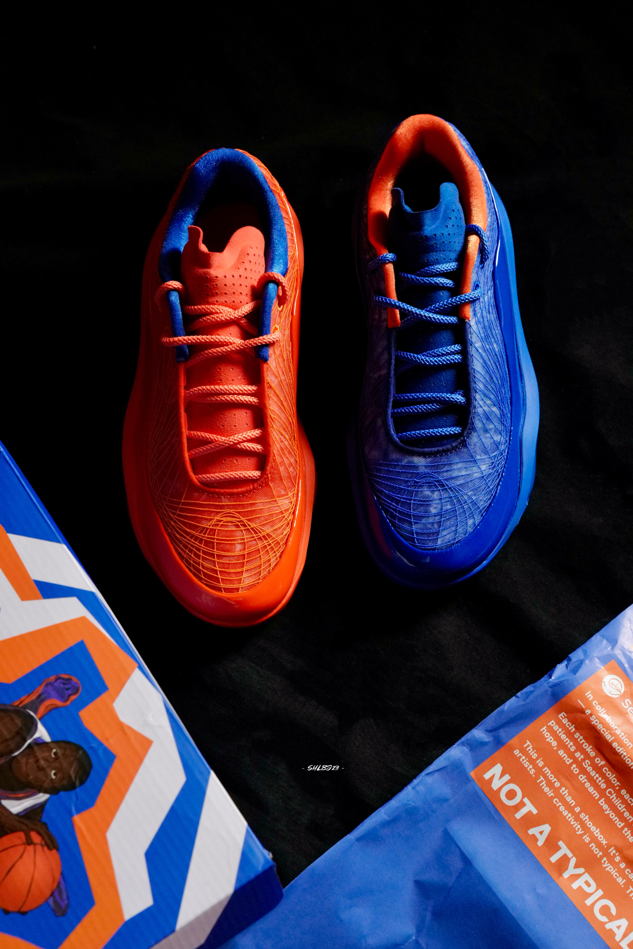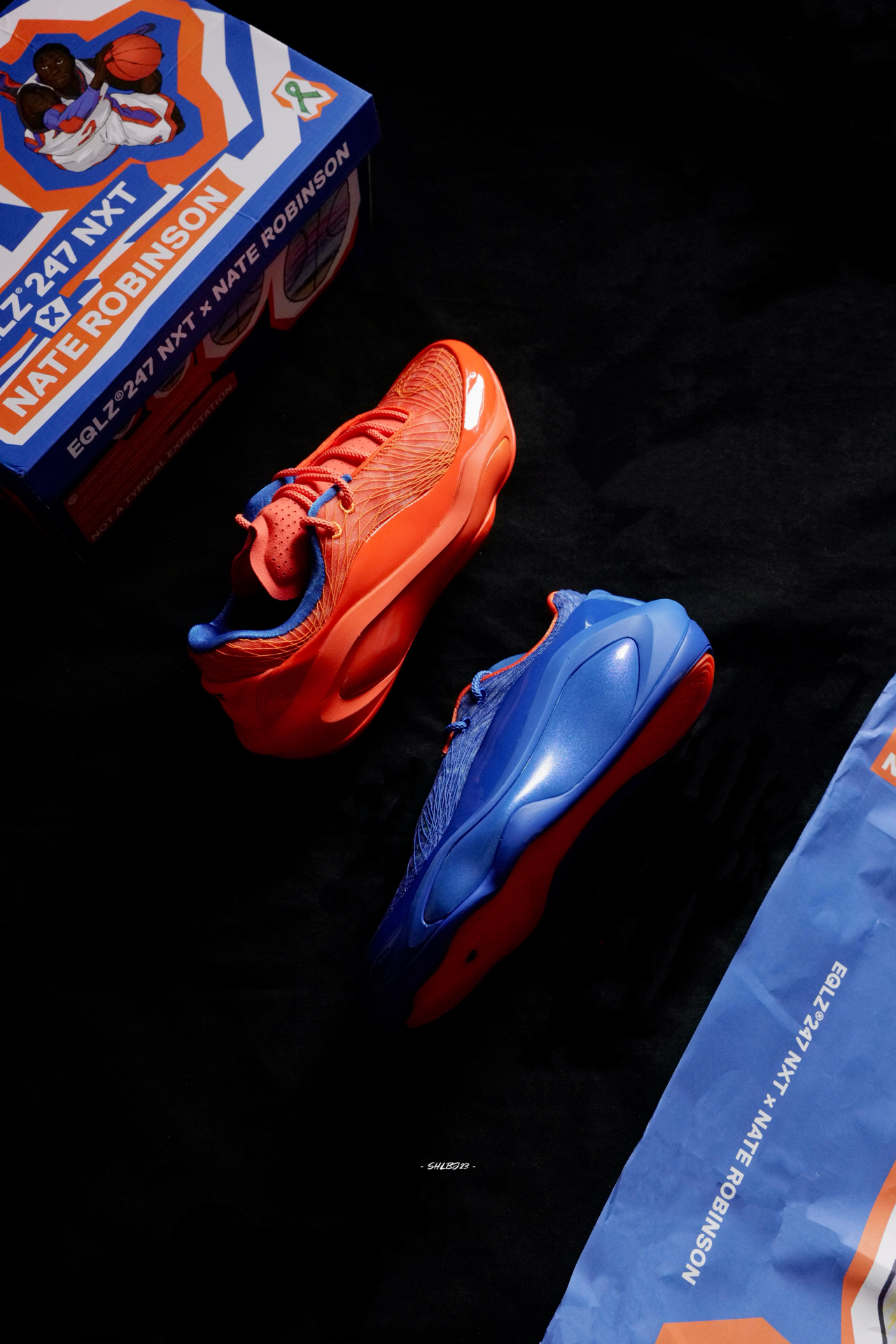 一眼吸睛的小土豆内科联名配色。左右脚配色是随机的,所以收到的橙蓝配色都有可能不同。 这双鞋鞋舌的填充感很棒,加上主流的低帮设定以及尼克斯配色的亮眼度,真的没话说哇。 #球鞋联名 #247nxt #EQLZ内特罗宾逊联名款 #今天只晒鞋 #秀出我的篮球鞋