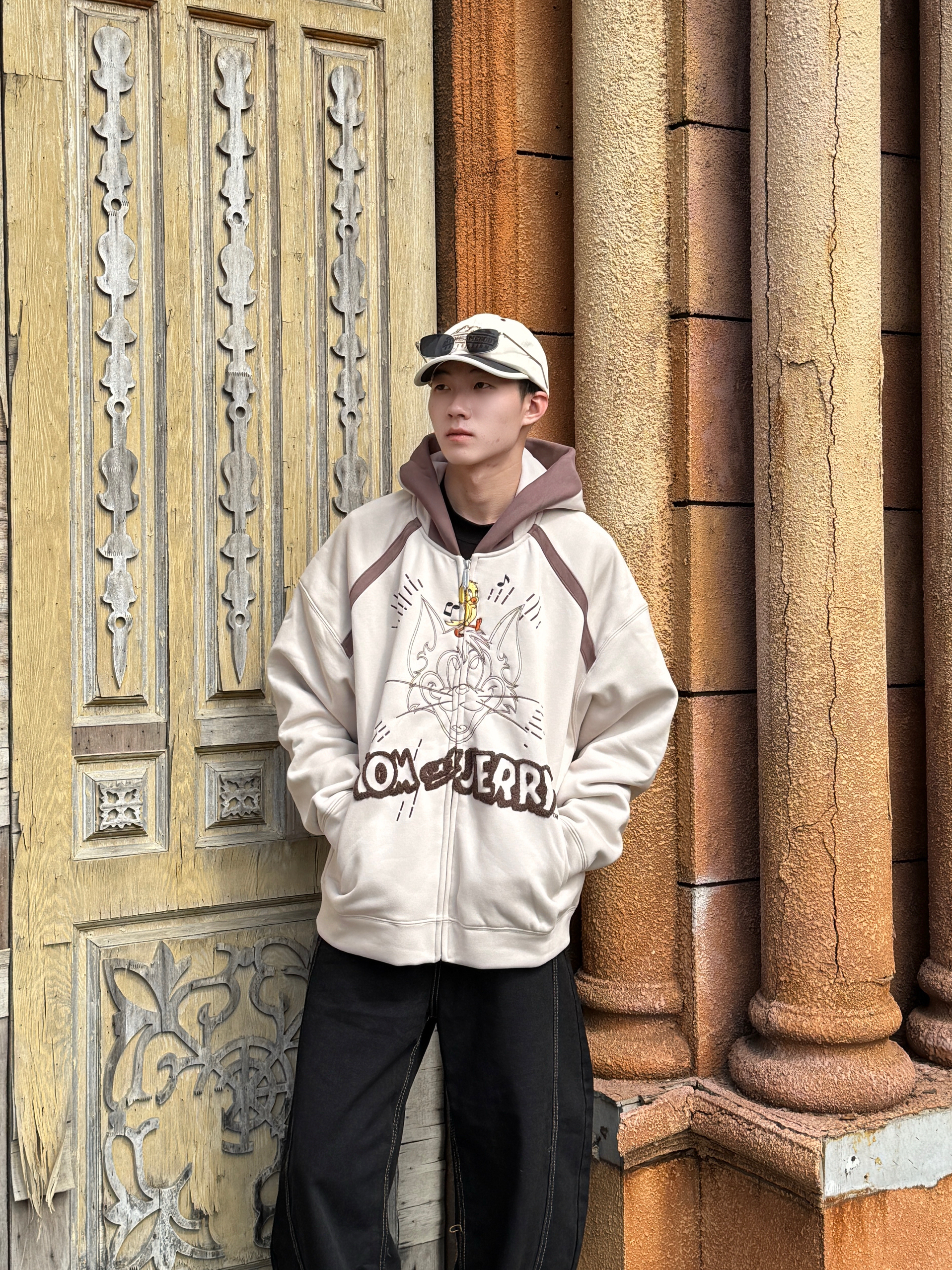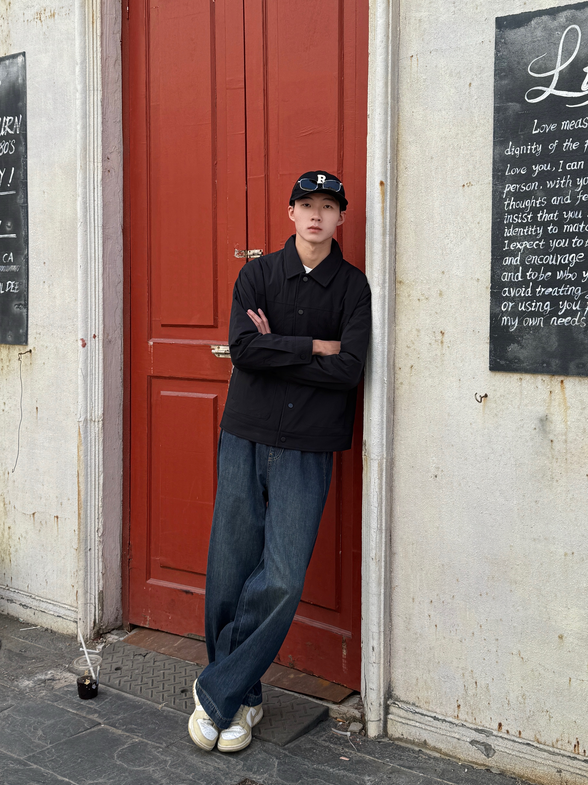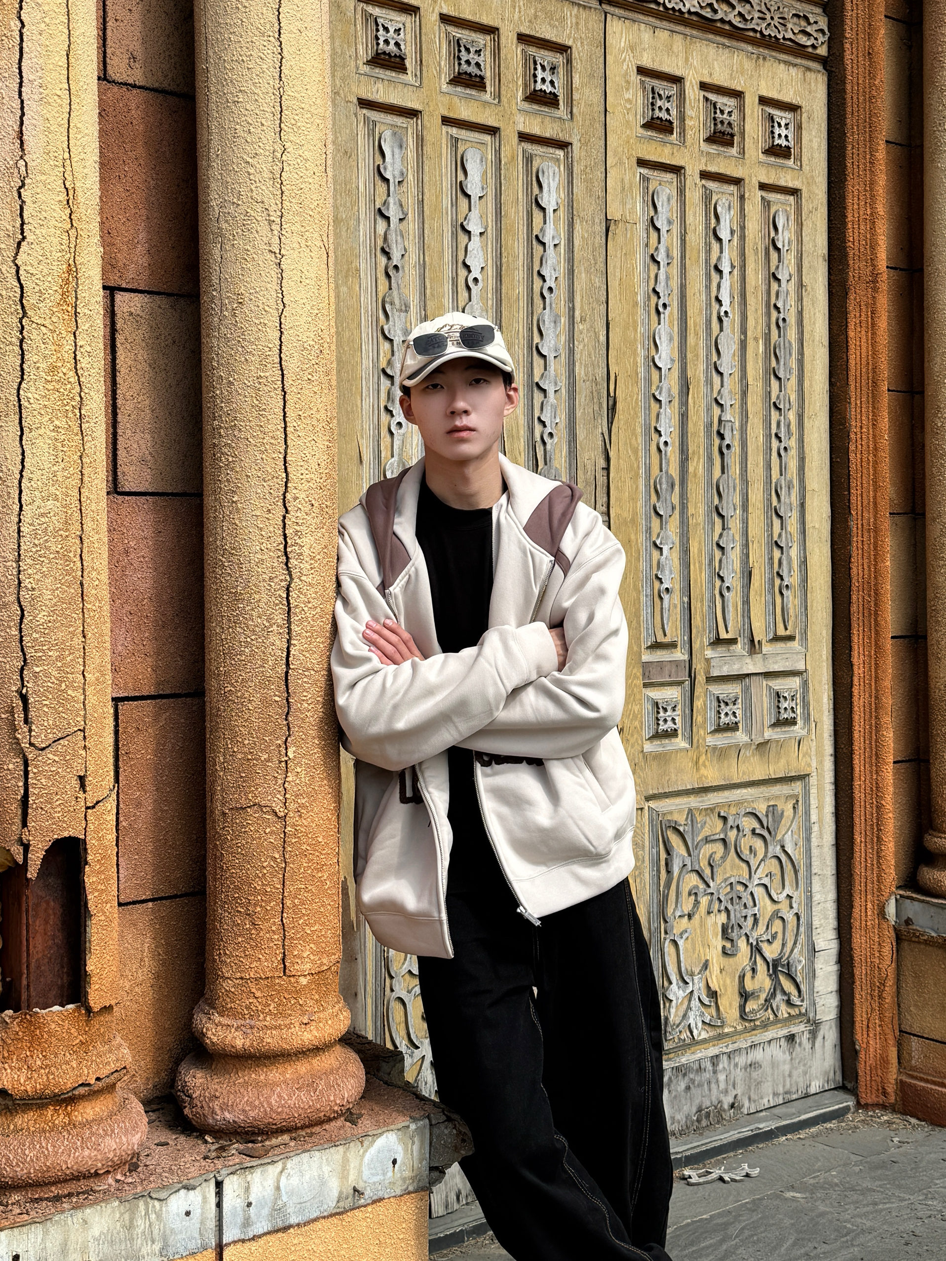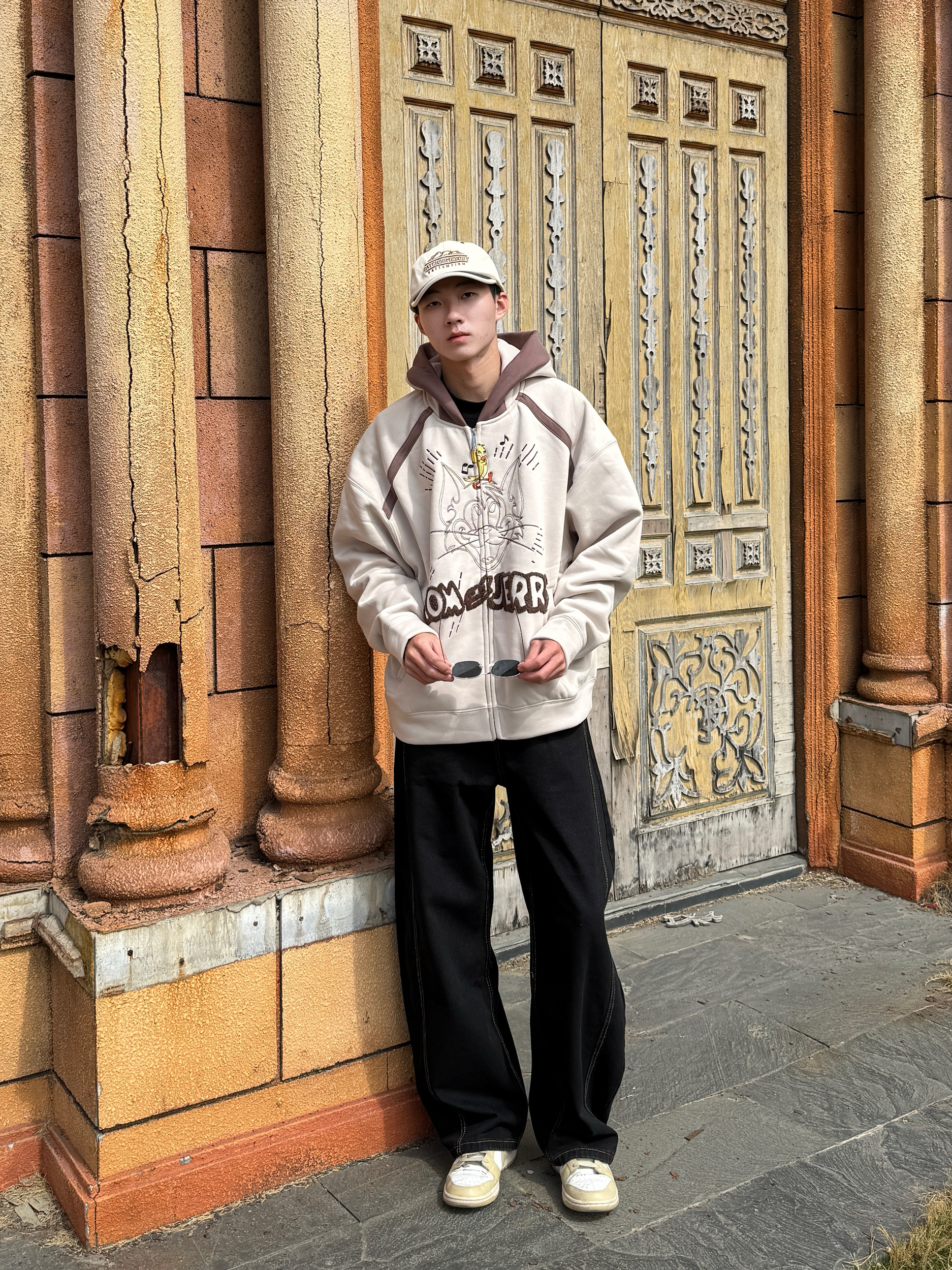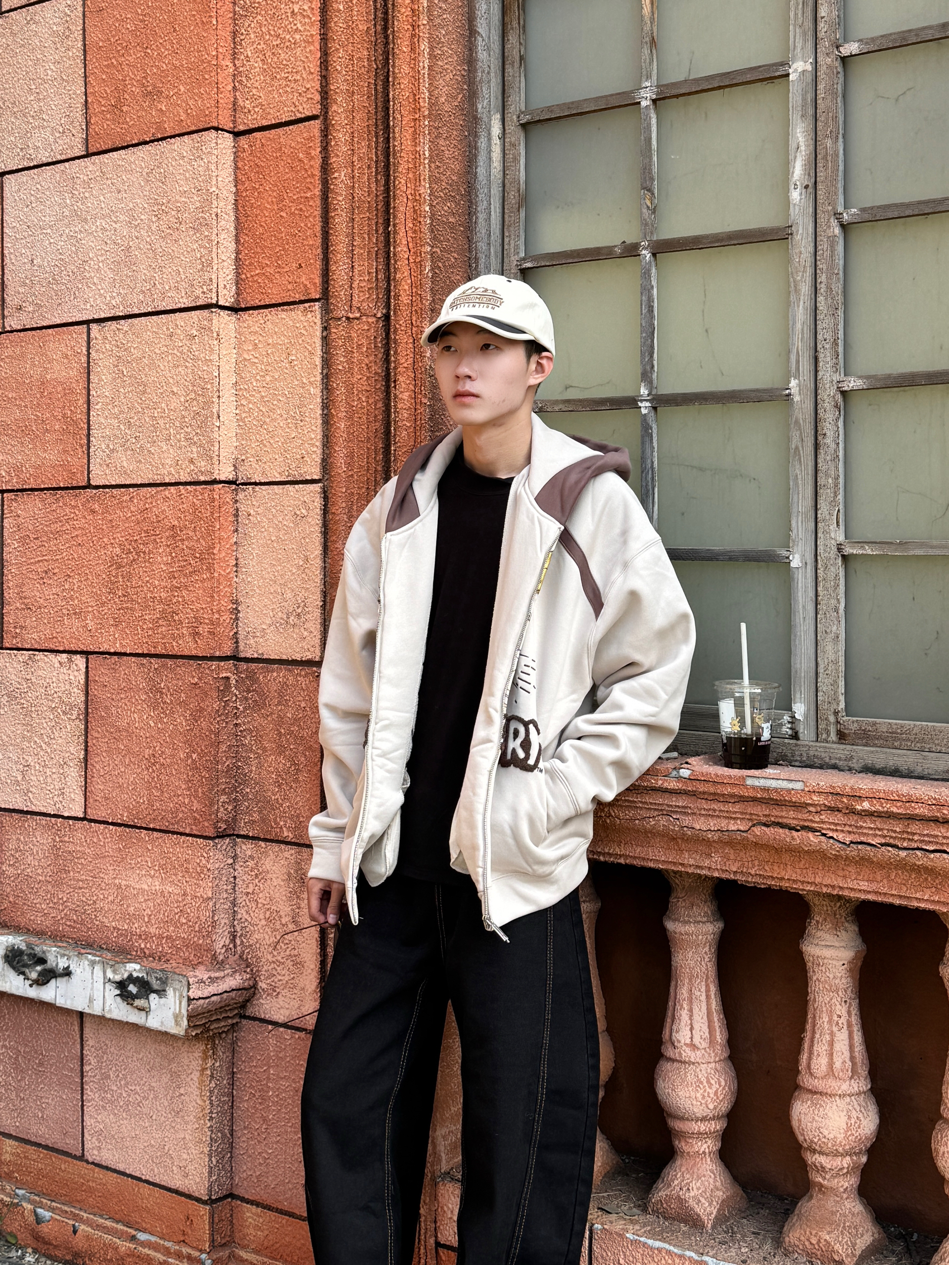 这身是干净舒服的奶油感穿搭 石膏白连帽卫衣带点撞色设计 宽松又柔软✨内搭黑T露出下摆 增加小小层次~ 下身搭配黑色弯刀牛仔裤 垂感版型显得腿型很直 整体黑白配色清爽耐看 日常穿轻松又有点小设计感 舒服又有型👟