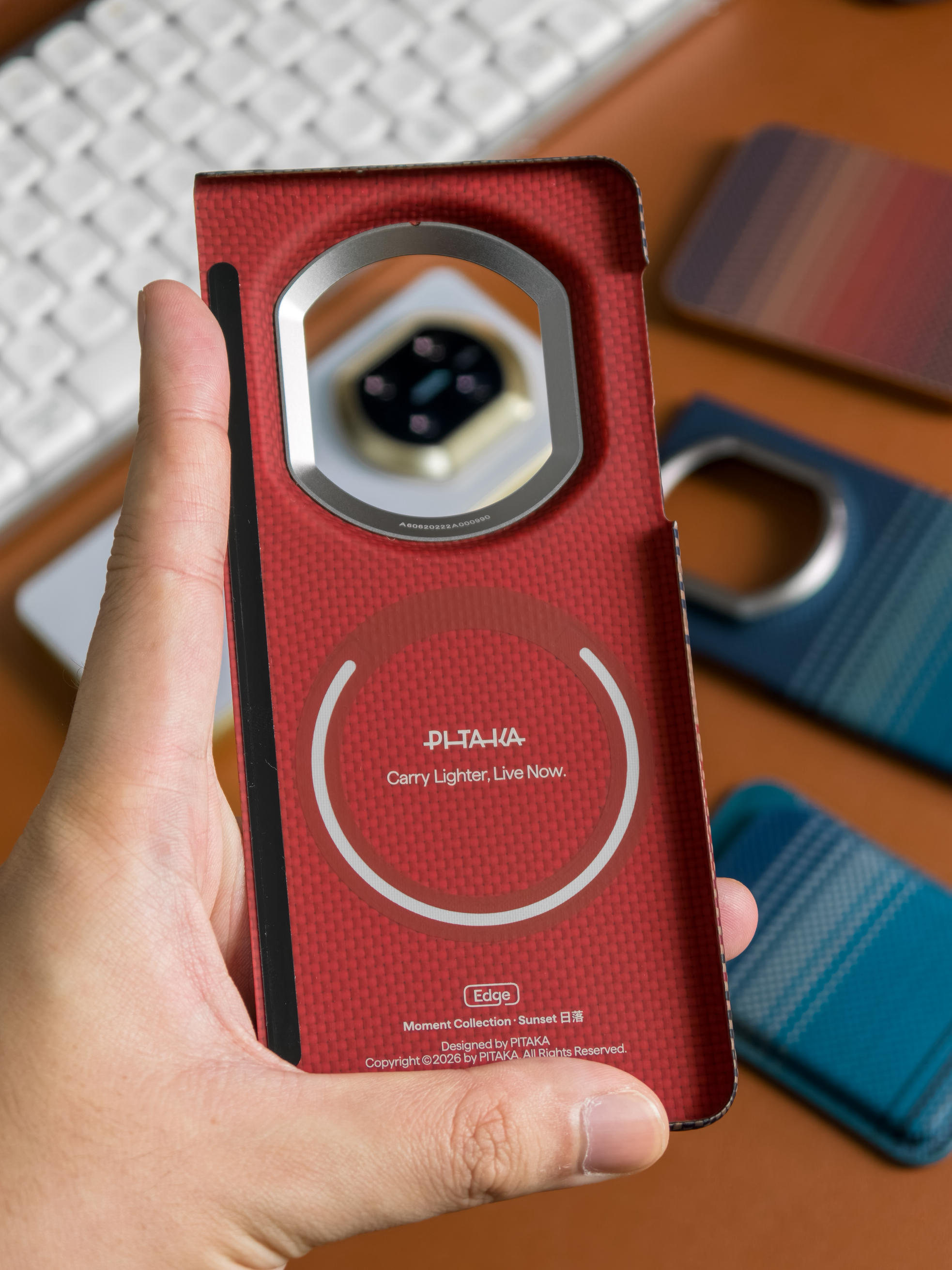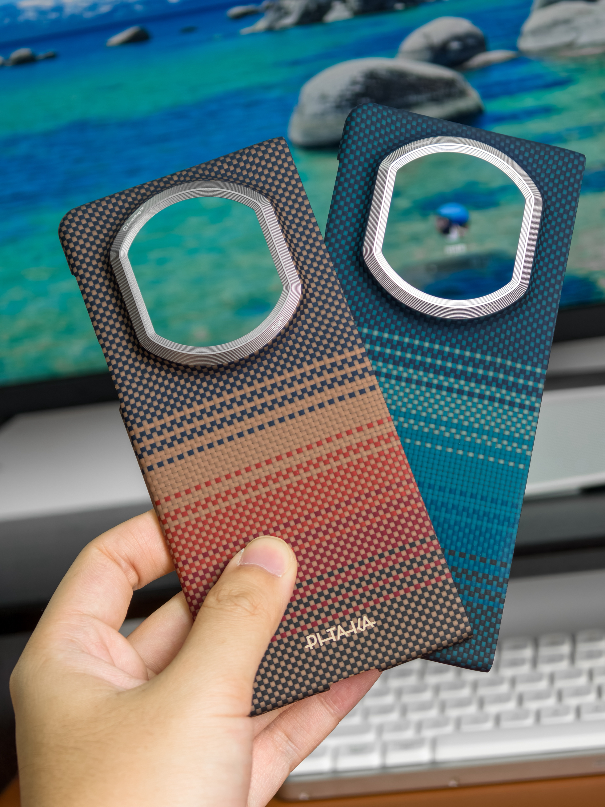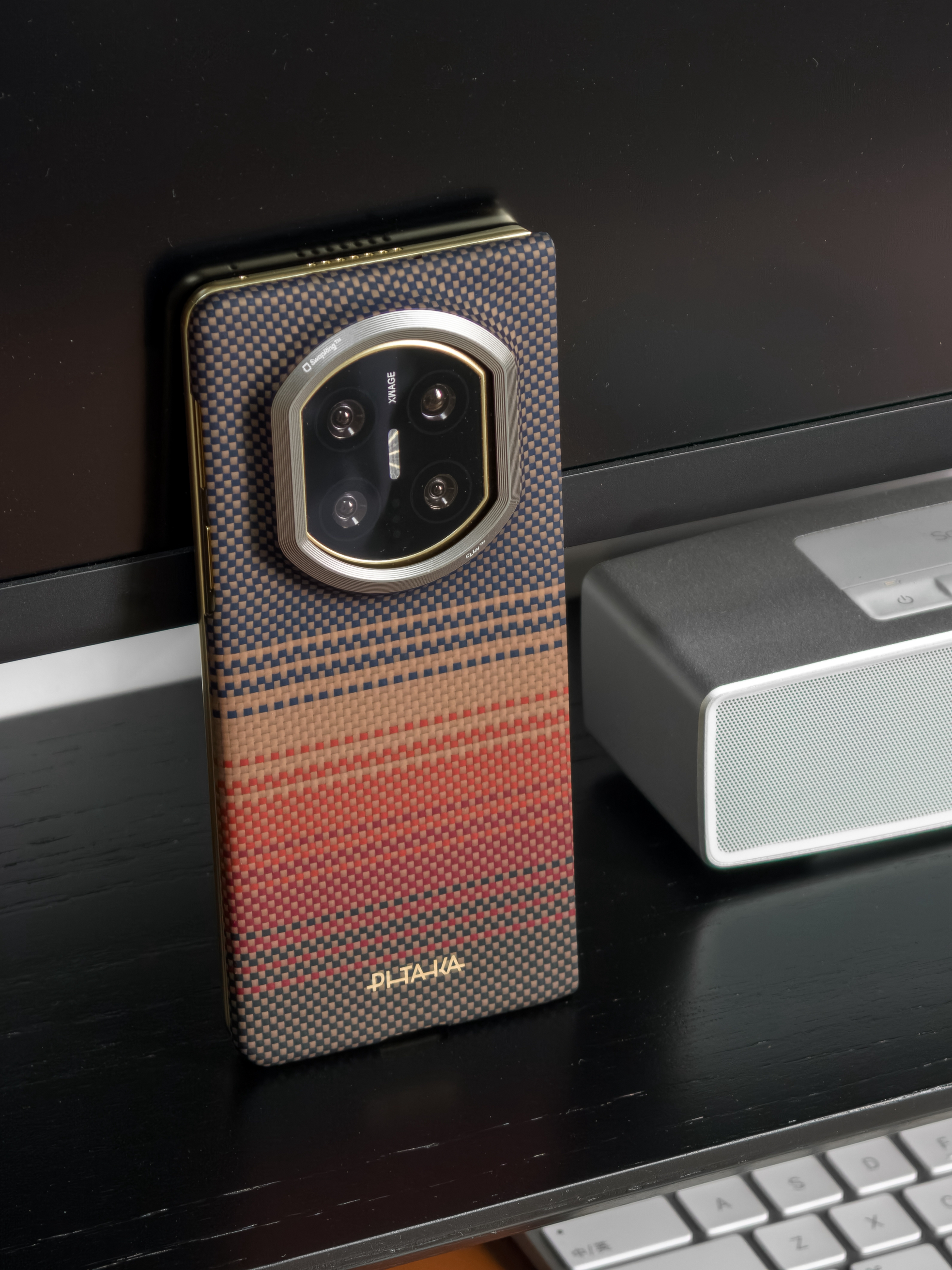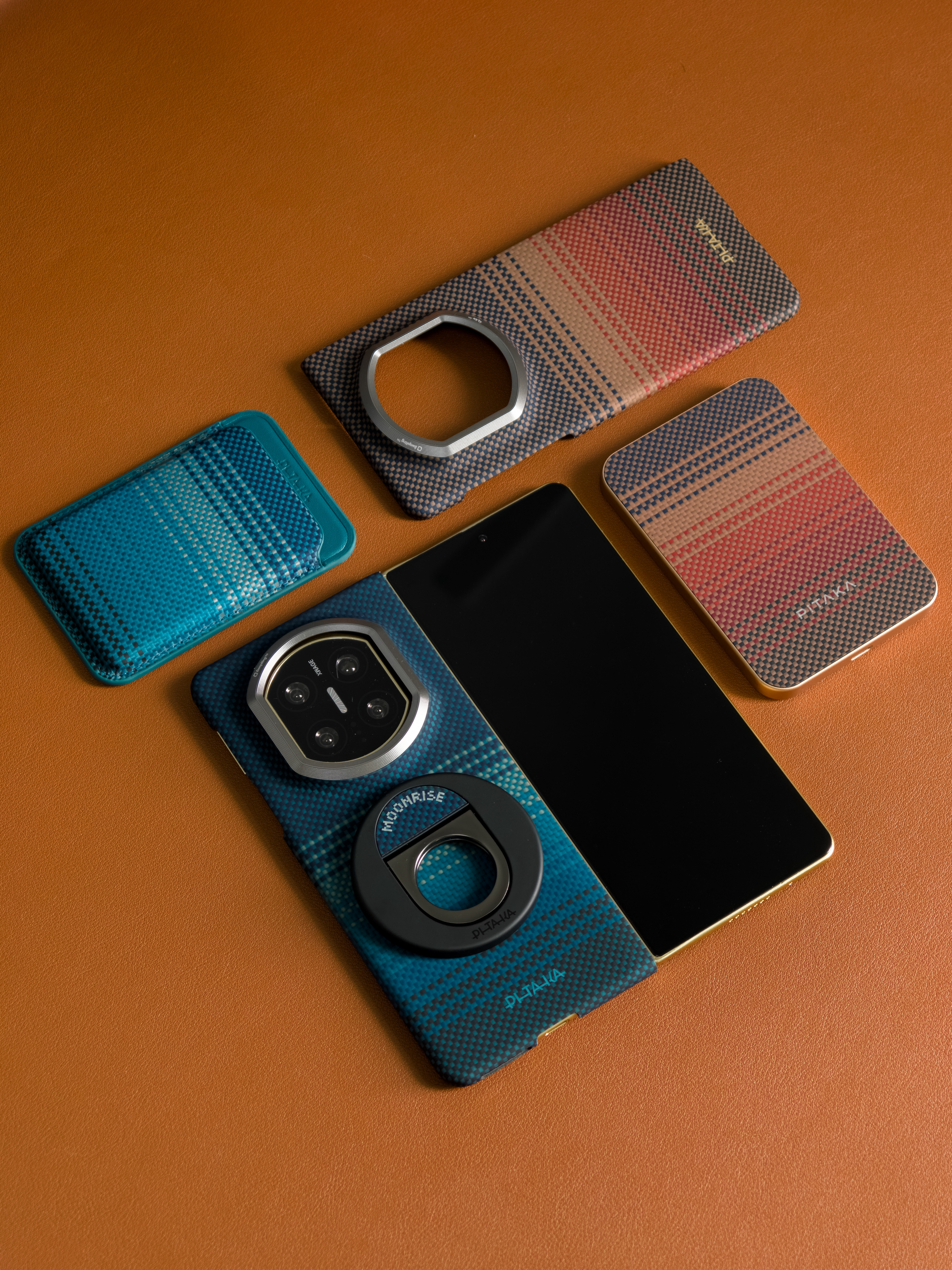 「日落月升」的交替,这转瞬即逝的自然奇景,被PITAKA以芳纶纤维为笔,编织成可握于掌心的永恒。不仅是一款手机皮肤,更是将时间定格有温度的艺术载体,让每一次握持都成为与自然共鸣的仪式。 当折叠屏的科技质感遇见自然的浪漫诗意,专为Mate X7打造的专属手机壳,重量控制在22g,复刻出裸机般的手感,不增加额外的手持负担,让每一次开合都轻盈如蝶翼,仿佛手机从未被包裹,边缘贴合折叠屏的曲面弧,用方寸之...