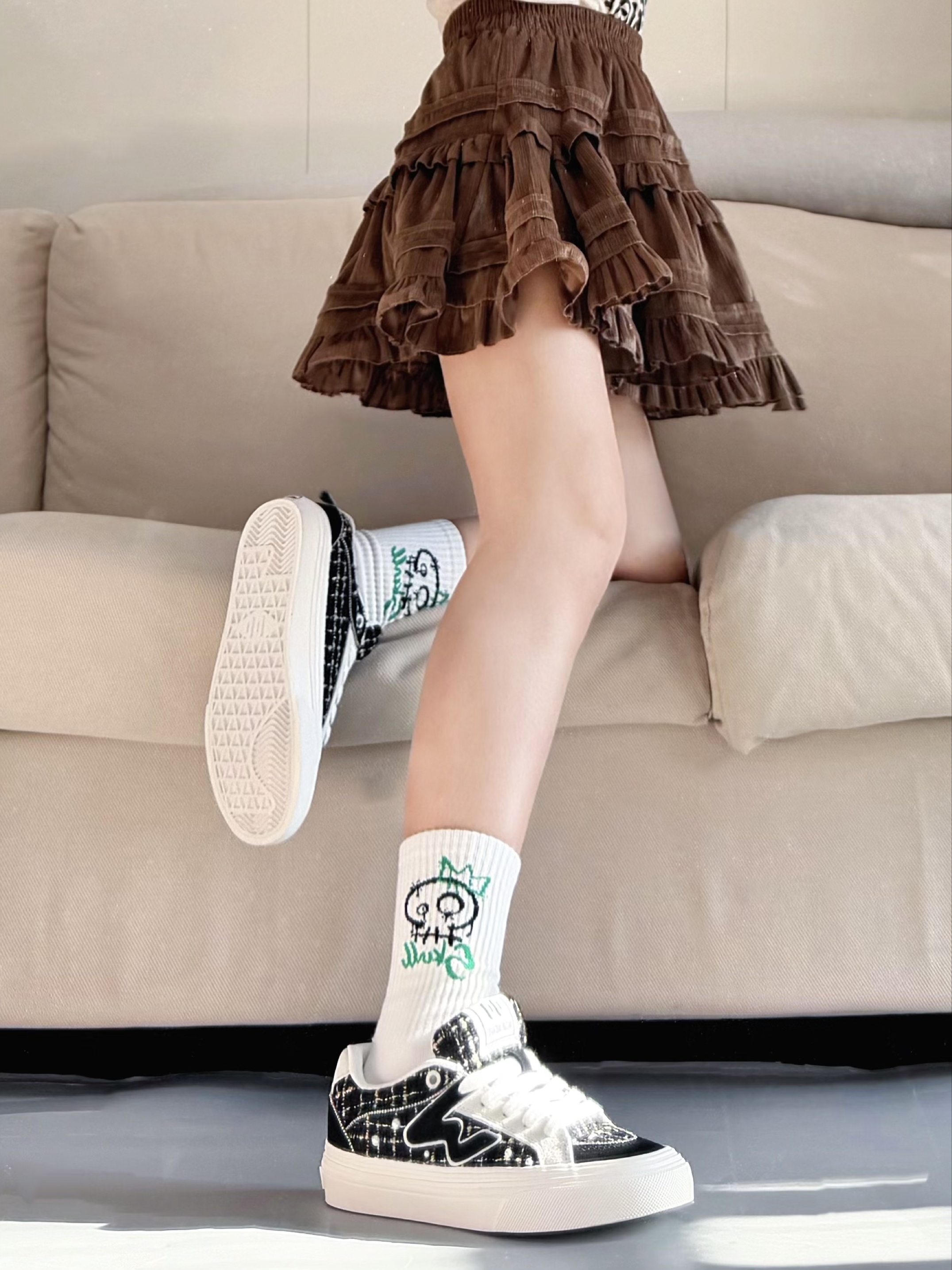 超级漂亮的一双鞋子,小香风的感觉,日常出门搭配,或者配小裙子也特别漂亮,鞋带特别有设计感,是锻带的超级超级美丽