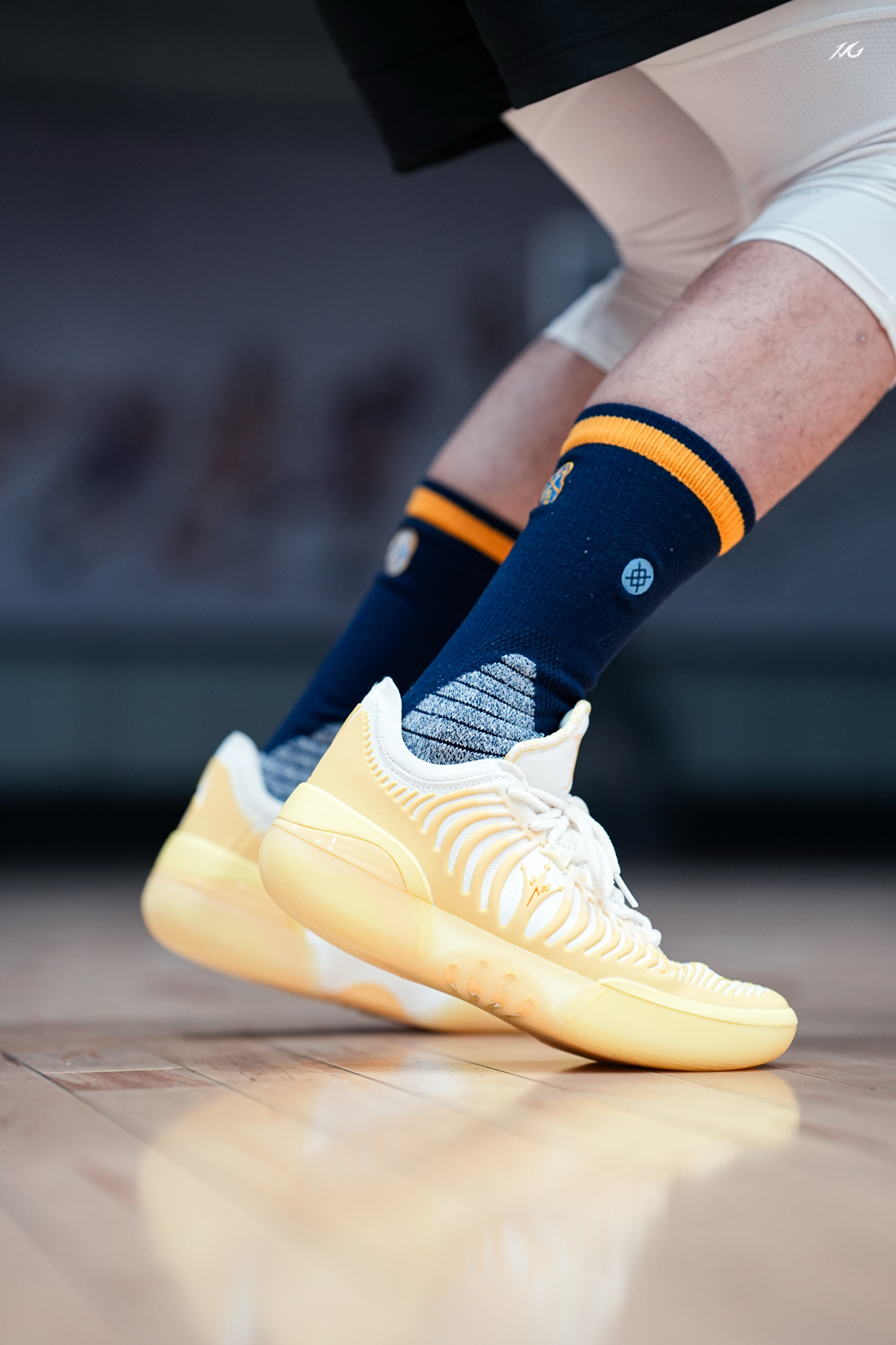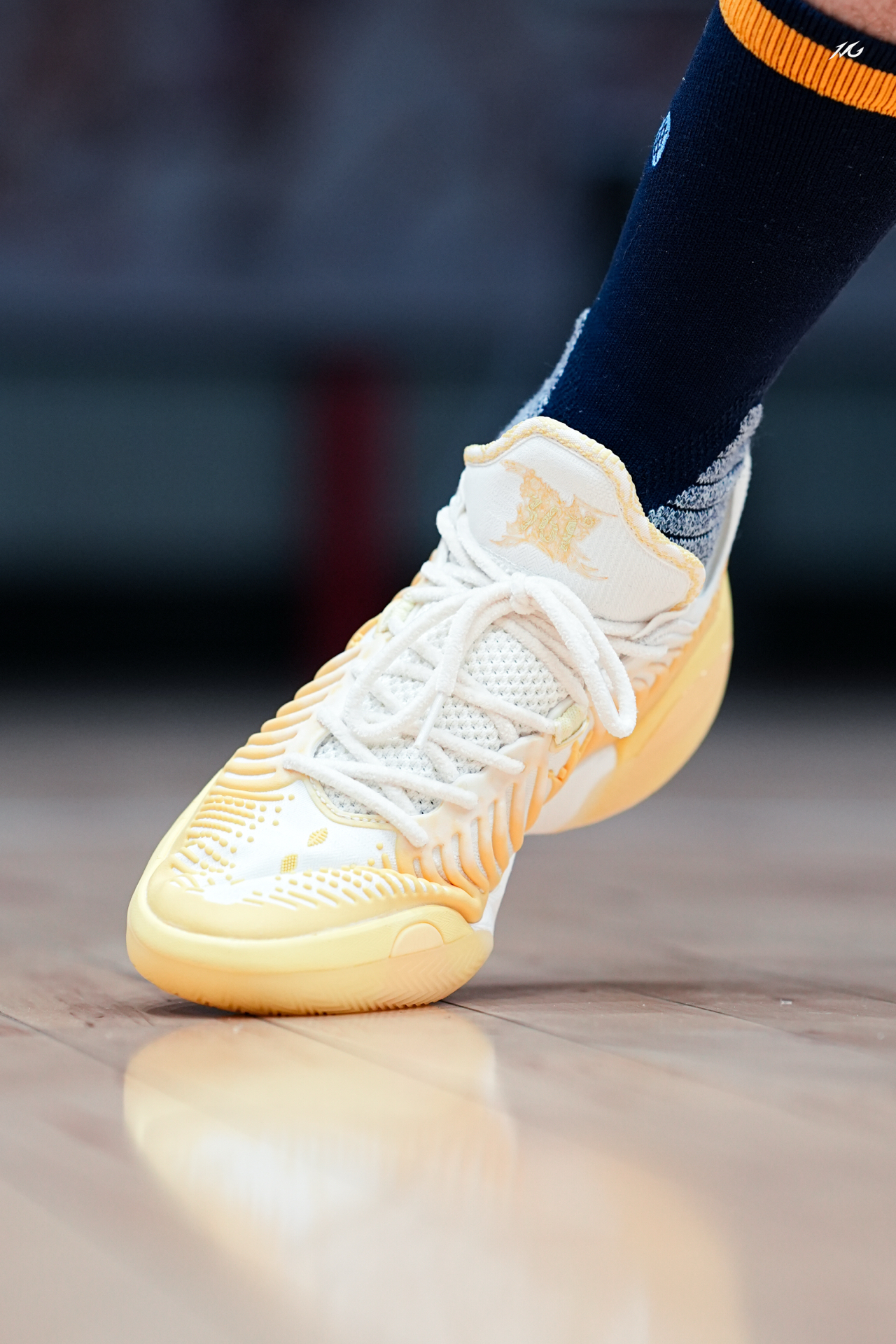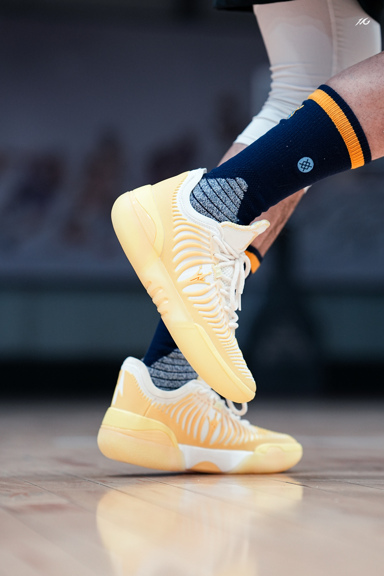对于超爱亮黄色的我来说,这双JOKER2 GT的雏菊配色太对我胃口了!今天搭配一款老掘金队LOGO的袜子,这上脚的颜值朋友们觉得好看嘛? 实战测评的话过两天测过会给大家再说感受,主要初上脚我觉得这个质感和用料相比361之前的鞋提升了一种高级感,不知道你们看起有没有同样感觉! 粗浅的说,尺码正常包裹适配广脚感和1代GT一样很澎湃而且前掌重心压低了,详细的关注一下后续视频来讲! #新鞋零时差 #篮...