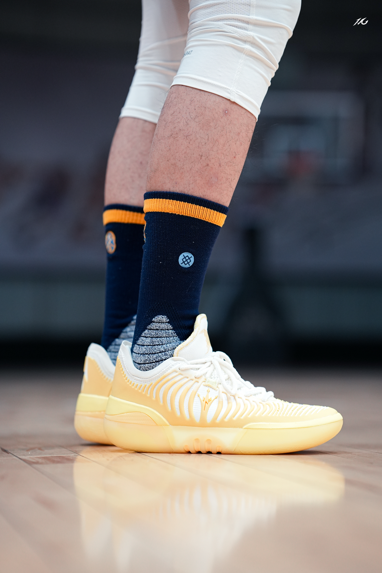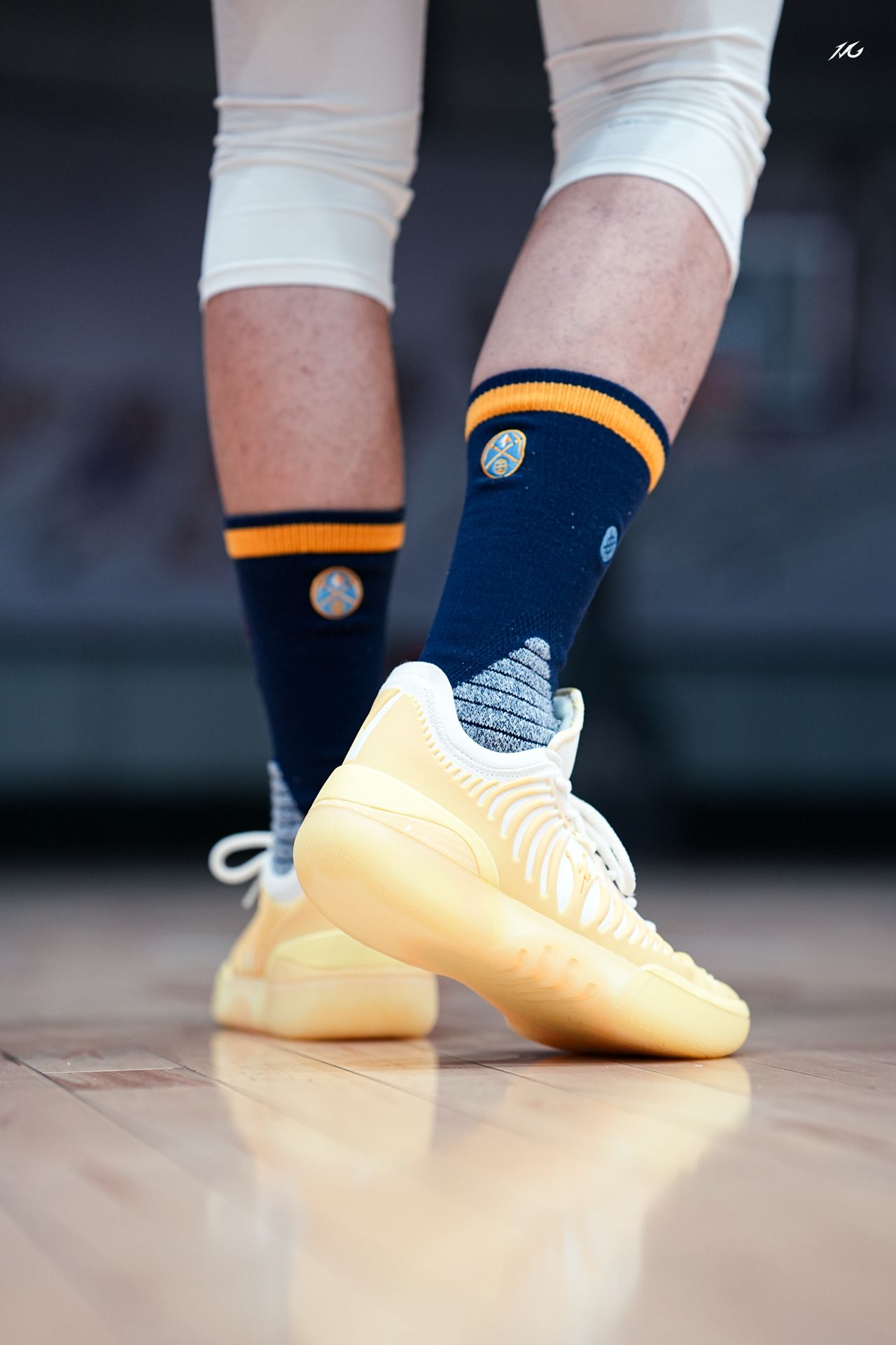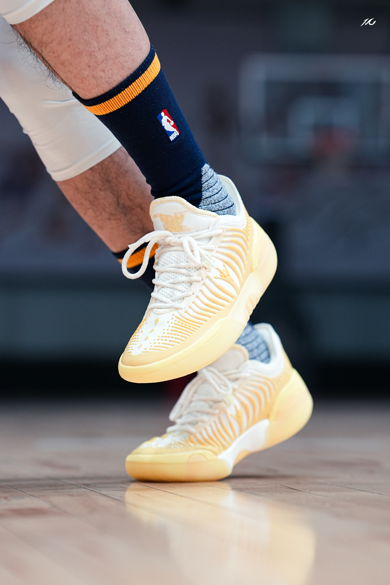 对于超爱亮黄色的我来说,这双JOKER2 GT的雏菊配色太对我胃口了!今天搭配一款老掘金队LOGO的袜子,这上脚的颜值朋友们觉得好看嘛? 实战测评的话过两天测过会给大家再说感受,主要初上脚我觉得这个质感和用料相比361之前的鞋提升了一种高级感,不知道你们看起有没有同样感觉! 粗浅的说,尺码正常包裹适配广脚感和1代GT一样很澎湃而且前掌重心压低了,详细的关注一下后续视频来讲! #新鞋零时差 #篮...