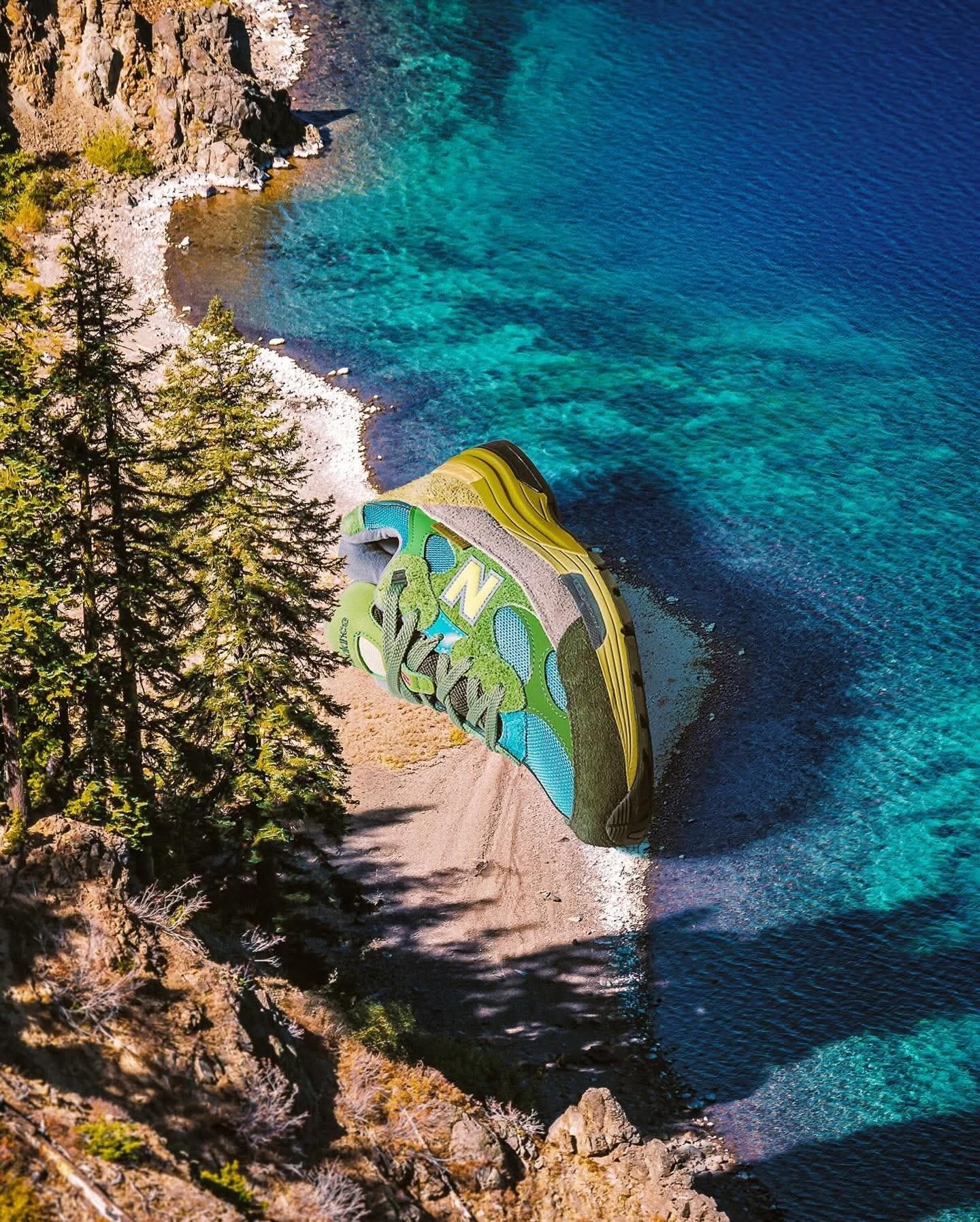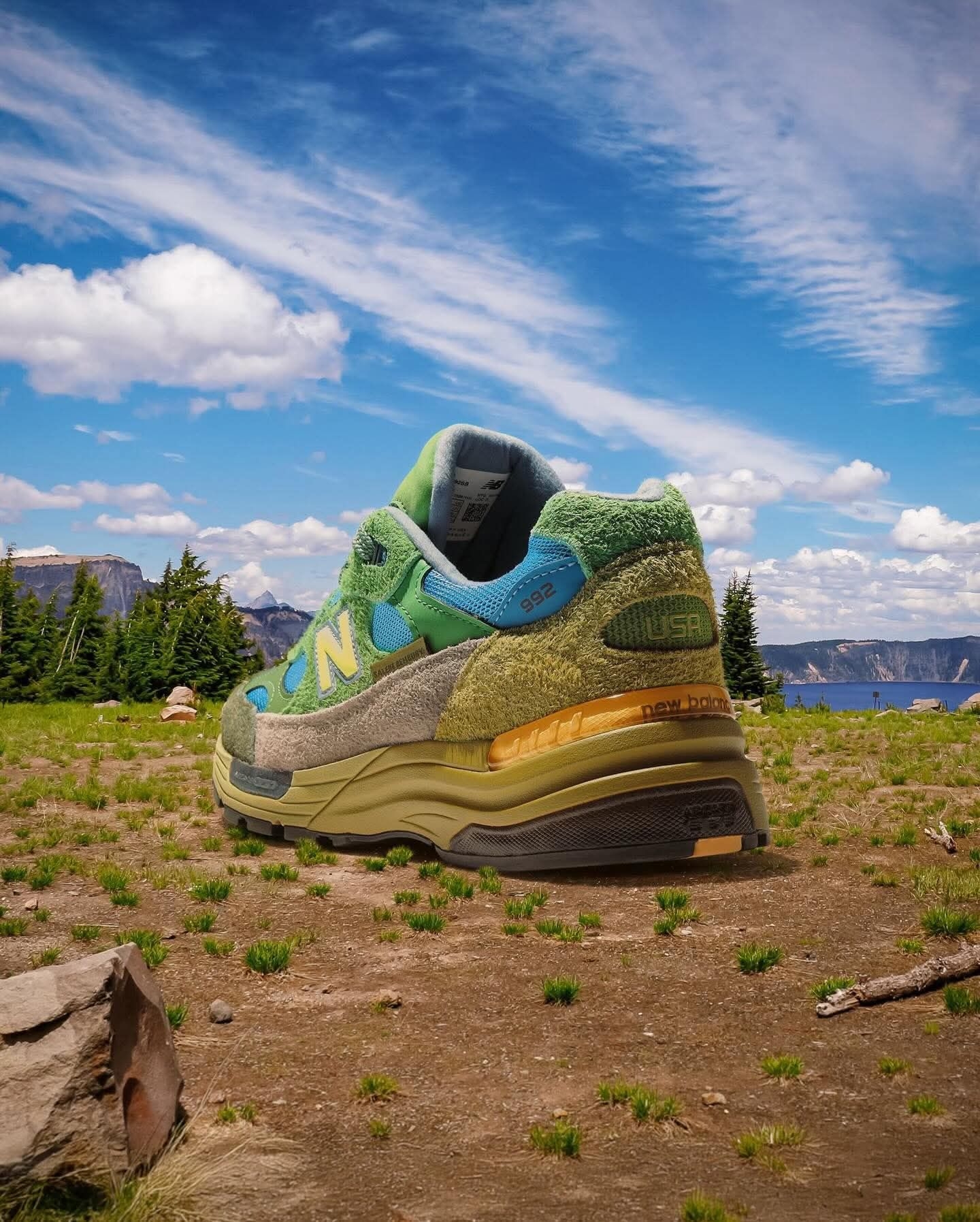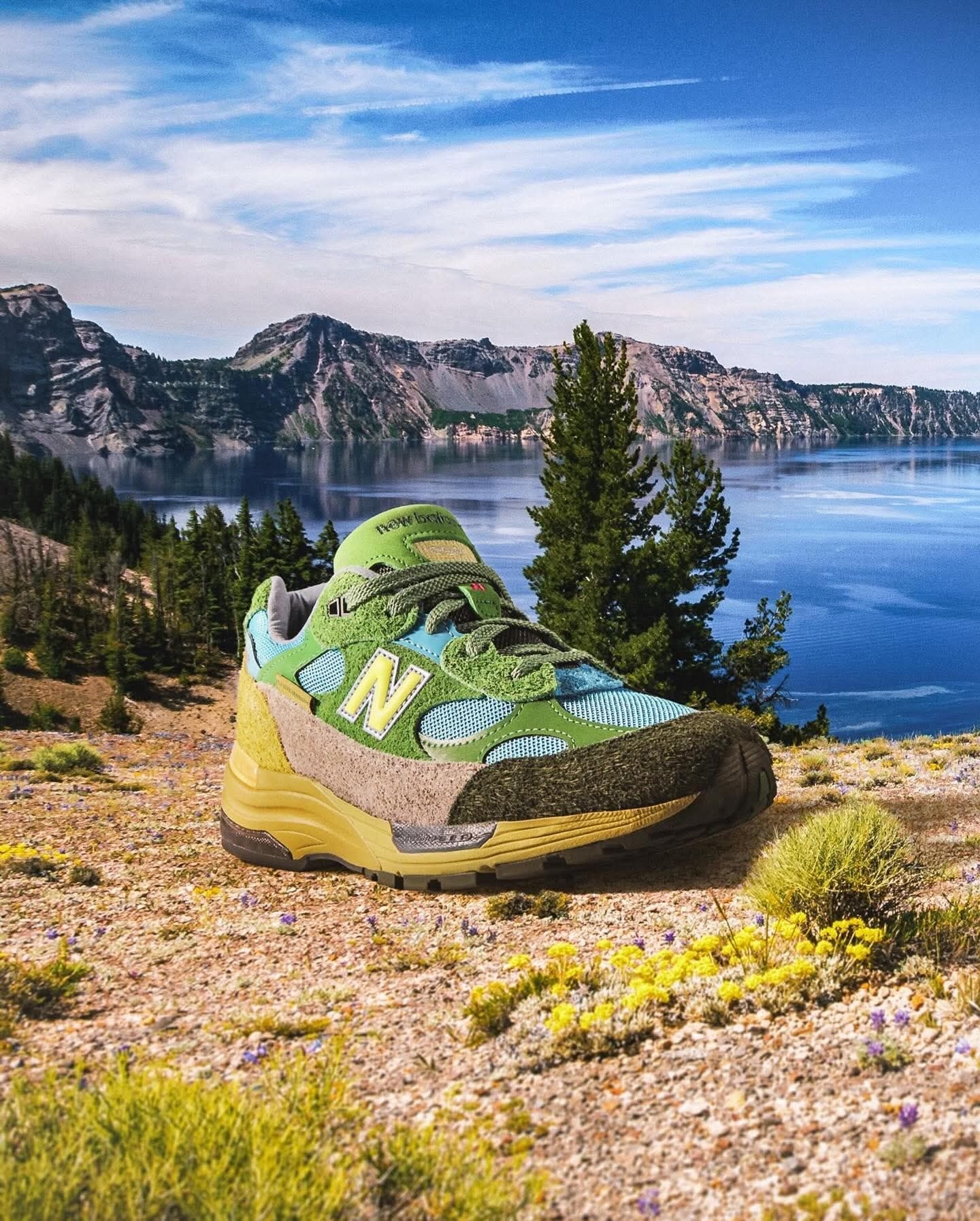 Salehe Bembury 又带着他的「指纹美学」杀回来了!这次和 New Balance 992 的新联名,直接把火山湖的自然色彩搬上了鞋身🌋 - 配色灵感:从火山湖的蓝绿湖水、深棕岩石和翠绿森林中提取,层次丰富又极具辨识度。 - 材质细节:大面积麂皮+网眼布拼接,质感拉满,脚感也在线。 - 设计亮点:标志性的「N」字 Logo 用亮黄点缀,和鞋身的大地色系形成强烈对比,上脚绝对吸...