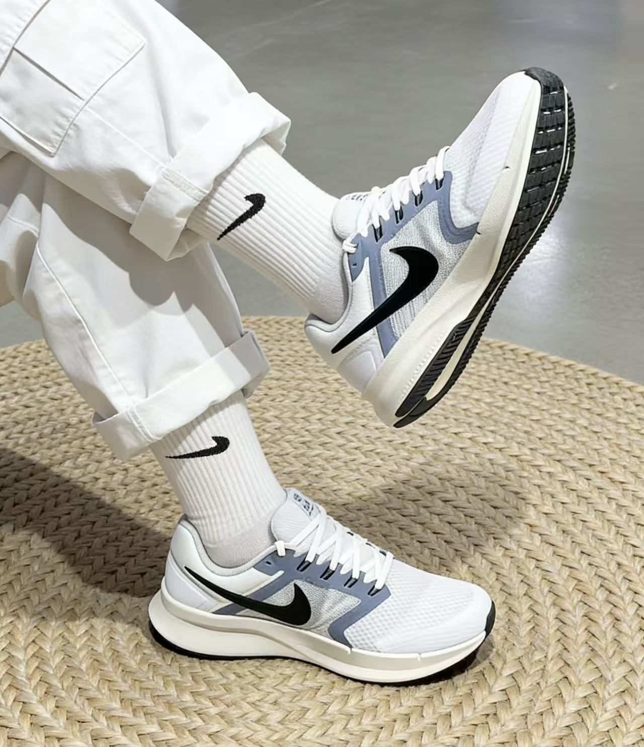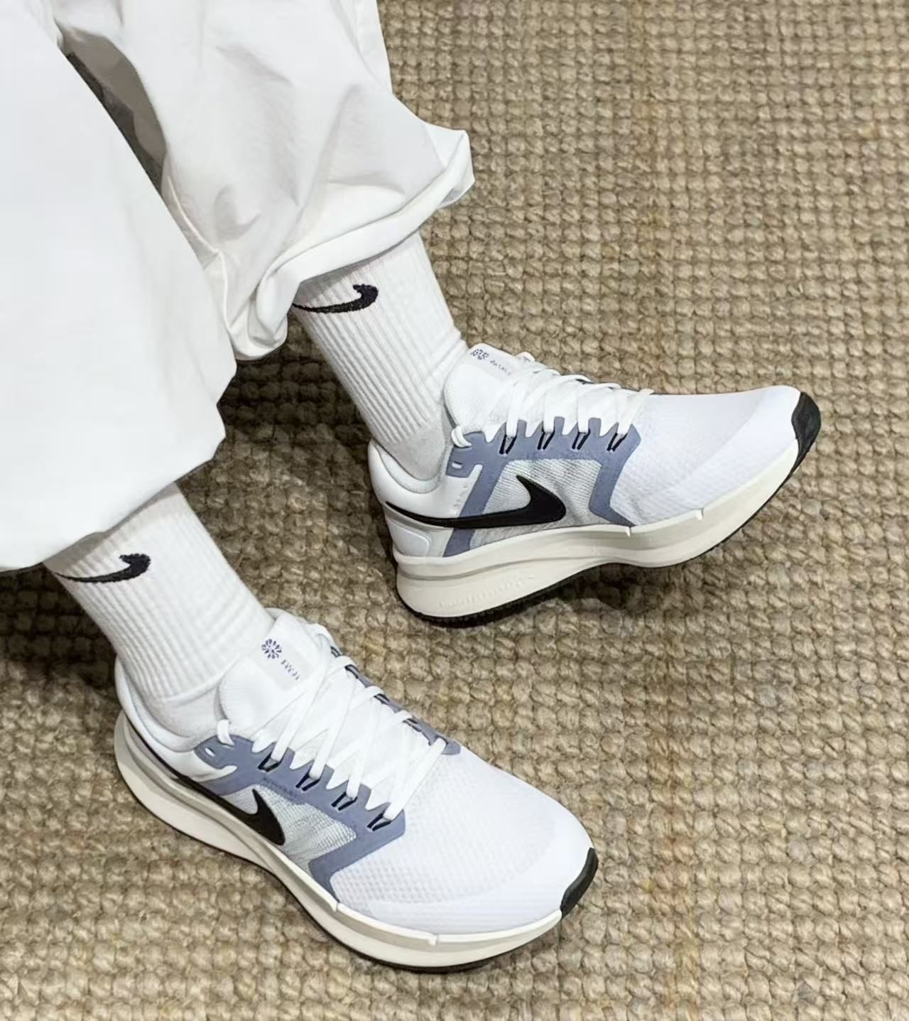 刚入手的这双Nike Swift 3真的太适合日常出街了!白蓝撞色设计清爽又干净,网面材质透气又轻盈,厚底还能悄悄增高,不管是搭运动装还是休闲裤都超百搭,脚感软弹又舒服,通勤、散步都能hold住~ 唯一不友好的就是鞋面有点厚,穿久了容易出汗#通勤日常都可以穿的单鞋 #休闲单鞋推荐 #白蓝