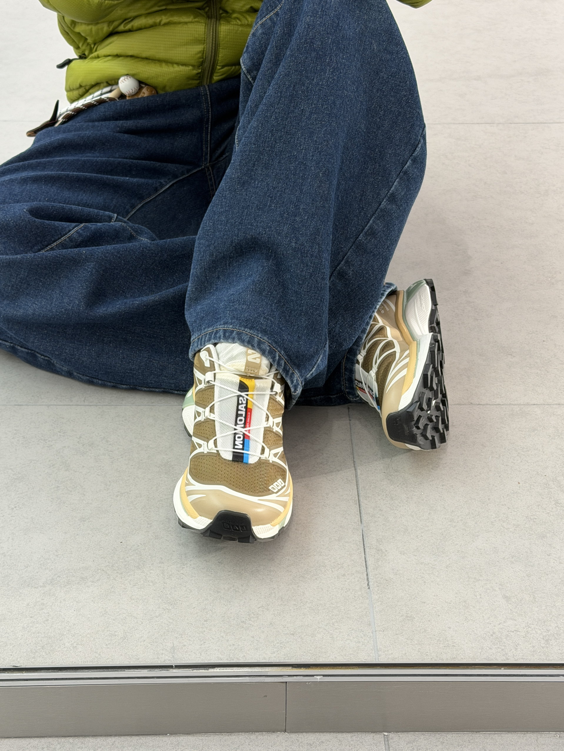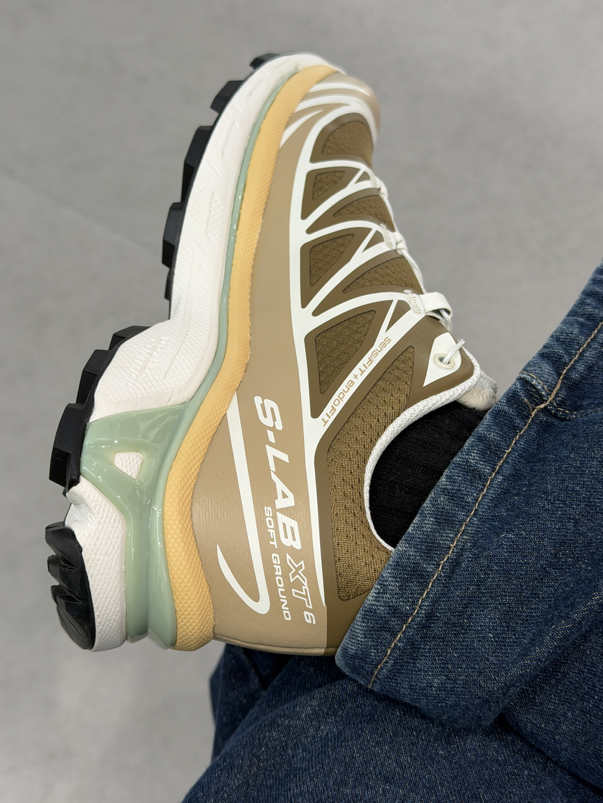萨洛蒙XT6上脚包裹感很稳,鞋底软弹但不塌,走久了也不累。这个浅棕+薄荷绿的配色很耐看,复古又清爽,和宽松牛仔裤搭在一起,随性又有层次。日常出街完全hold住,是越看越喜欢的一双鞋。