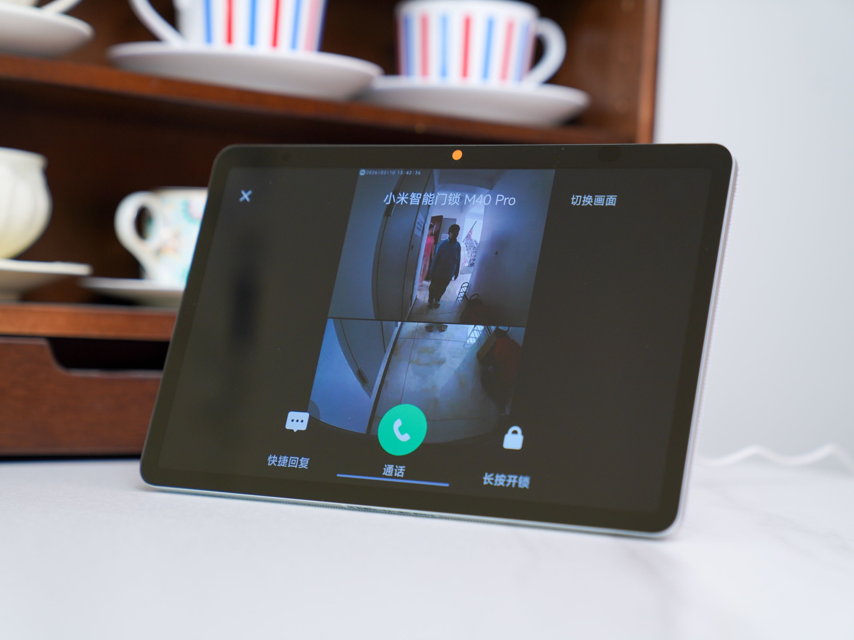 小米智能家庭屏幕11 除了观影追剧之外,也能联动门锁M40Pro。 过年期间,亲戚突然上门,人不在家?没关系,不用让亲戚在门口站着等,直接远程就能开锁。 按门铃之后实时显示门口画面,无论是家人上门,还是快递都能直接看清,方便对视对讲快捷回复的同时也能开门。 M40Pro门锁+家庭屏11,强强联合真好用,除了在线看家之外,咱们每次回家也能让家庭屏贴心播报,让家里更有温度的同时,我们也能更有仪式...