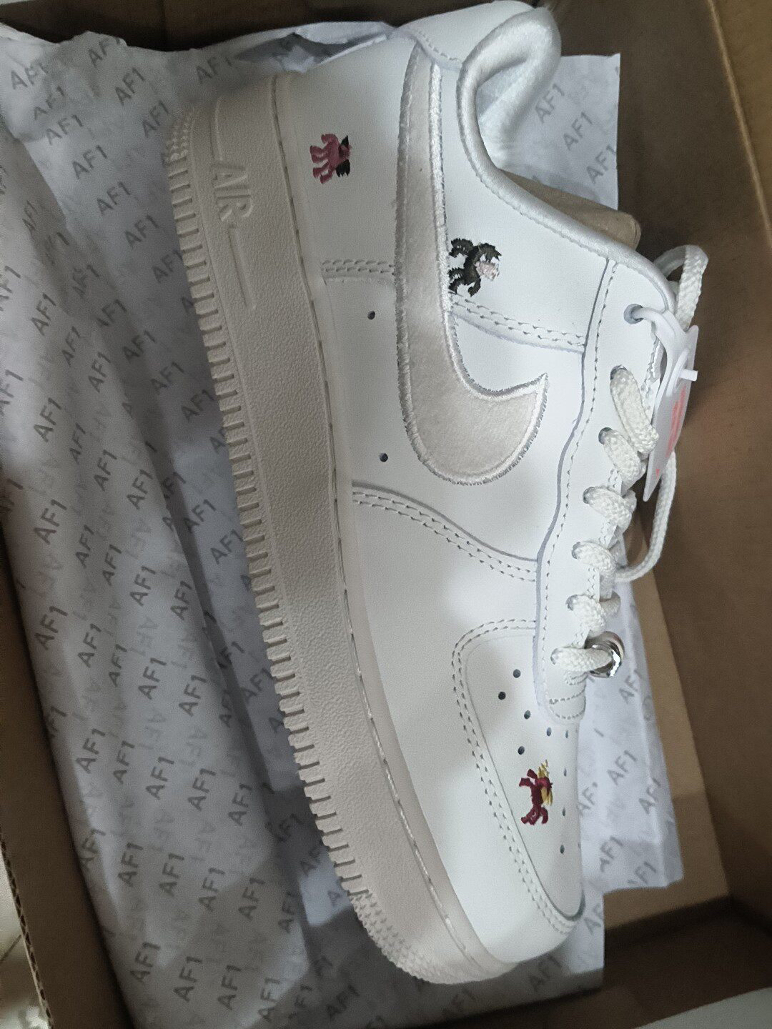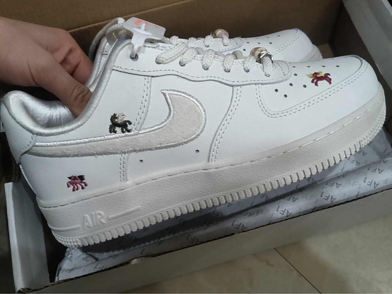 谁懂啊!这双马年限定AF1真的把少女心和新年氛围感拿捏得死死的✨ 奶白底色+彩色小马刺绣,本命年直接封神! 🌟 颜值暴击:可爱到犯规的小马军团 • 配色:奶fufu的纯白基底,搭配浅米白的毛绒Swoosh,温柔又干净,完全不挑肤色。 • 刺绣:鞋身遍布黑、红、粉三色小马刺绣,每只都不一样,像把童话里的小马驹穿在了脚上,细节控狂喜! • 串珠鞋带:鞋带孔上的粉白串珠+金属扣,走路时轻轻晃动,自带...
