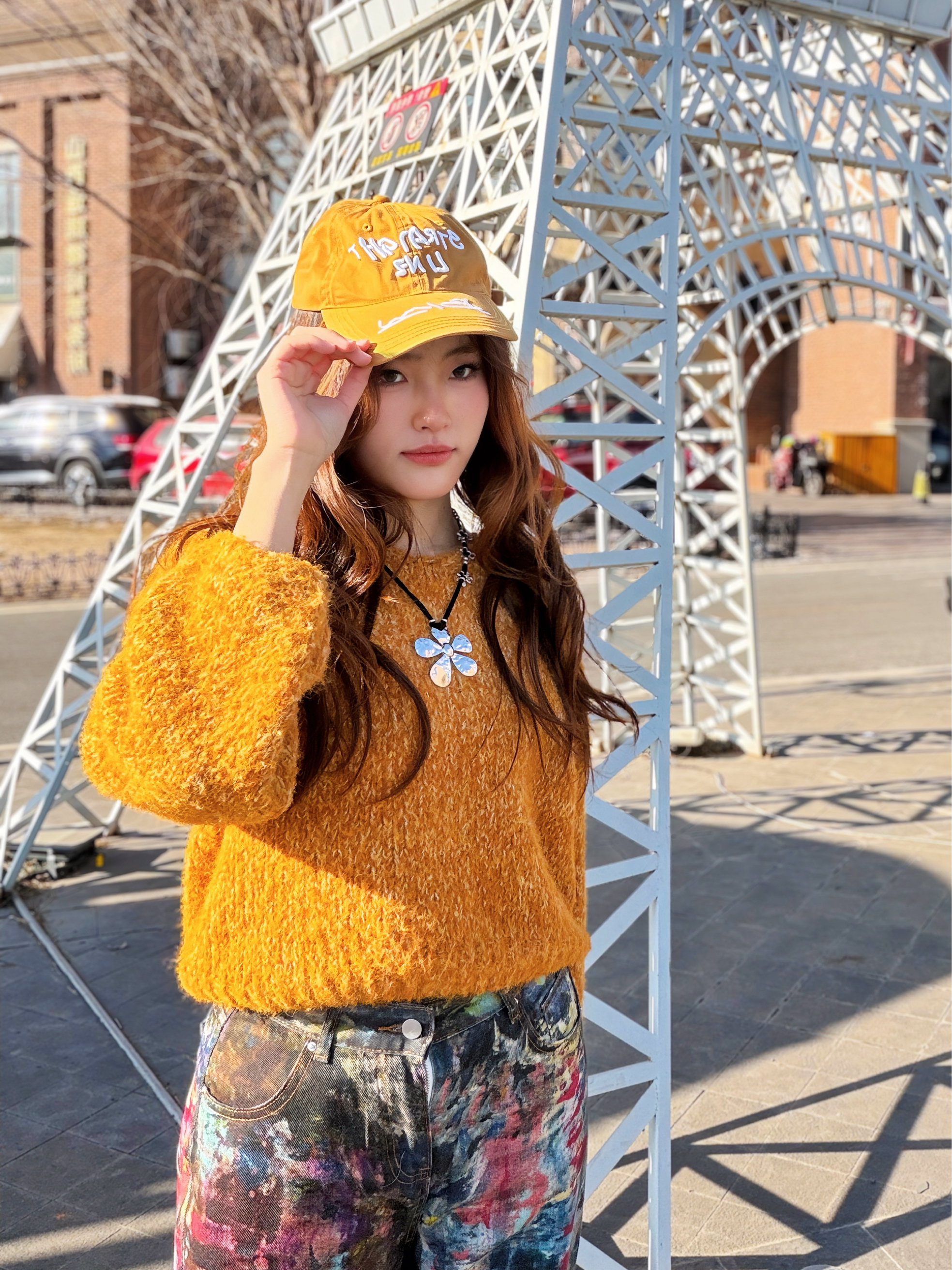 最近的心头好就是这顶姜黄色棒球帽🧢 直线绽放 帽檐的弧度刚刚好,能修饰脸型,把高颧骨和下颌线都藏得好好的,素颜出门也能一秒变酷。 最戳我的是帽身的涂鸦刺绣,歪歪扭扭的字母,随性又有设计感,不会太刻意。 今天搭了同色系的毛绒毛衣,再配上一条泼墨涂鸦裤,整个look的色彩感一下子就出来了。 不管是扎头发还是披头发,戴它都很合适,是那种能提升整套穿搭质感的小配饰。 冬天的穿搭太沉闷,用一顶亮色的...