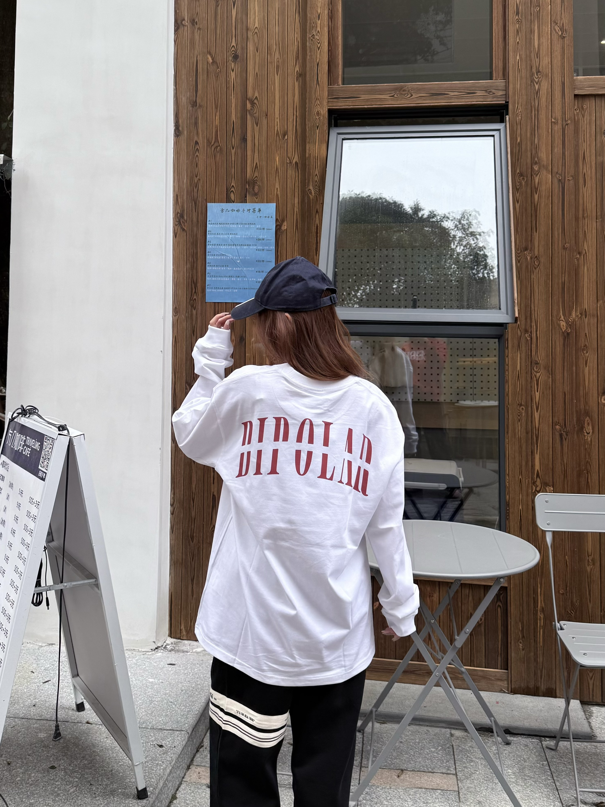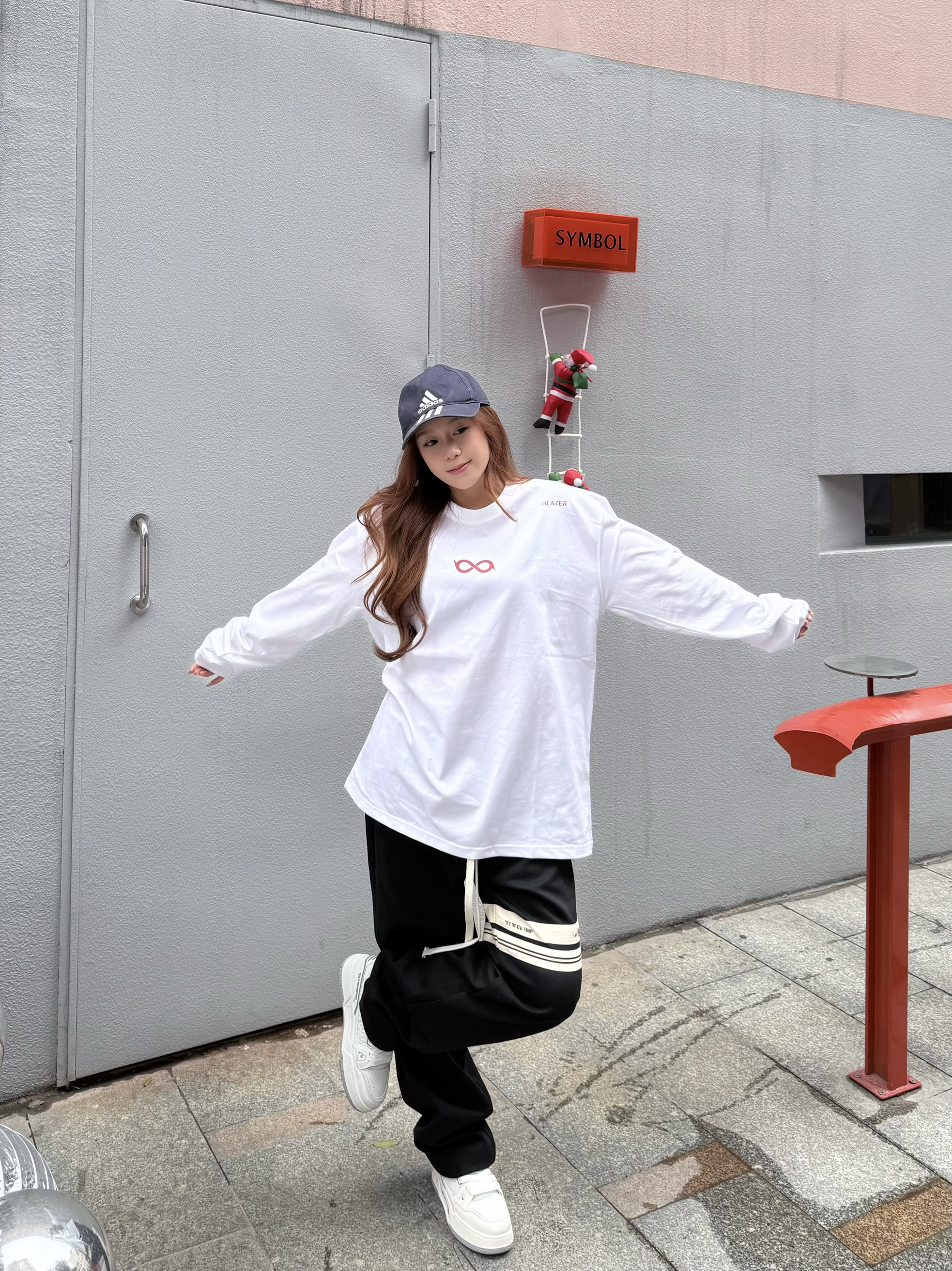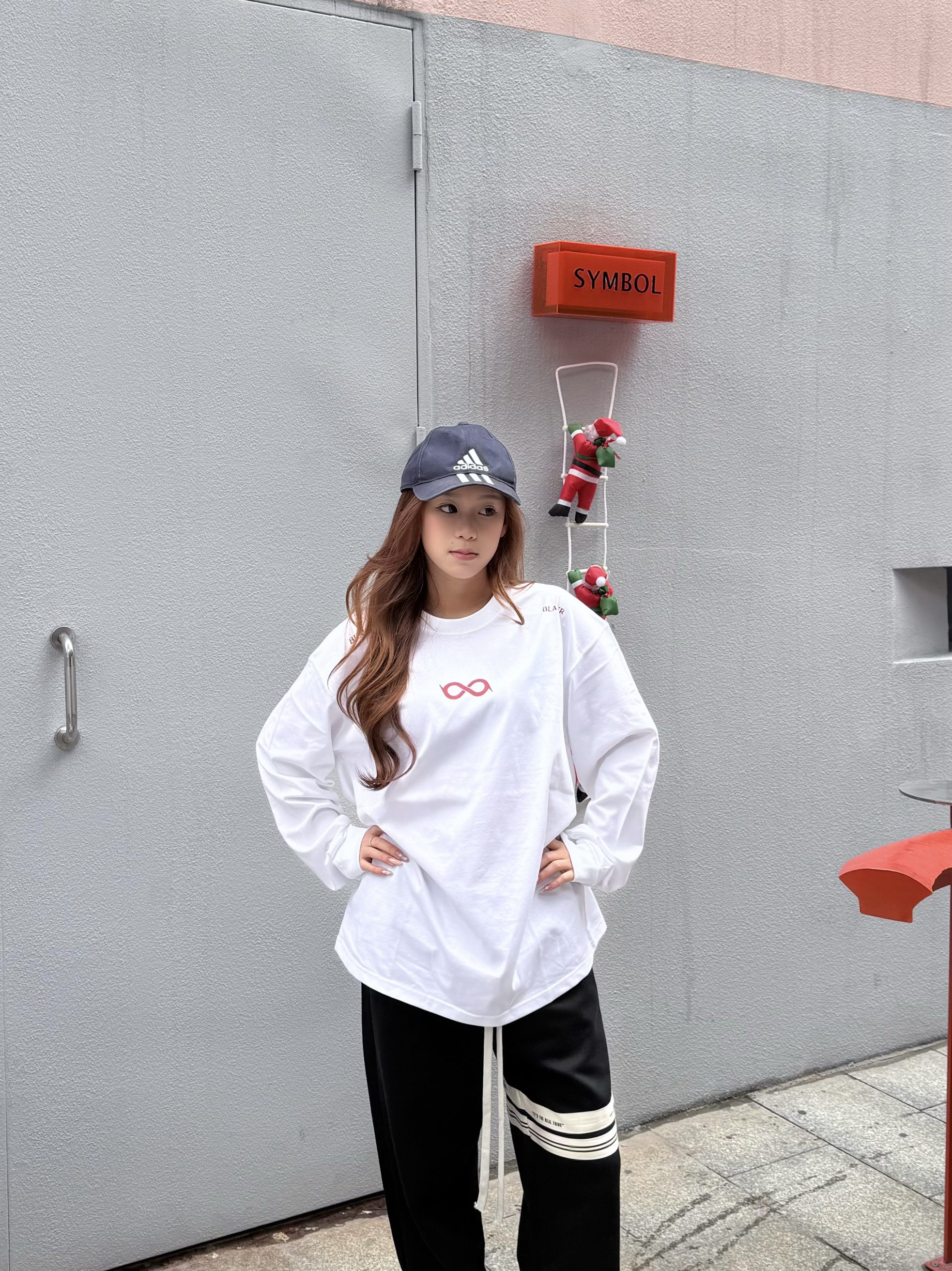 这件一眼长袖我一眼爱上! 白色底显干净,粉红字体温柔又有记忆点 无限循环断开字设计很特别,街头感🆙 长袖版型很日常,我160/45kg穿s码 宽松但不拖沓,叠穿外套也很加分💯 介就是我的开春体面内搭啦~