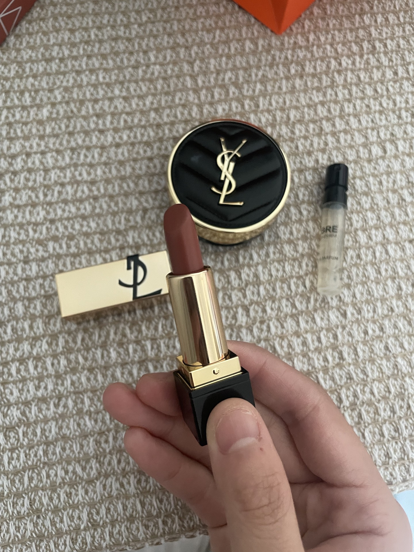 本篇笔记关联了YSL/圣罗兰 素颜黄皮显白缎面口红气垫彩妆套装 丝绒细闪持久气色 方管1966 1.3g+黑气垫B20 5g+铂金之境体验香水+千鸟格桶等商品,为用户提供真实的使用体验和购买参考。