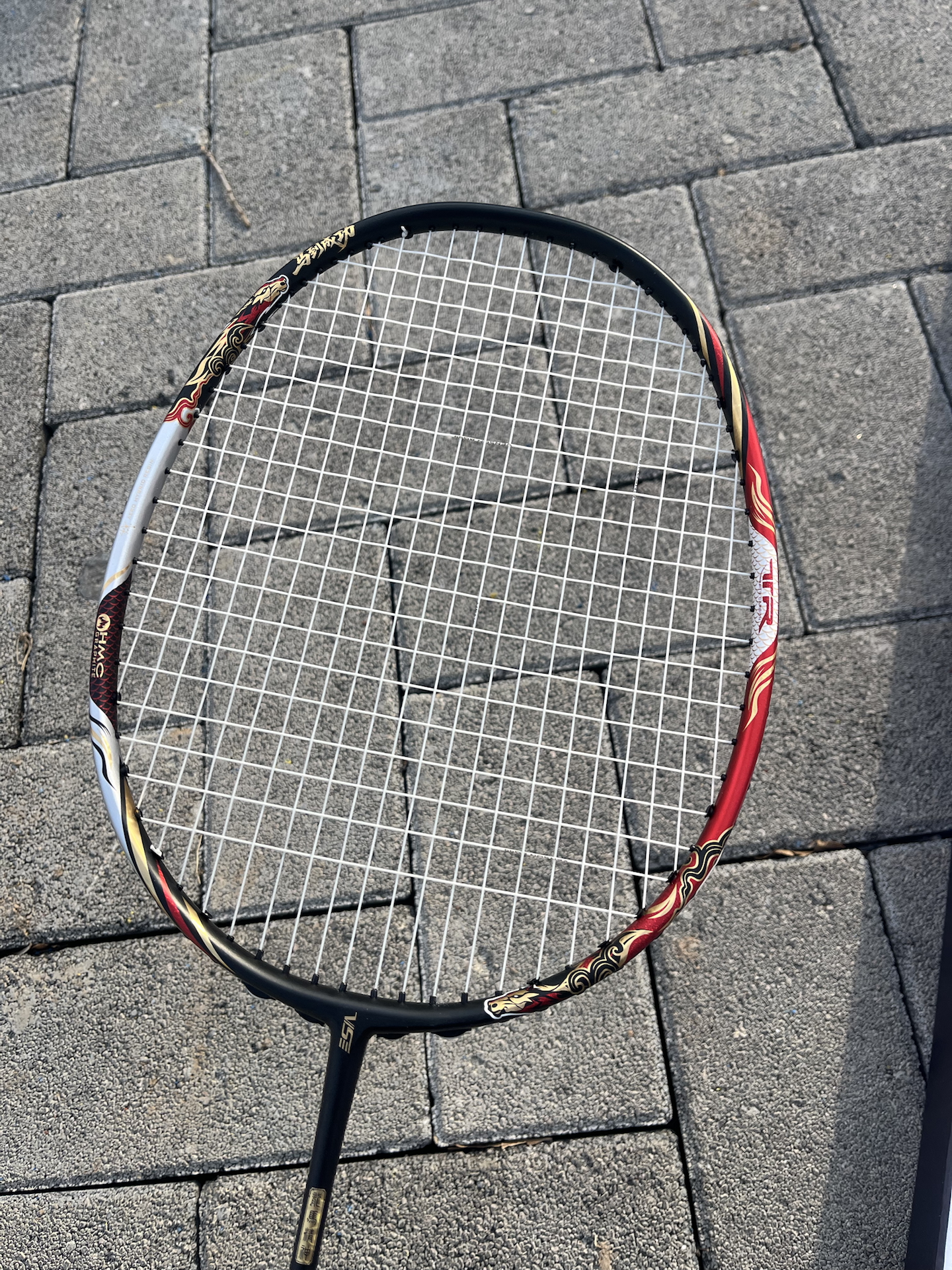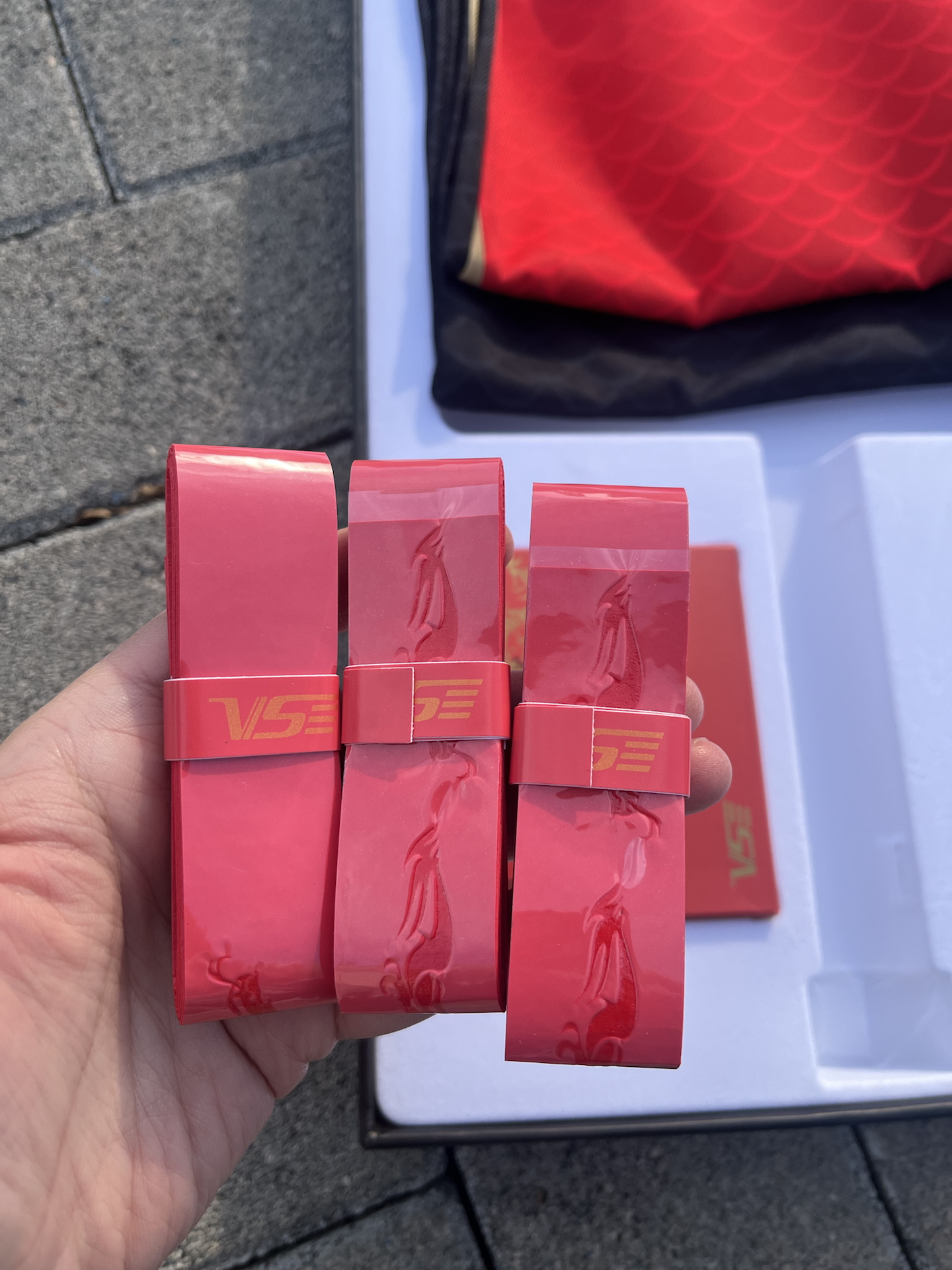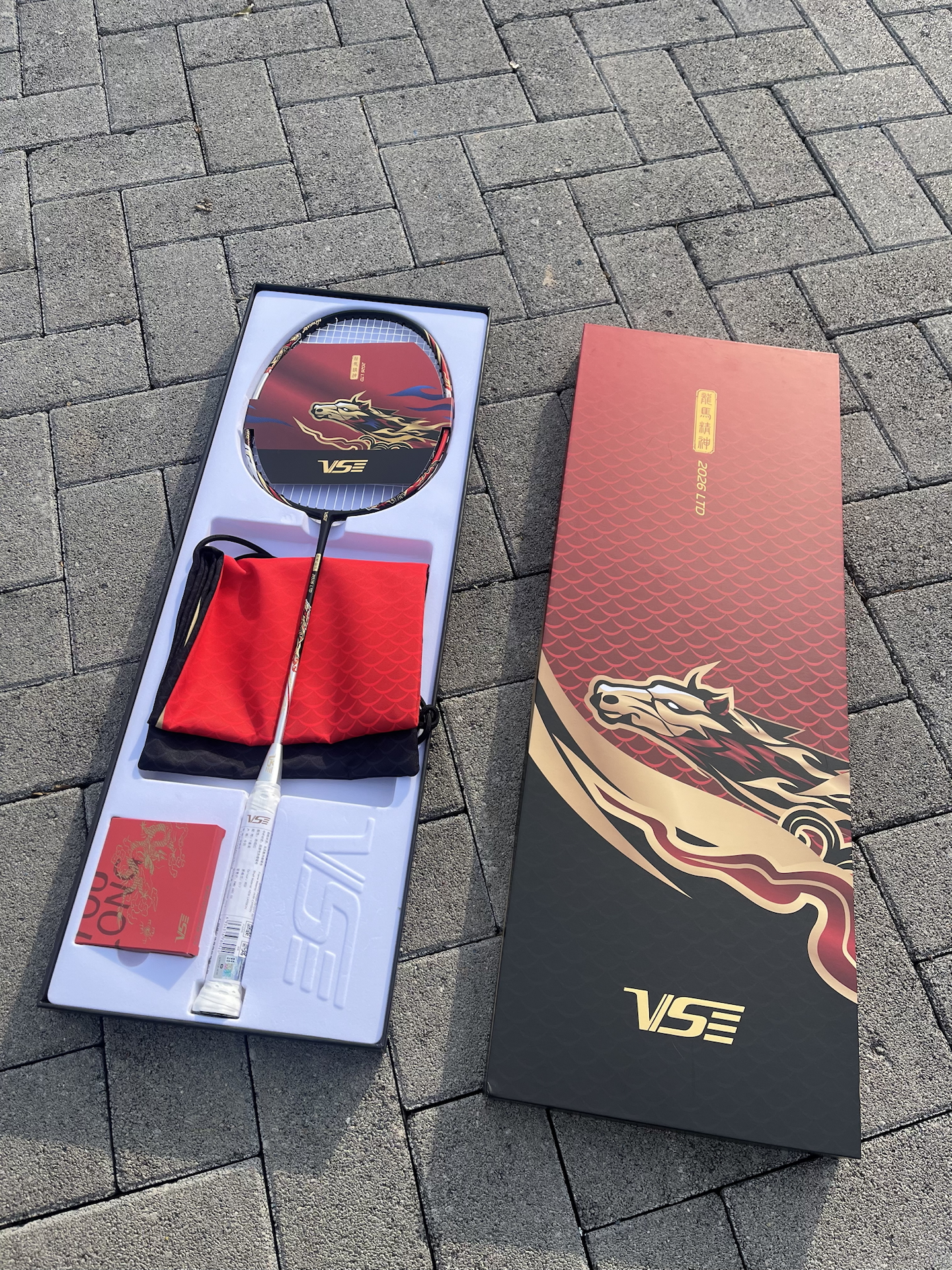 我入手这套国潮风羽拍礼盒,红金配色第一眼就戳中我~礼盒满是龙马元素,送礼倍儿有面!球拍4U重量上手轻,挥拍特流畅~不过拍杆硬,新手可能得适应下~打起来杀球爆发力足,网前小球也能精准控制,进阶球友可以冲👏
