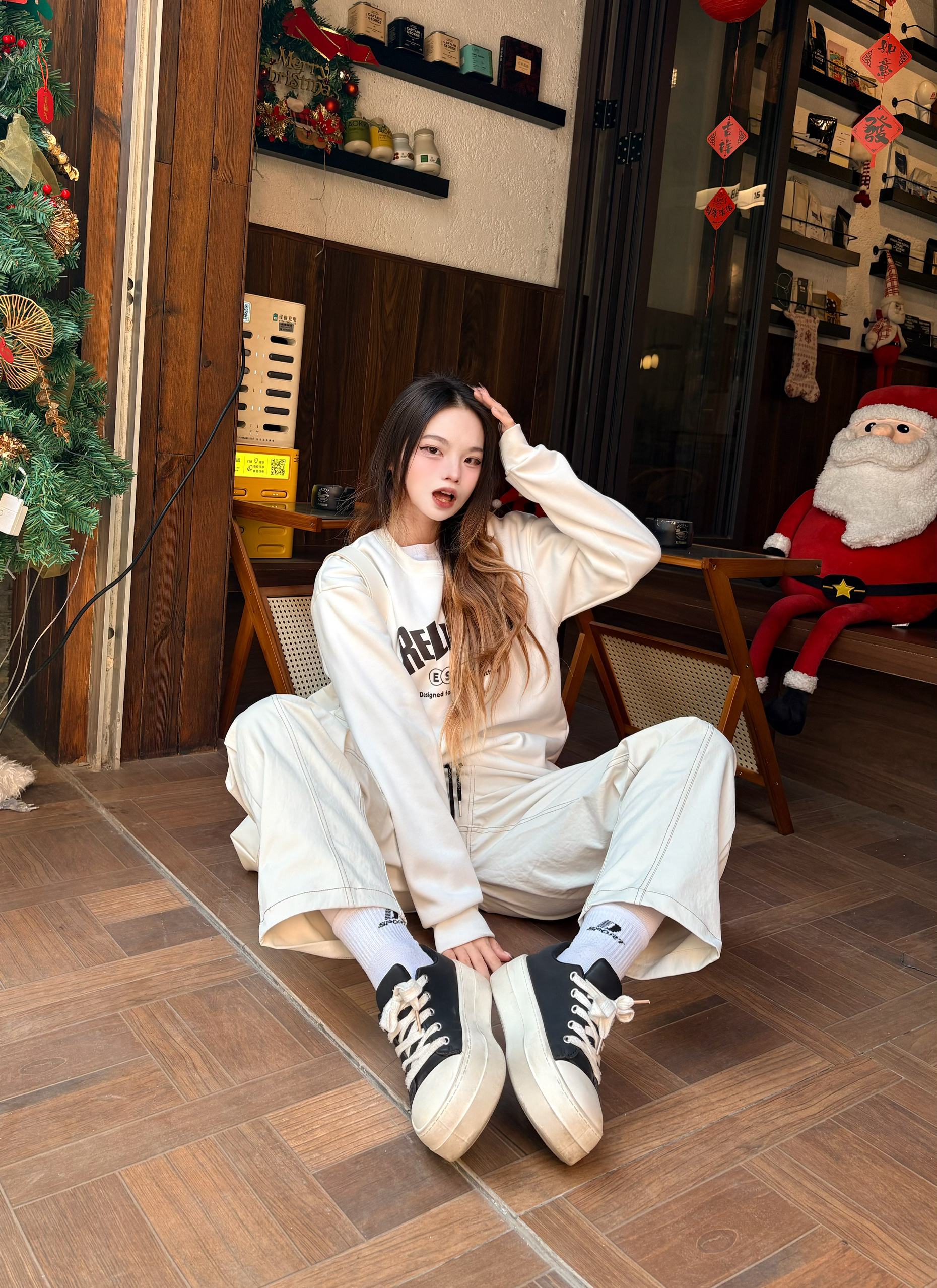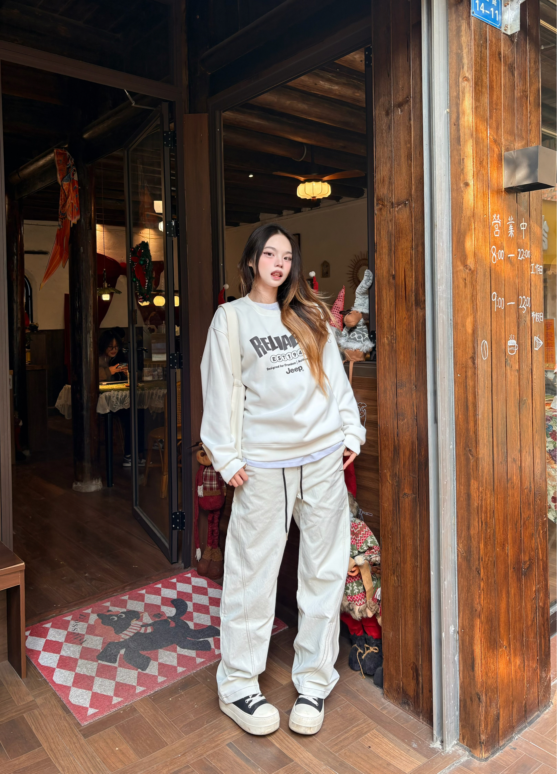 白卫衣+米白阔腿裤 经典配色永远不出错✅ 裤型是美式复古灵魂,宽松垂坠感拉满,把胯宽腿粗全藏住👕 软fufu的面料舒服到不想脱,配厚底鞋直接拥有超模比例 随便一套就能出门,街头感和松弛感同时拿捏✨ 我165/96 穿的m