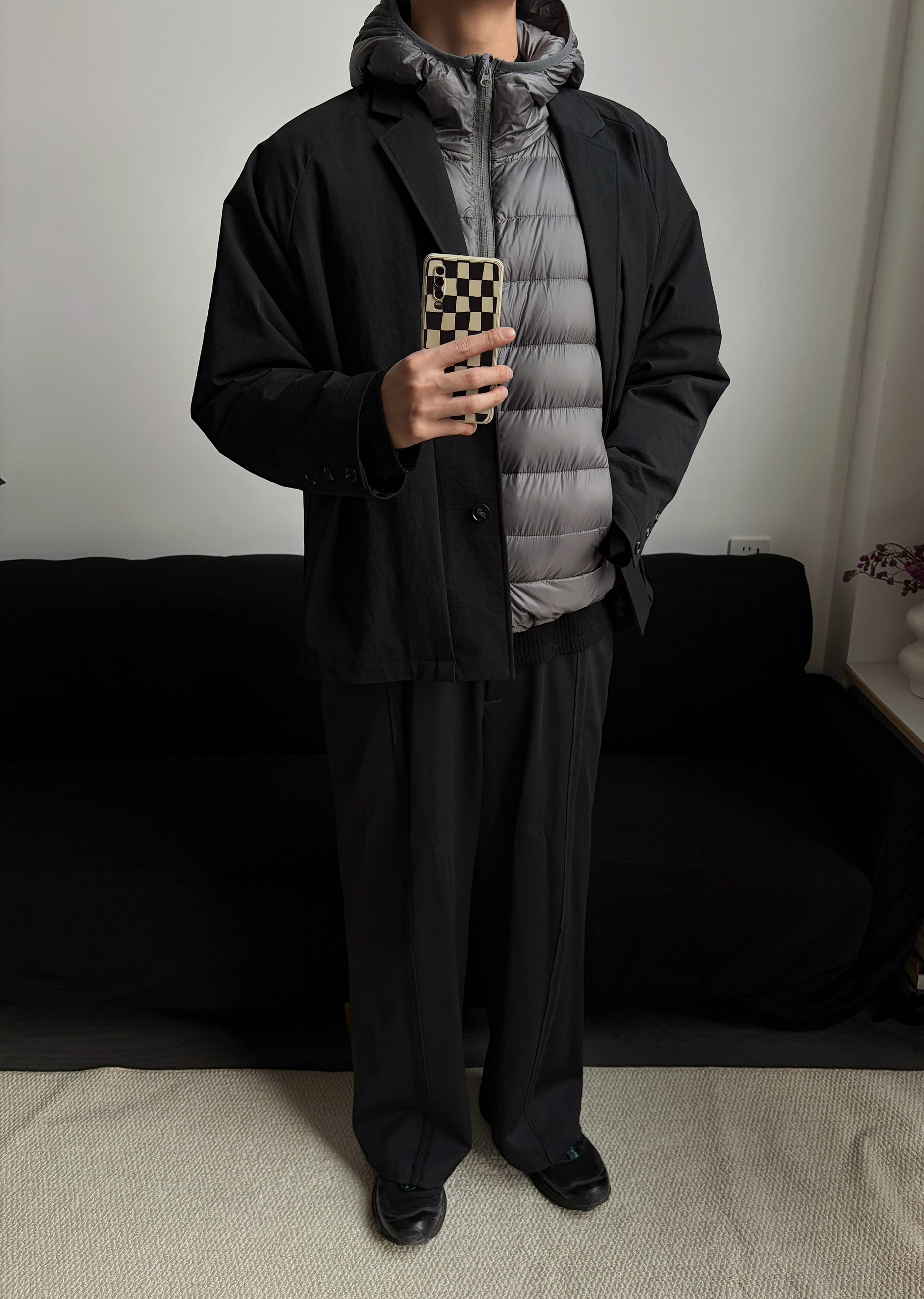 今年虽然是暖冬,但是保暖还是不能落下!原来排骨羽绒服作为中间层才是正确打开方式,既保暖又层次感十足,利用同色系之间不同面料的碰撞,简单低调