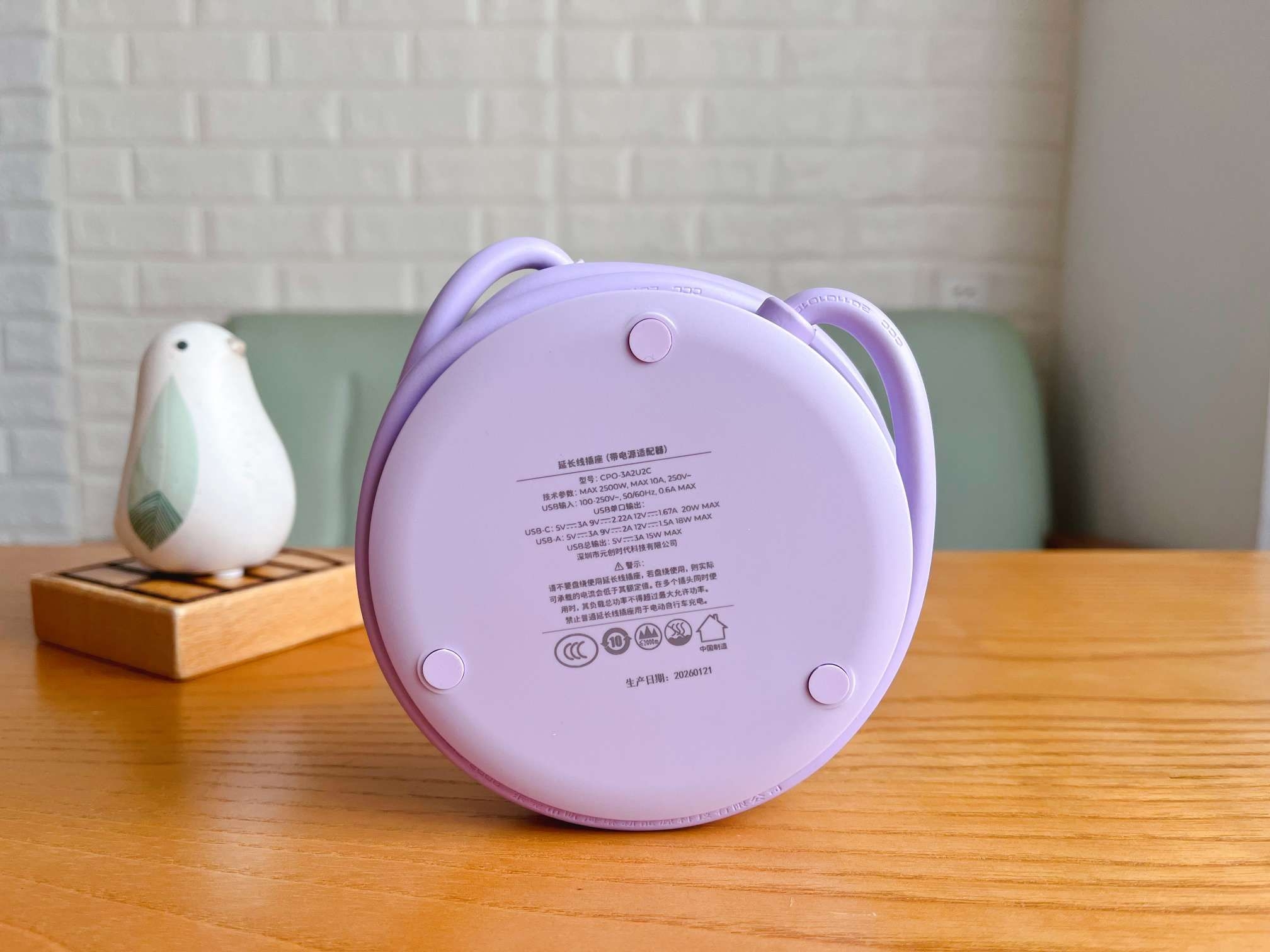 打破传统长条造型的“直男审美”,它依托工程学打造圆形外观,这一次,工程学与美学在圆形弧线上完美相遇。直径仅10.7cm、高3.2cm,比手掌还小巧,圆润线条不占地方,收起来井然有序,放包里不鼓囊,出差时随手一塞就能带走,再也不用扛“插排砖头”。