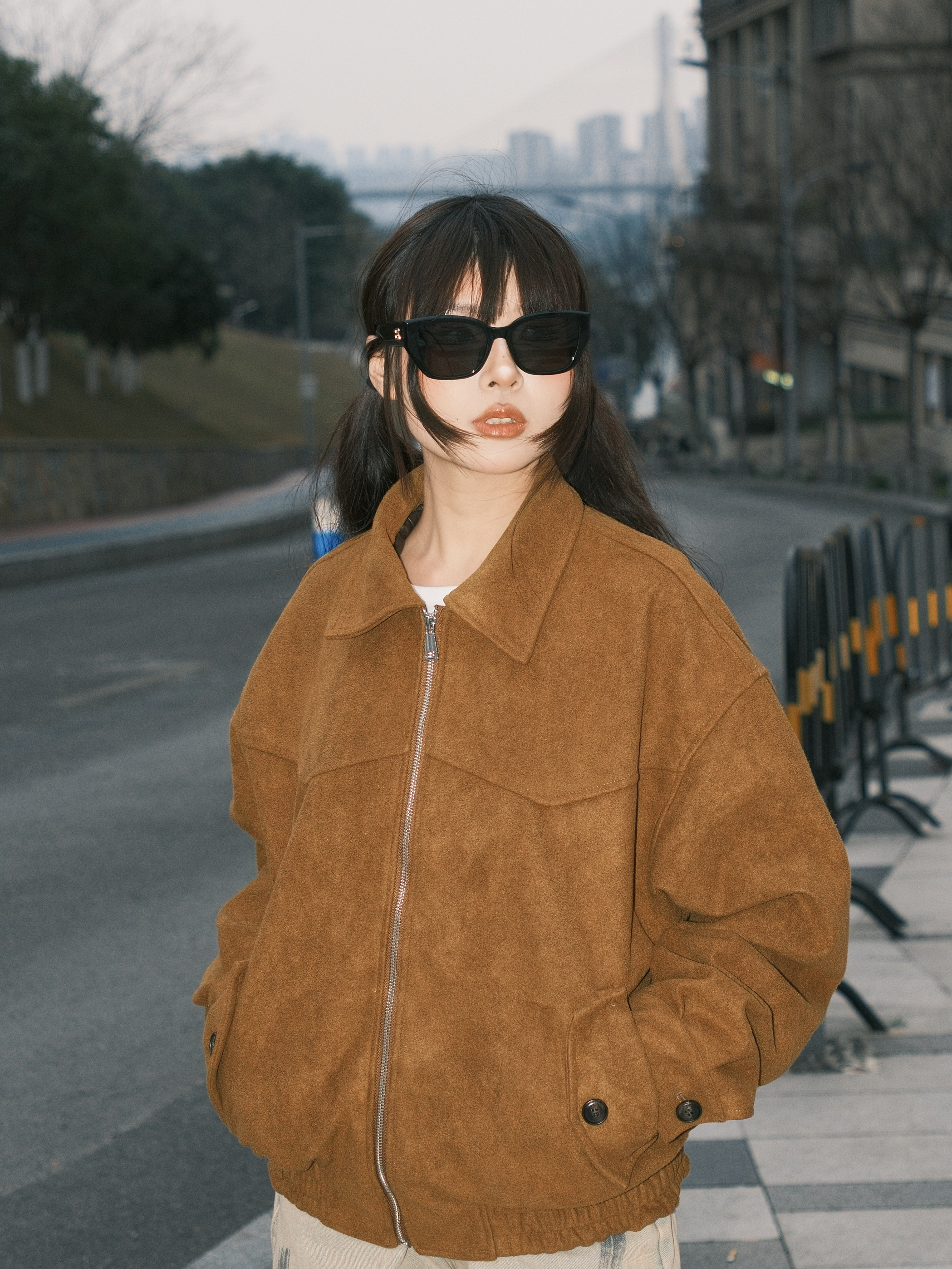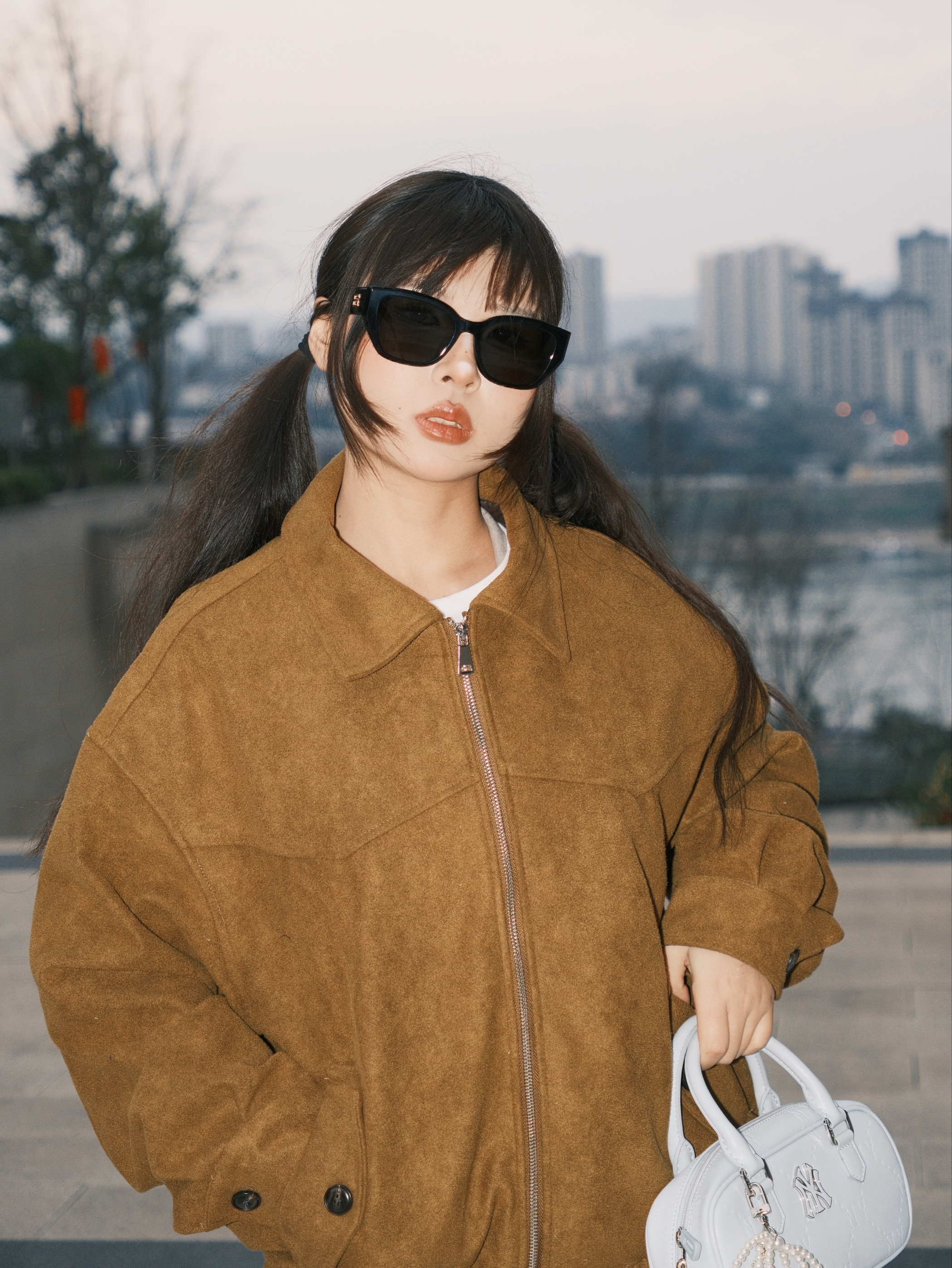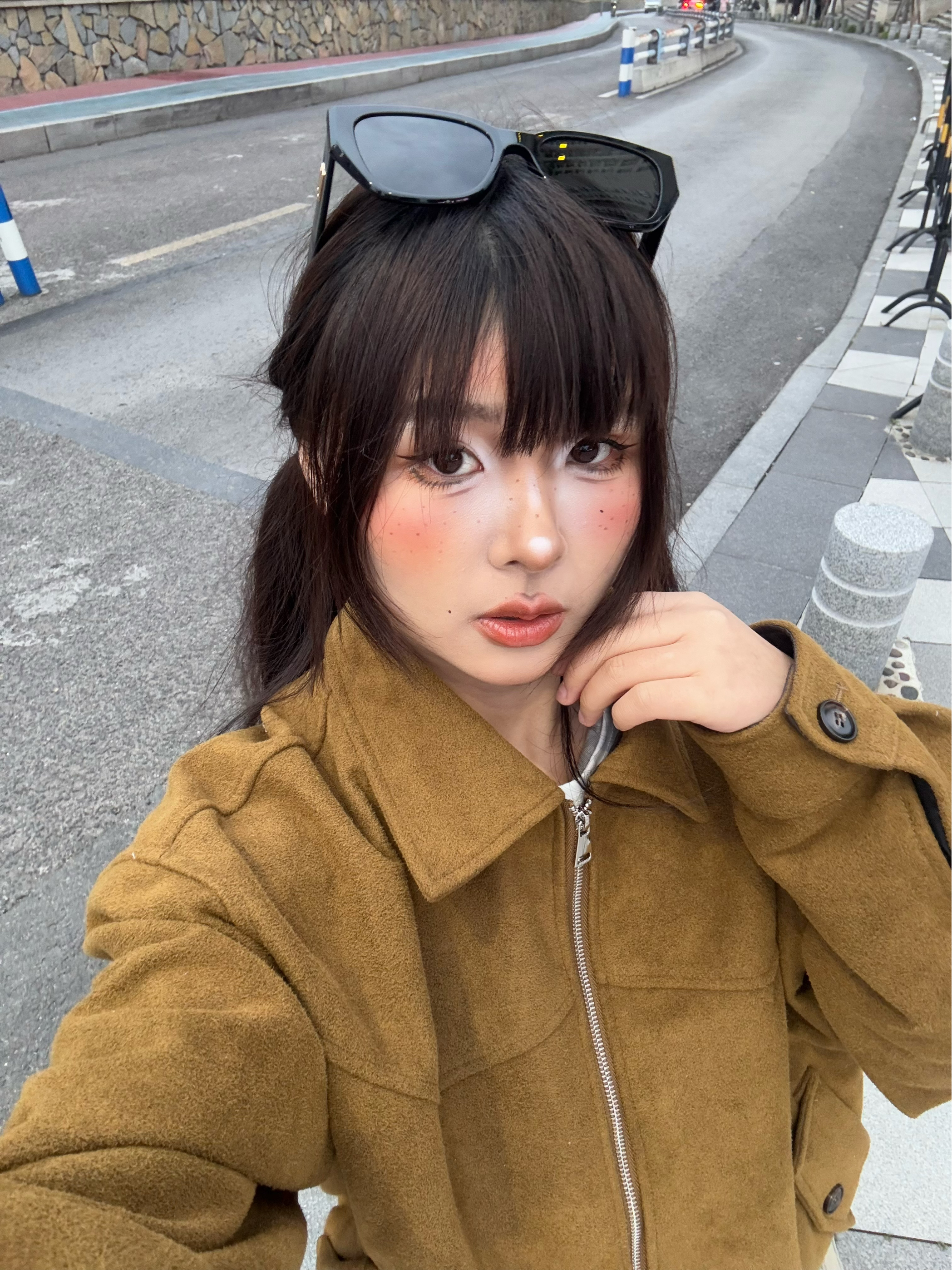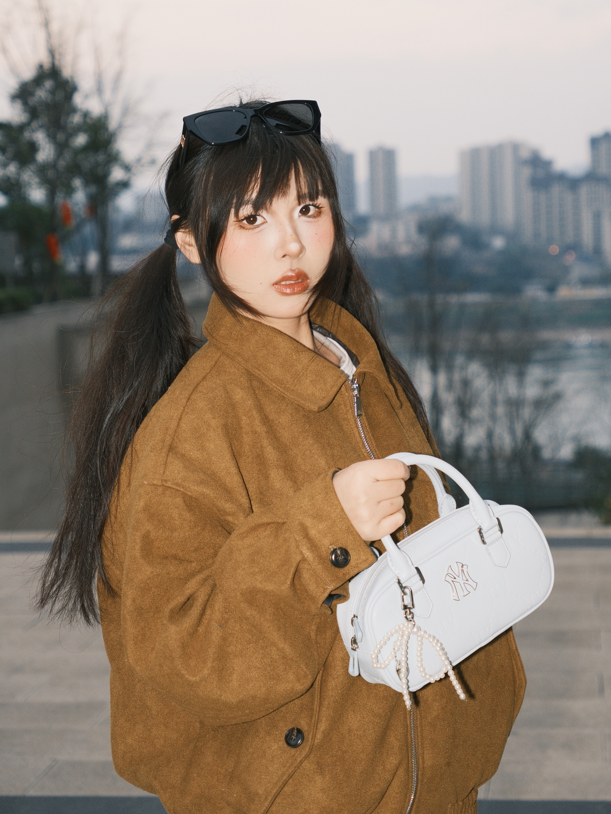 美拉德外套和秋冬适配度拉满啦 戴上墨镜酷酷的~ 手提mlb的蓝色保龄球包包~ 真的爱啦