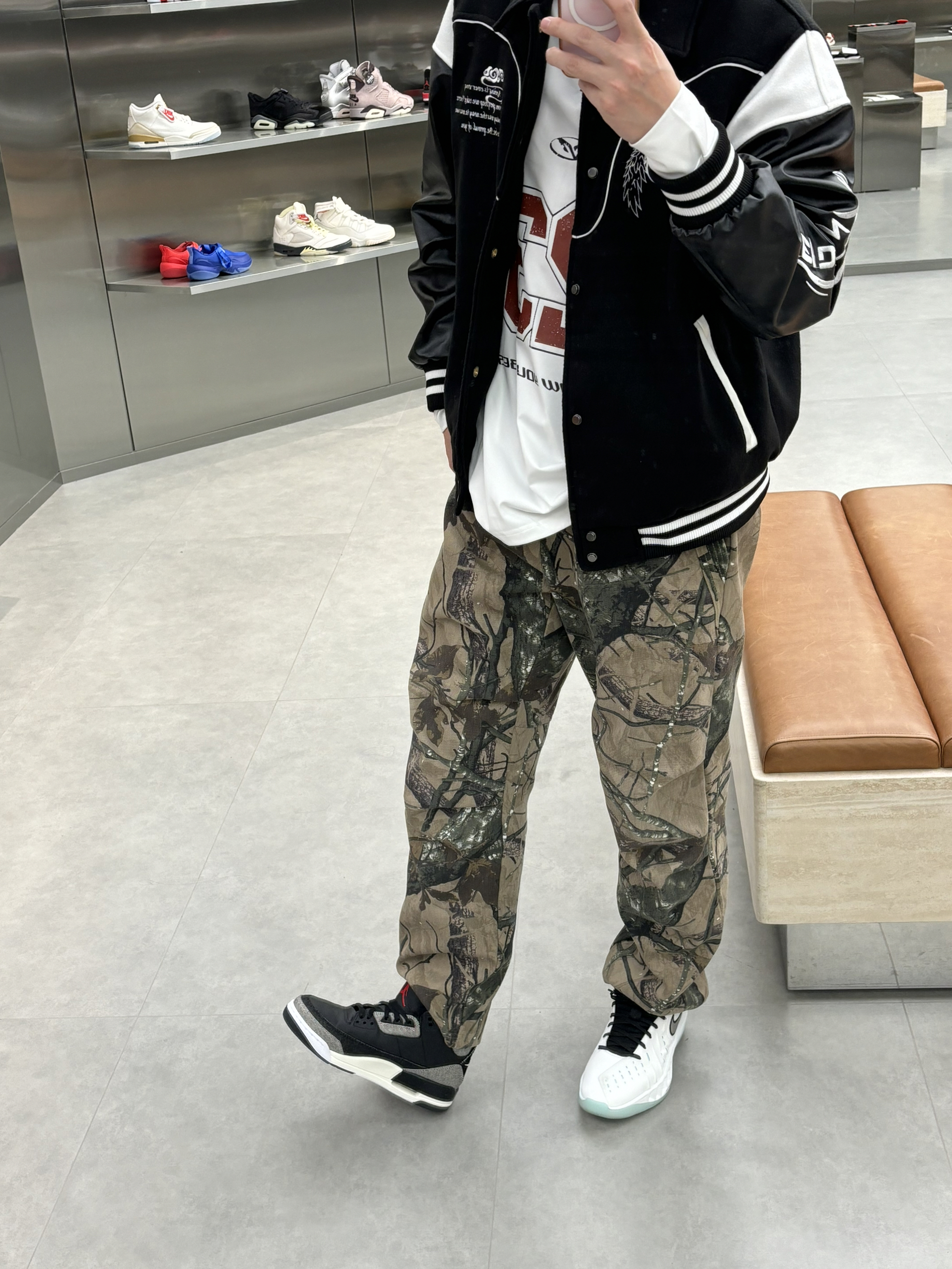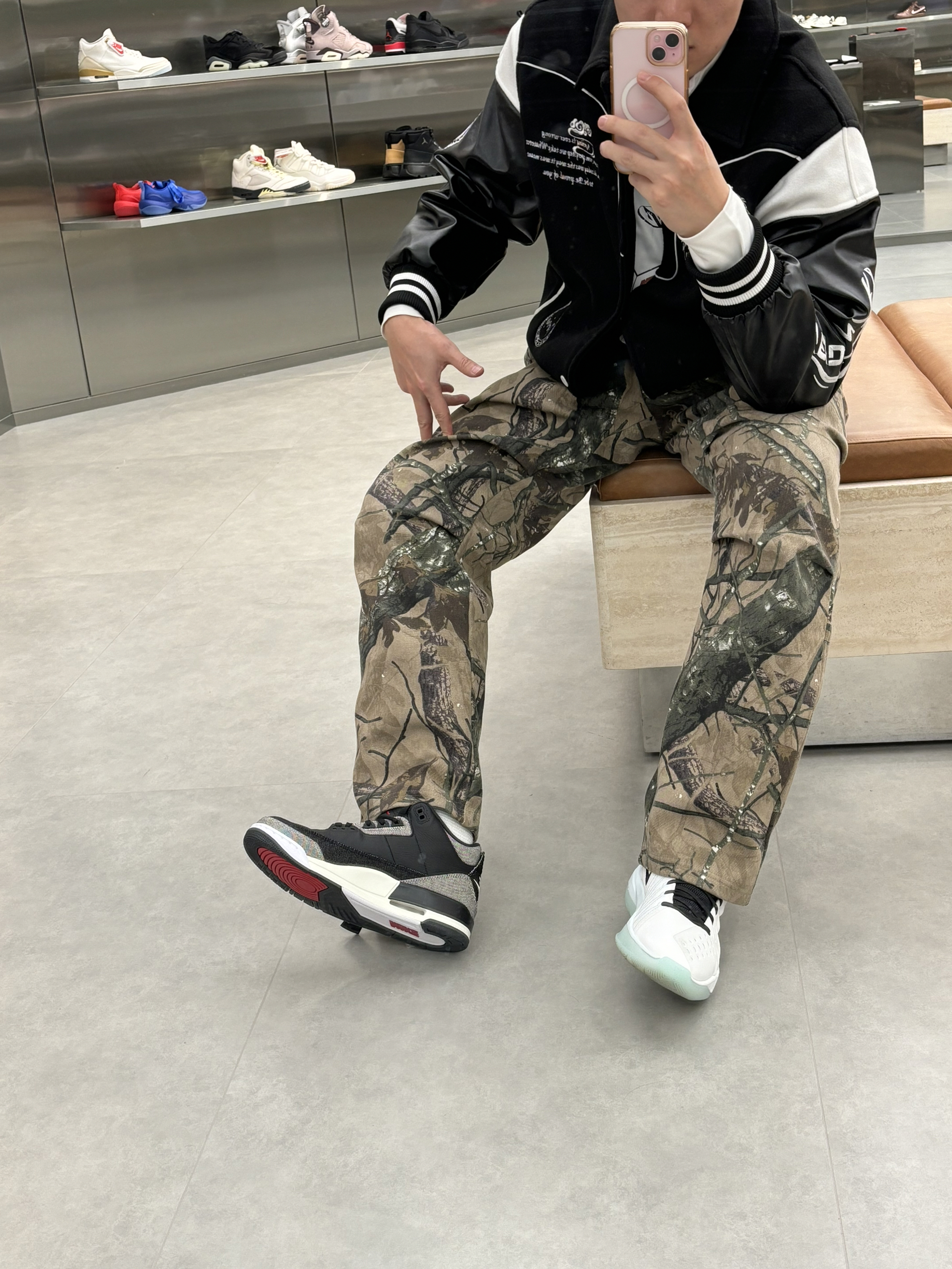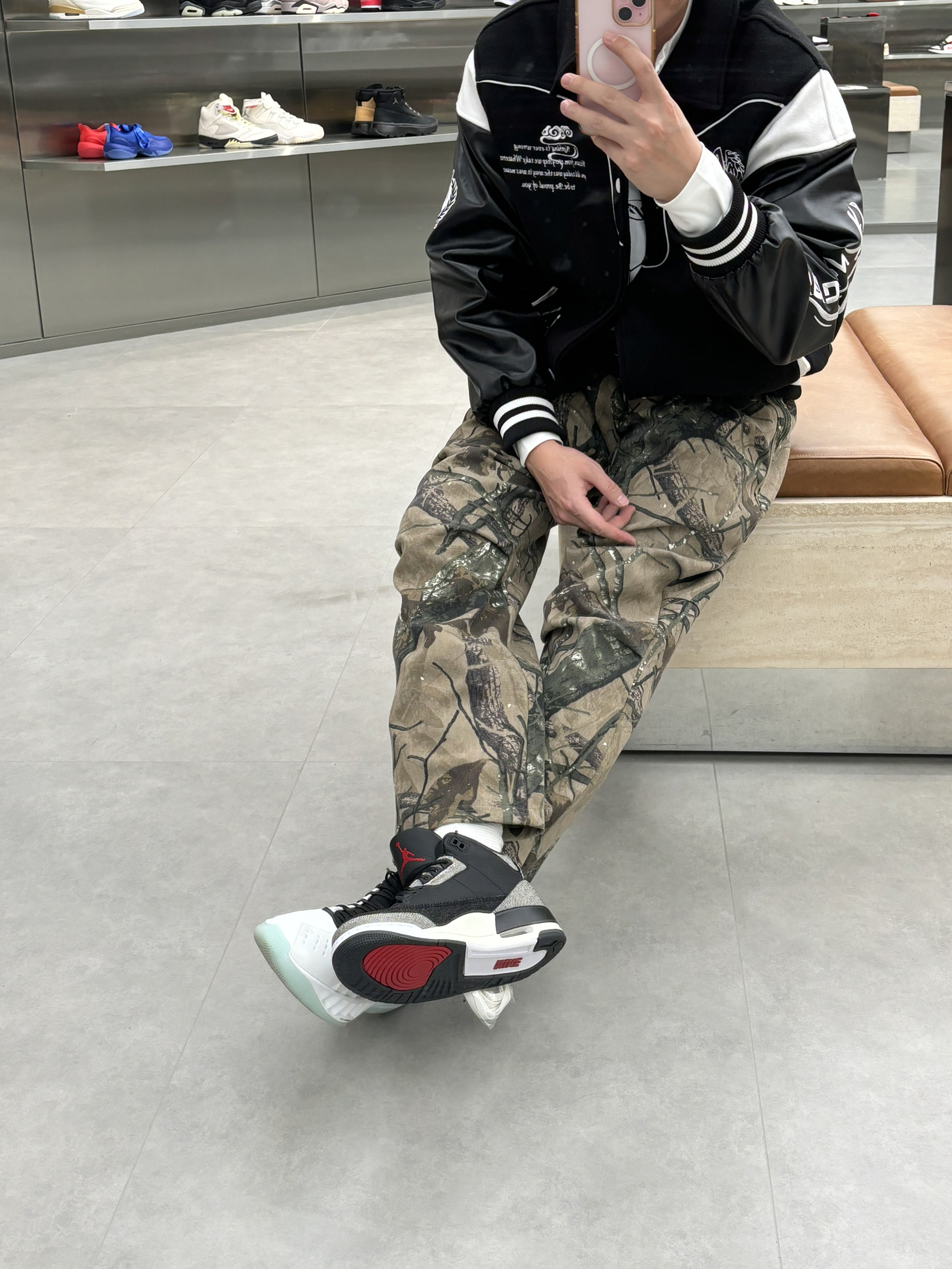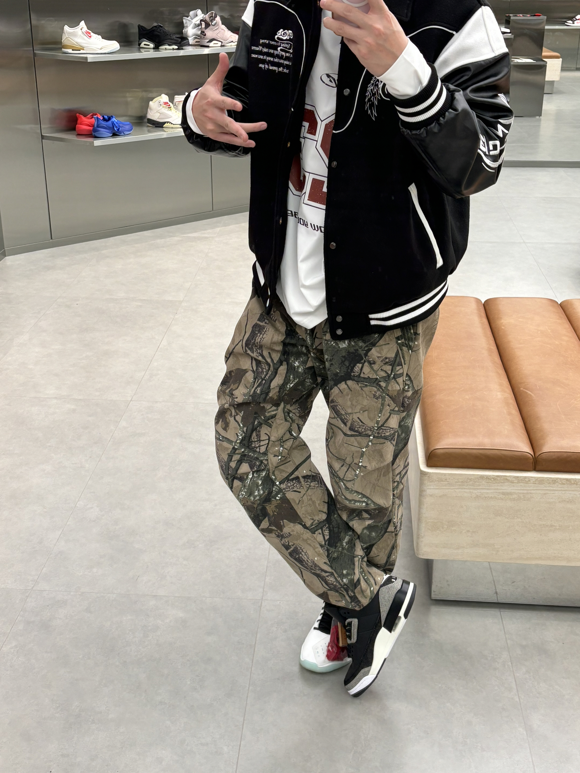 #预习一下早春穿搭 早春就这么穿了nba球星就像乔老爷子一样 穿的立挺一些硬朗一些 就是老体育生的感觉 搭配一件黑色棒球服就是帅牛仔风 户外迷彩风直筒裤一配 就是有质感户外运动感十足 一双aj3李维斯黑色单宁破坏风 穿一段时间更有感觉啦 👔维动马年棒球服 👖uzis迷彩裤 👟aj3李维斯黑色单宁