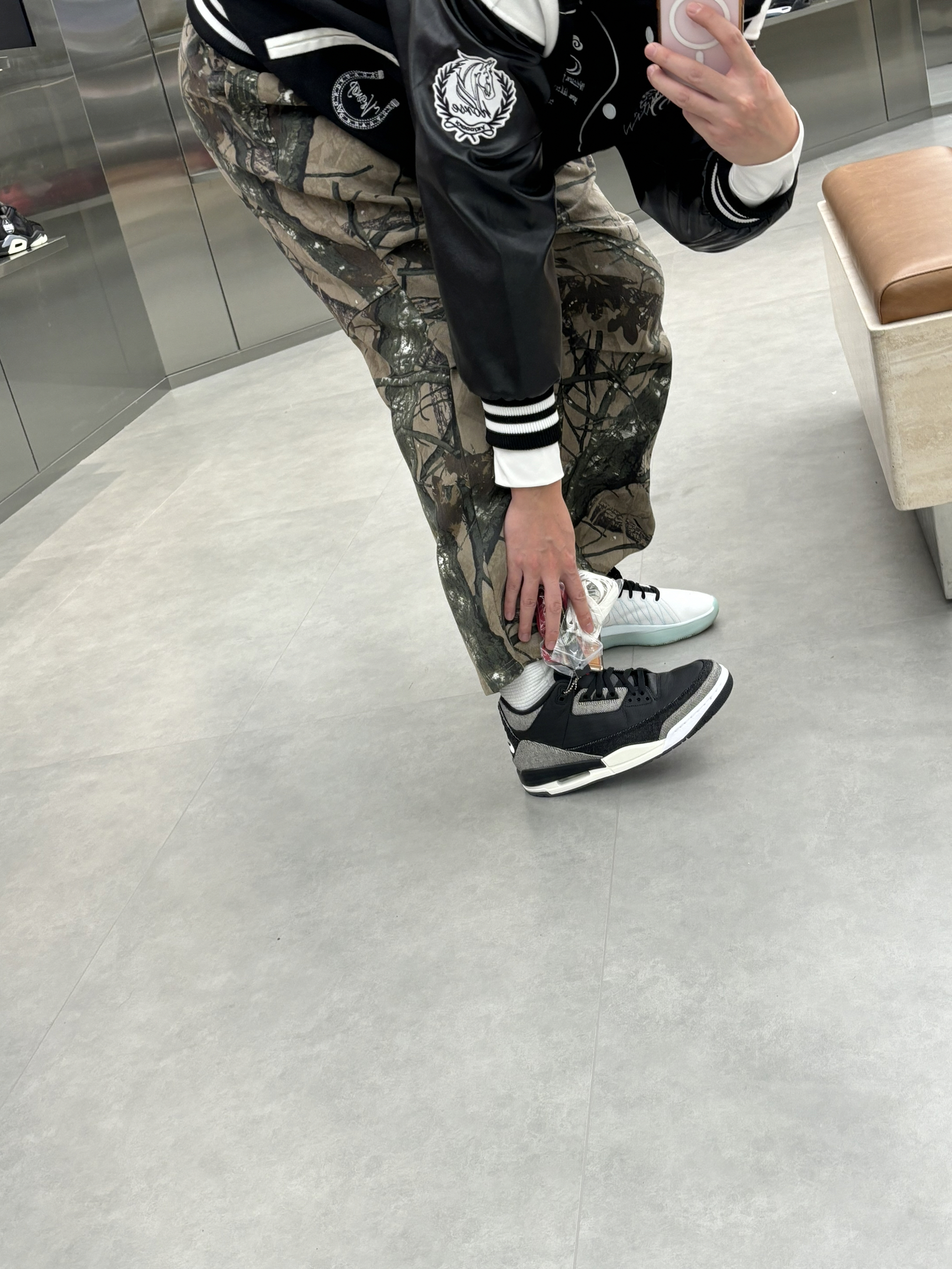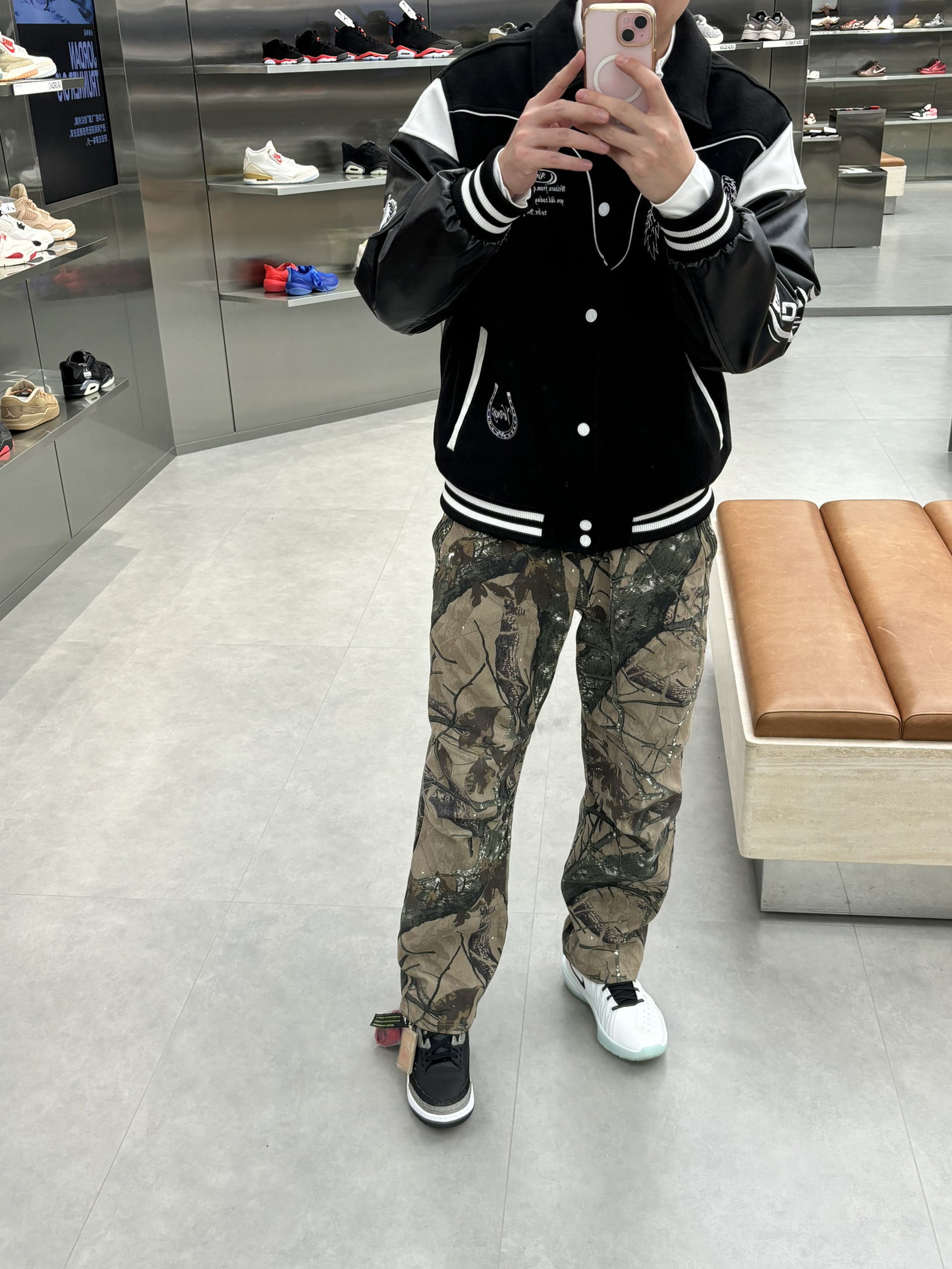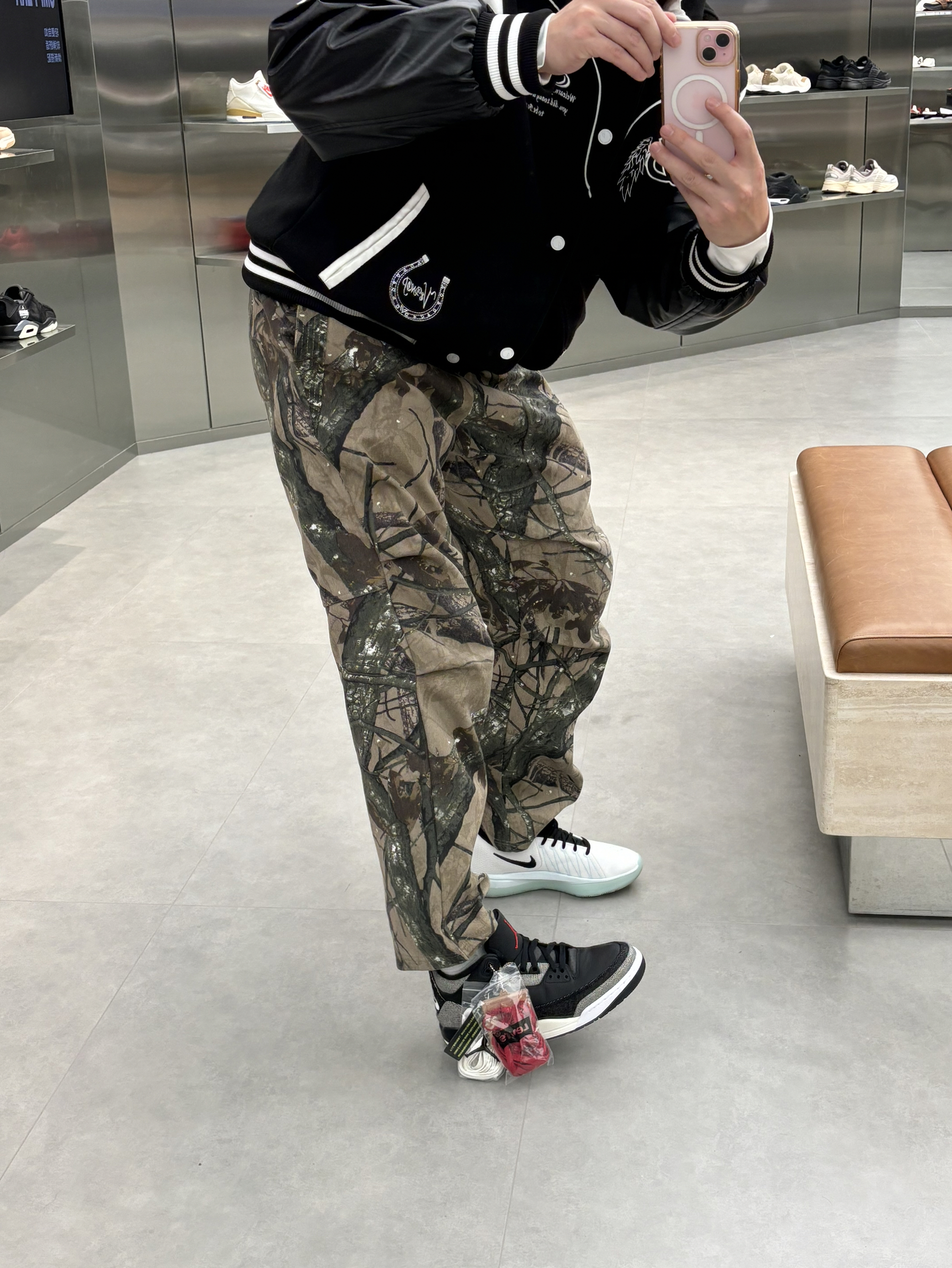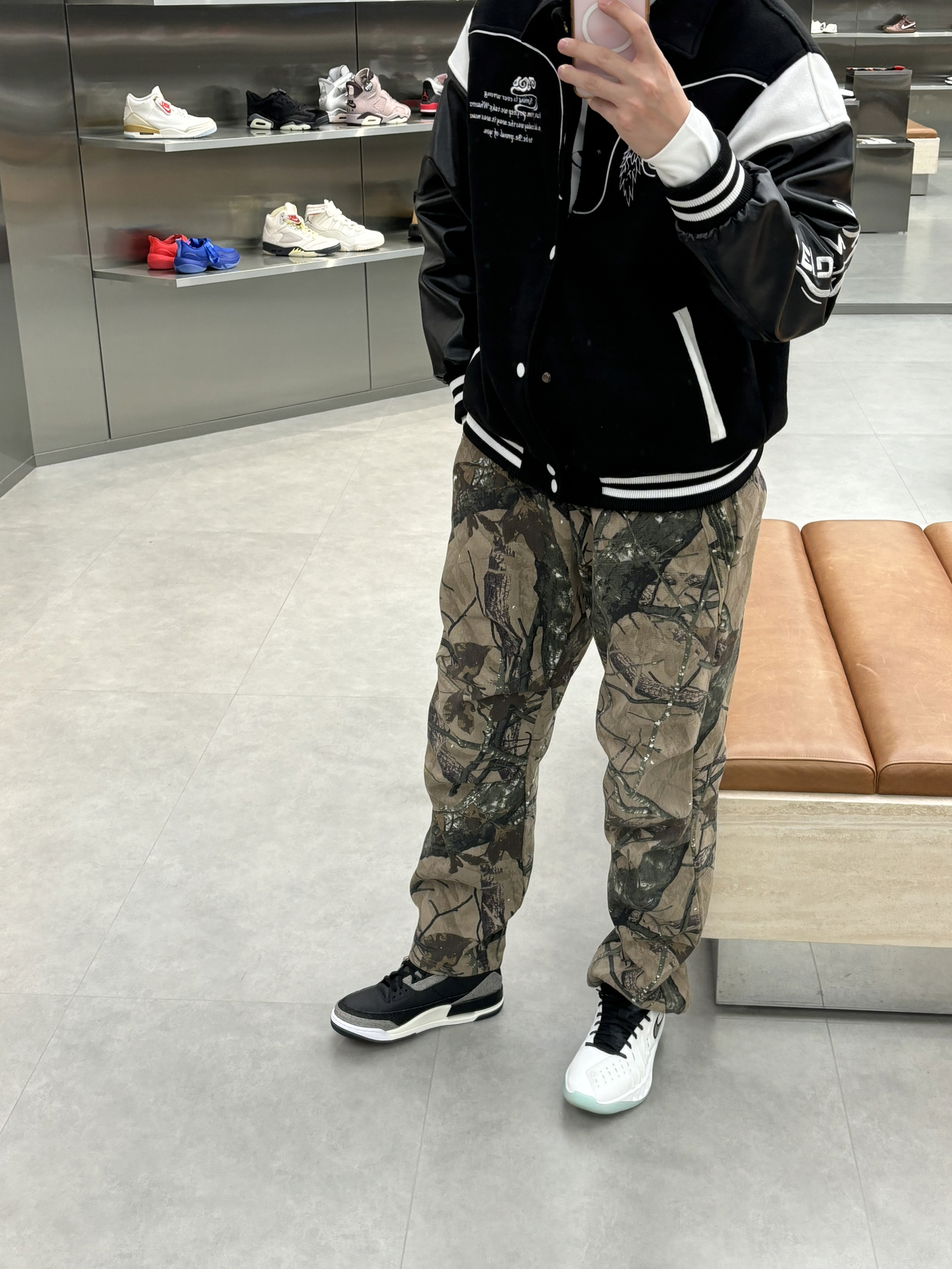 #预习一下早春穿搭 早春就这么穿了nba球星就像乔老爷子一样 穿的立挺一些硬朗一些 就是老体育生的感觉 搭配一件黑色棒球服就是帅牛仔风 户外迷彩风直筒裤一配 就是有质感户外运动感十足 一双aj3李维斯黑色单宁破坏风 穿一段时间更有感觉啦 👔维动马年棒球服 👖uzis迷彩裤 👟aj3李维斯黑色单宁