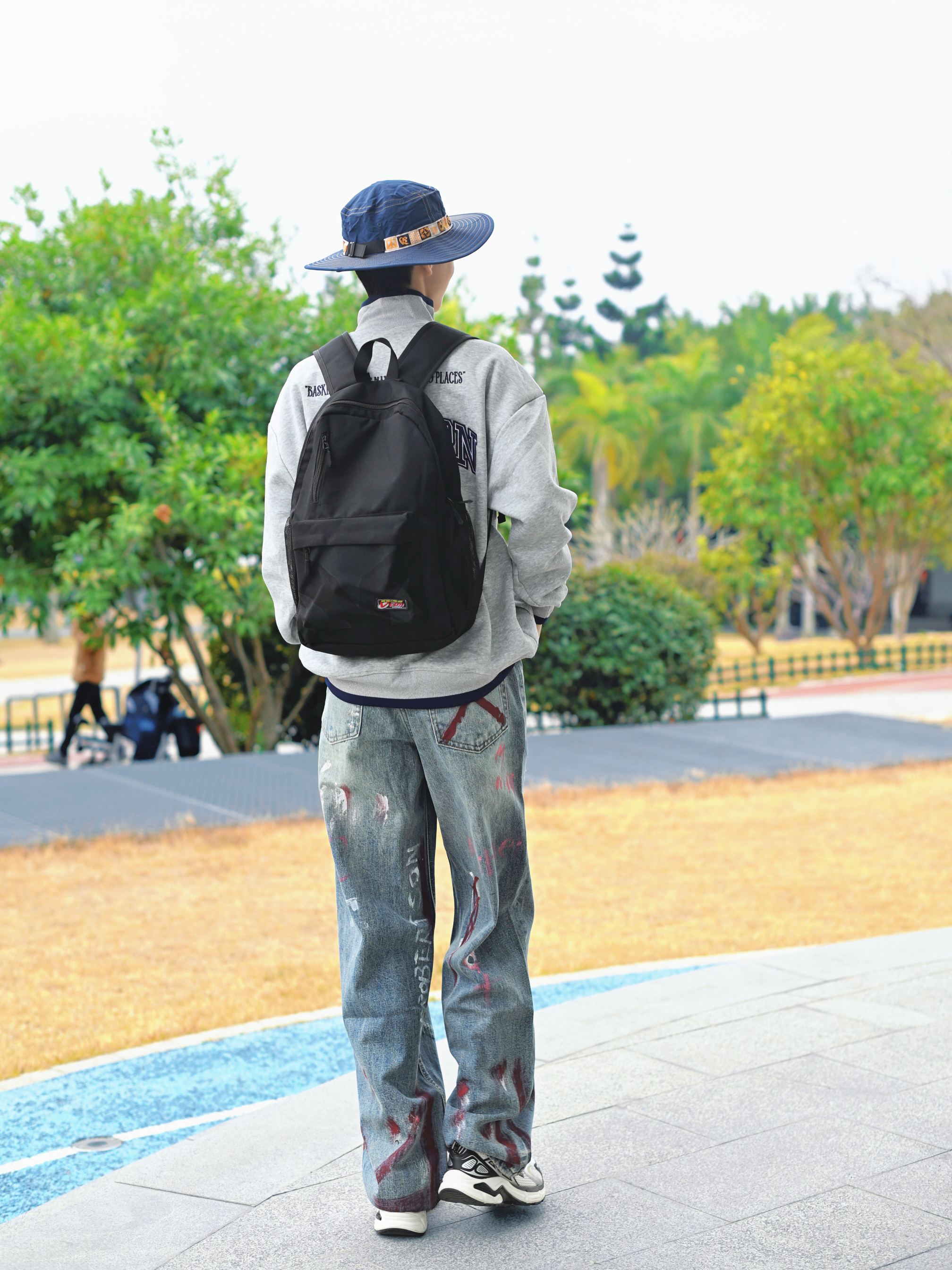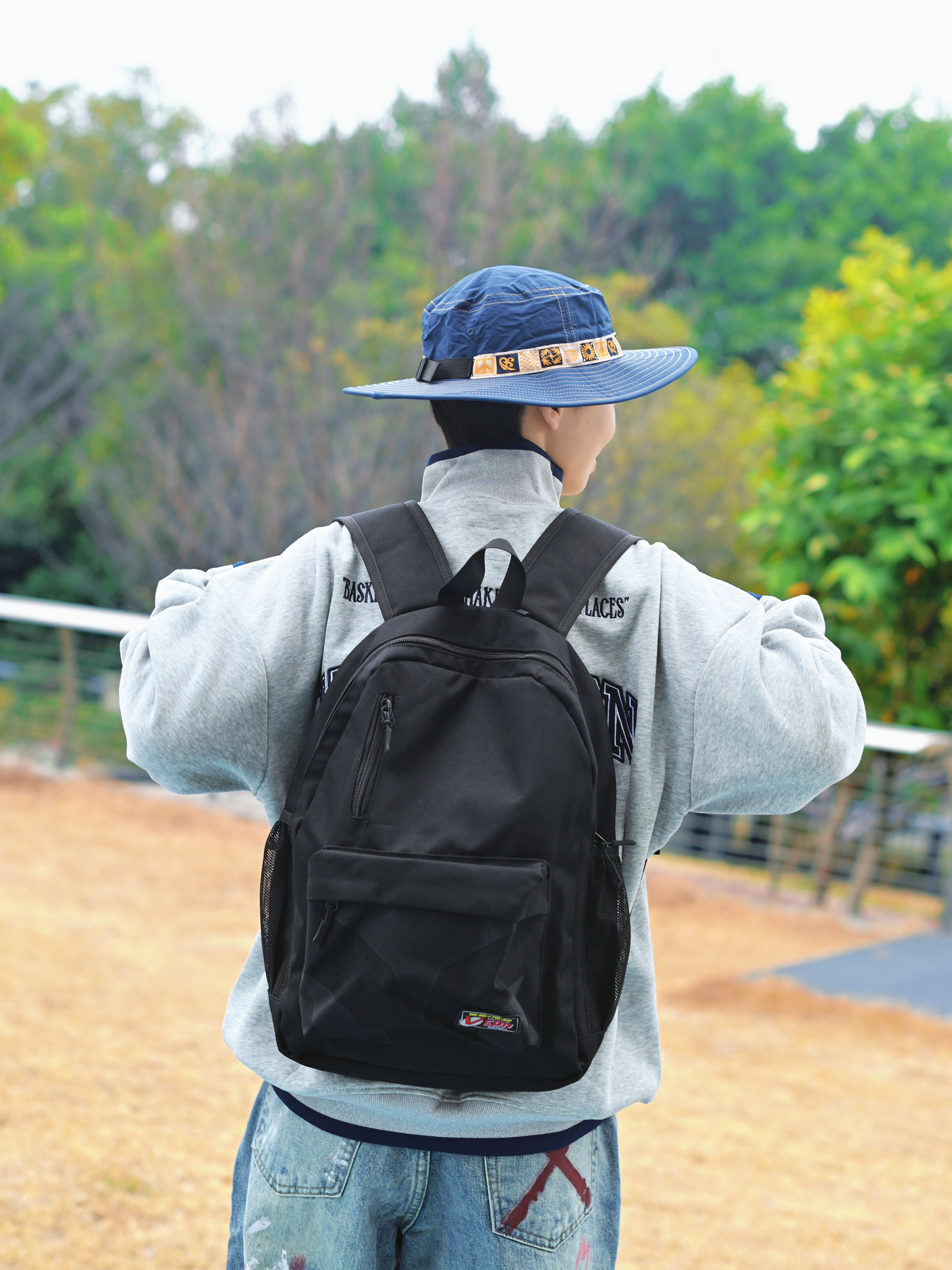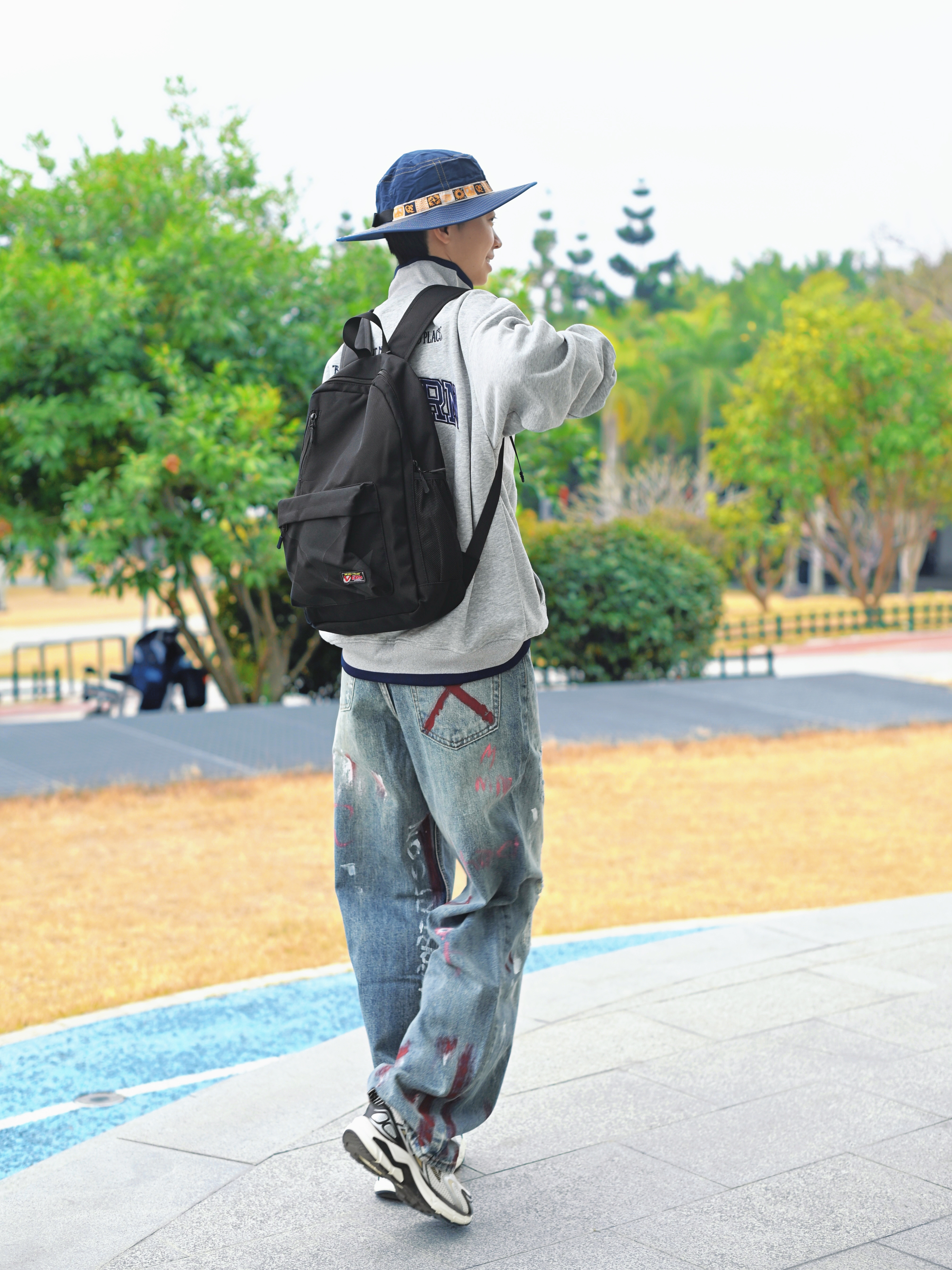 172CM|55KG 👔:m👖:m|👟:39码 春夏季穿搭的松弛感,一个简约黑色双肩包轻松拿捏。 今日份背上俺的维动黑色双肩包咯~ 大容量 装下电脑 平板 实用潮流感拉满~ 选择灰色卫衣和个性涂鸦牛仔裤 注入街头活力 Gogogo 出街咯~