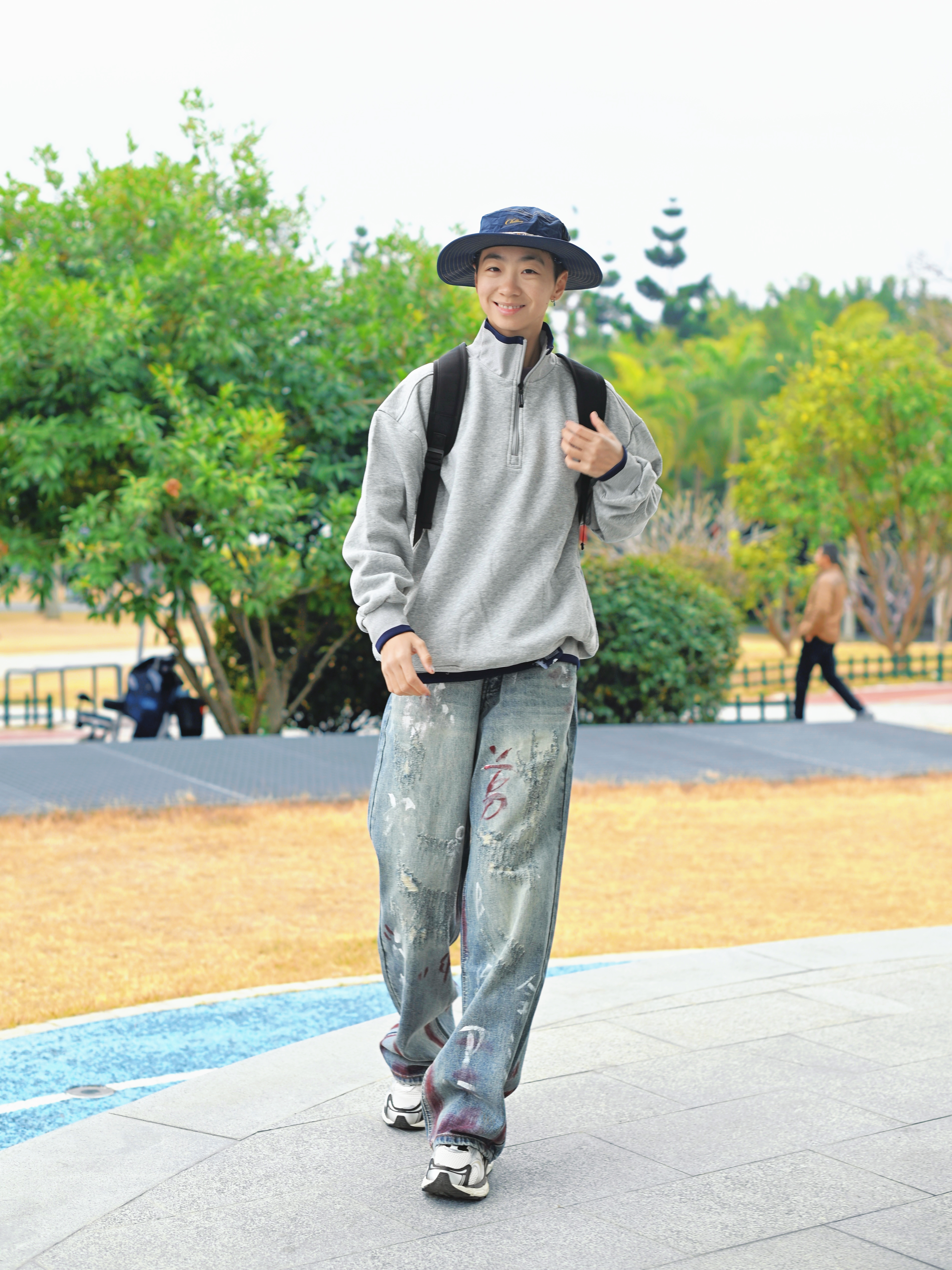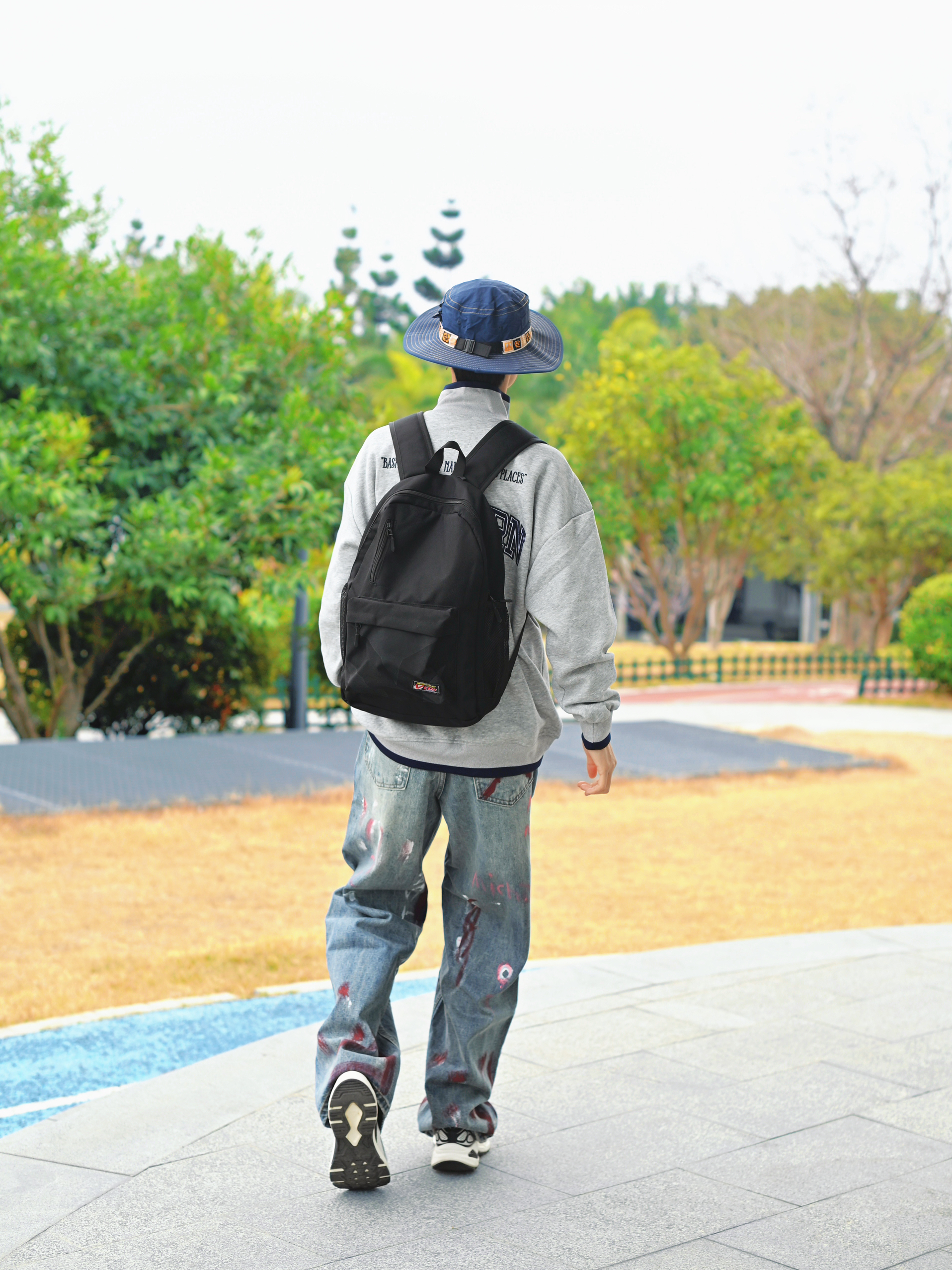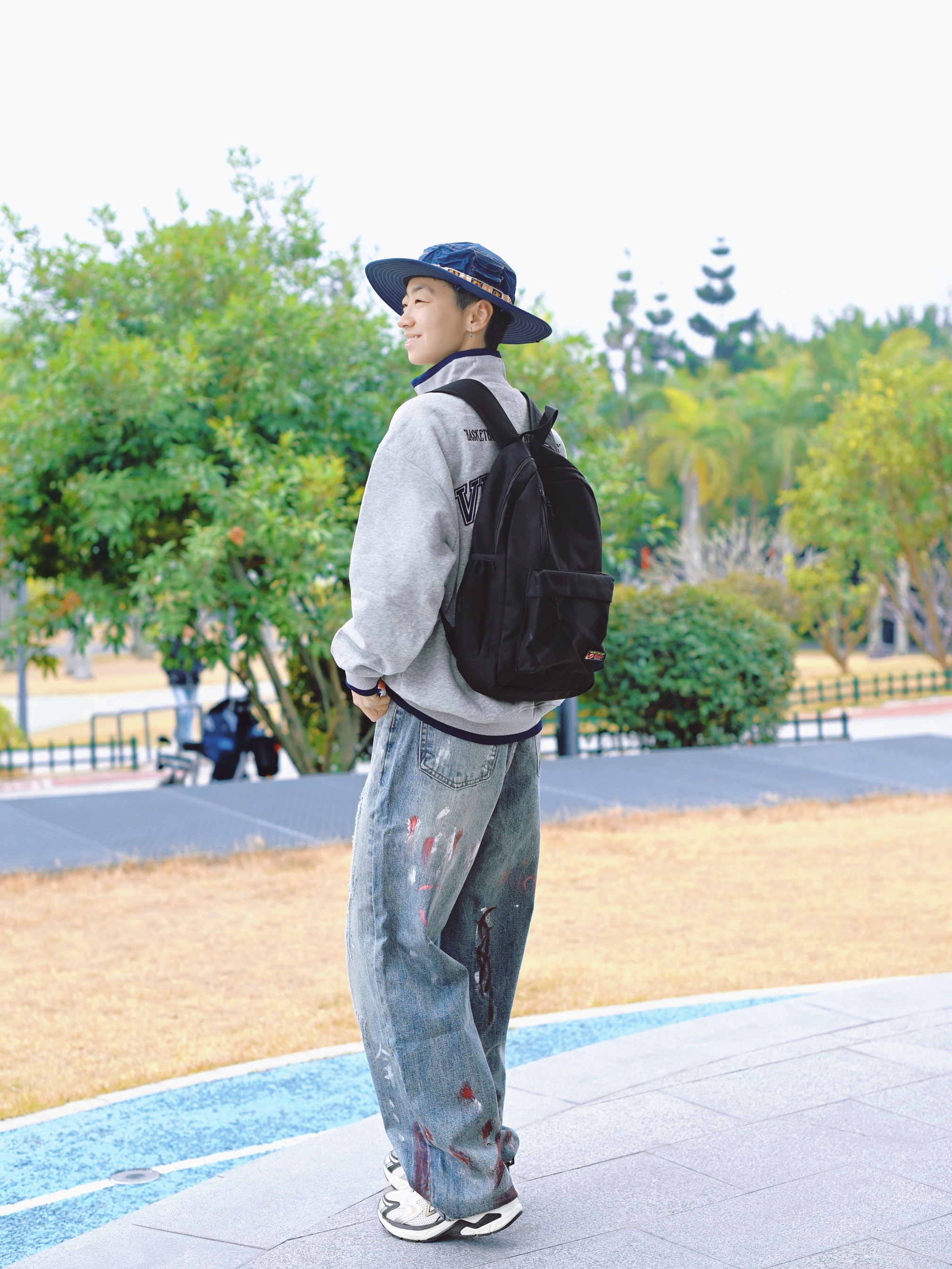 172CM|55KG 👔:m👖:m|👟:39码 春夏季穿搭的松弛感,一个简约黑色双肩包轻松拿捏。 今日份背上俺的维动黑色双肩包咯~ 大容量 装下电脑 平板 实用潮流感拉满~ 选择灰色卫衣和个性涂鸦牛仔裤 注入街头活力 Gogogo 出街咯~