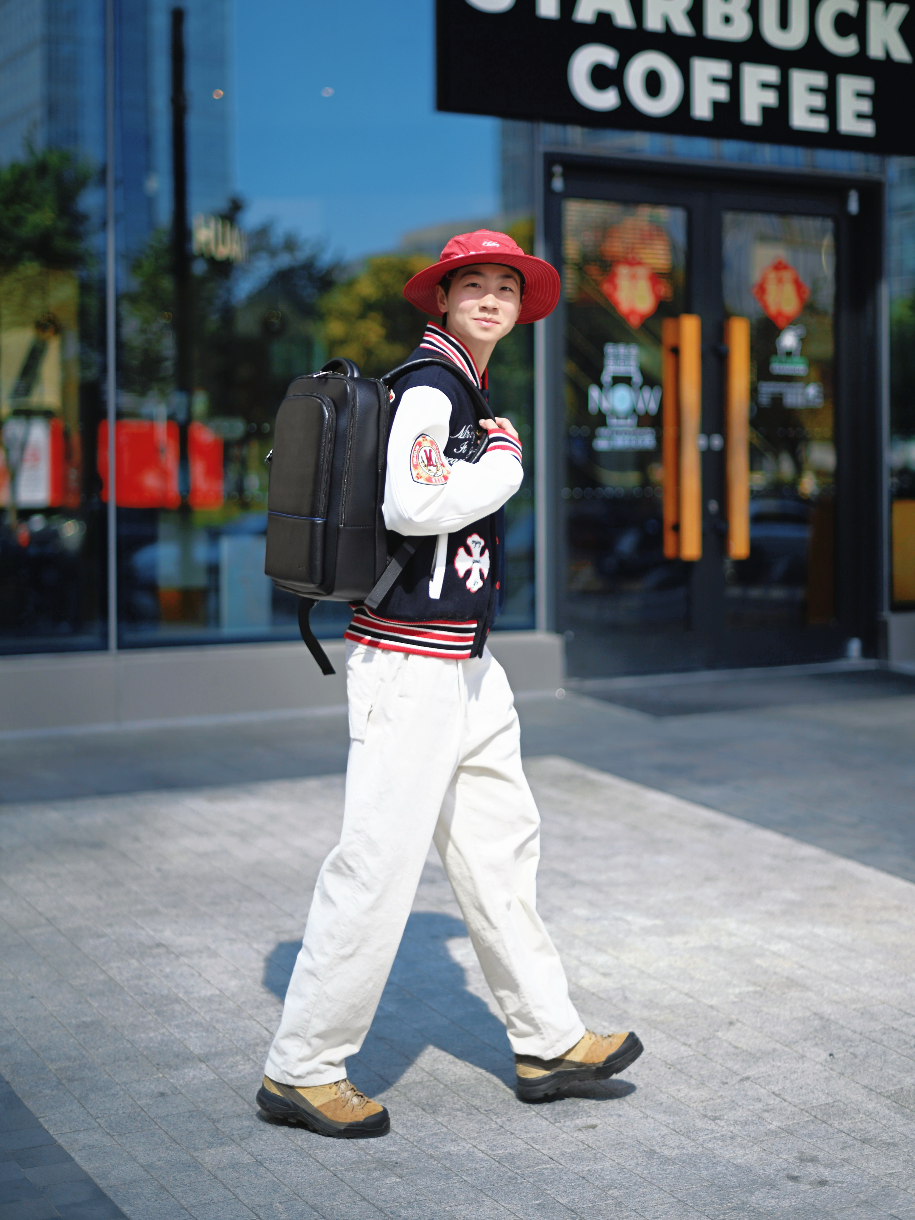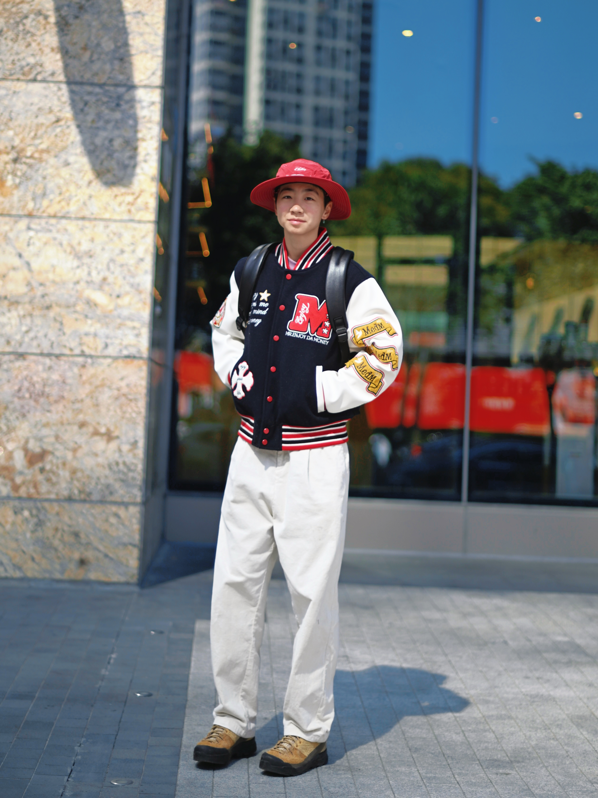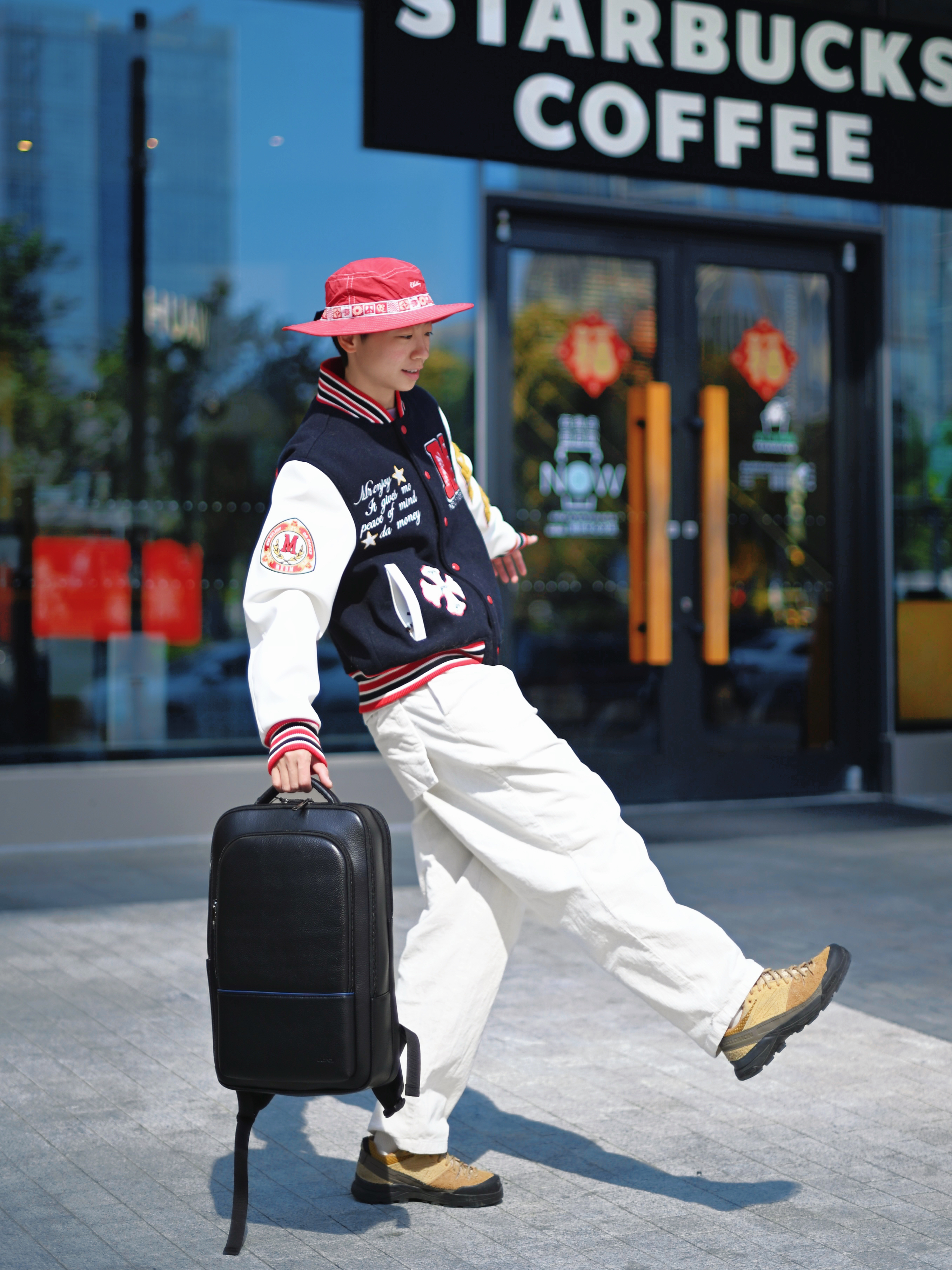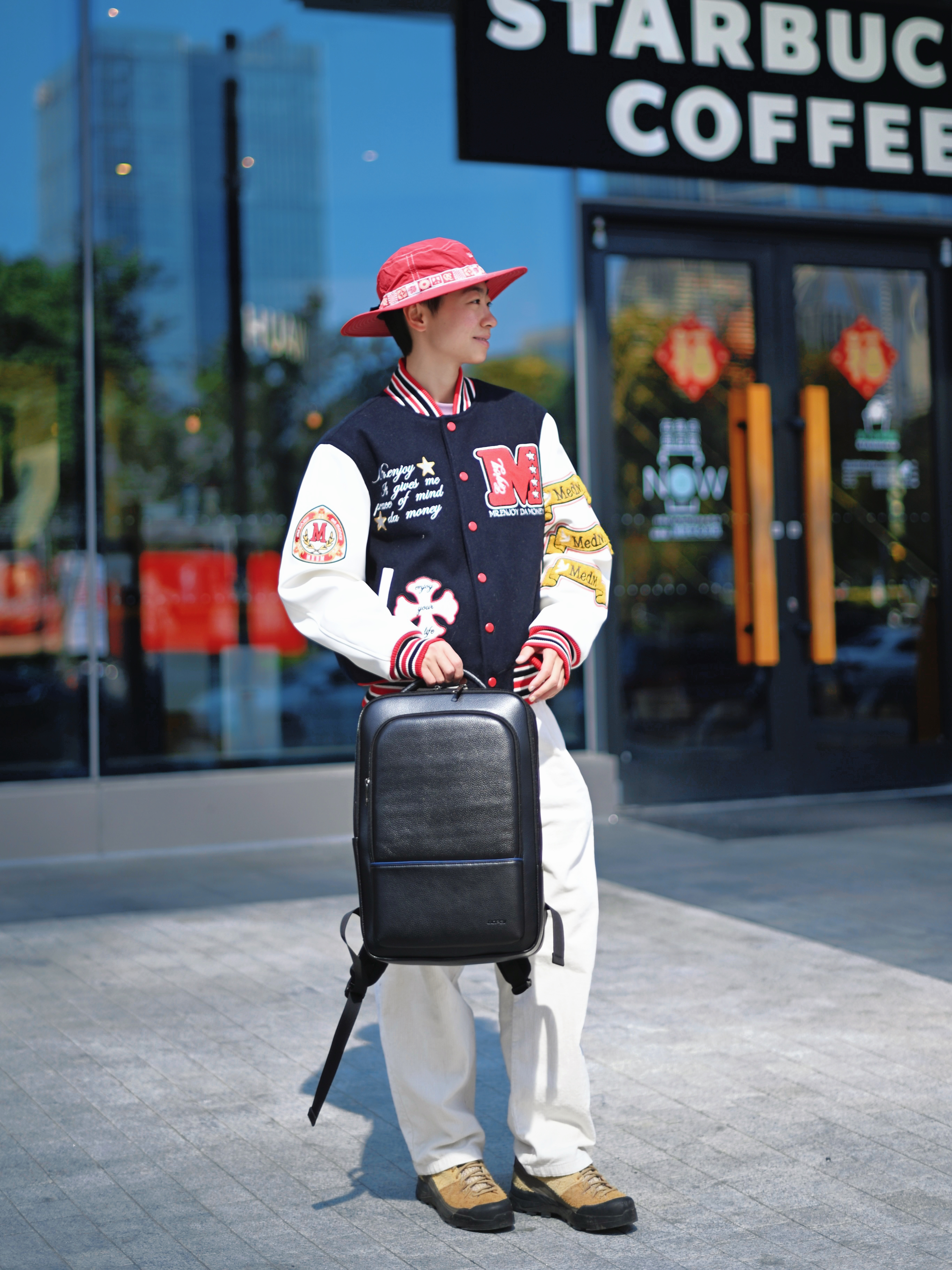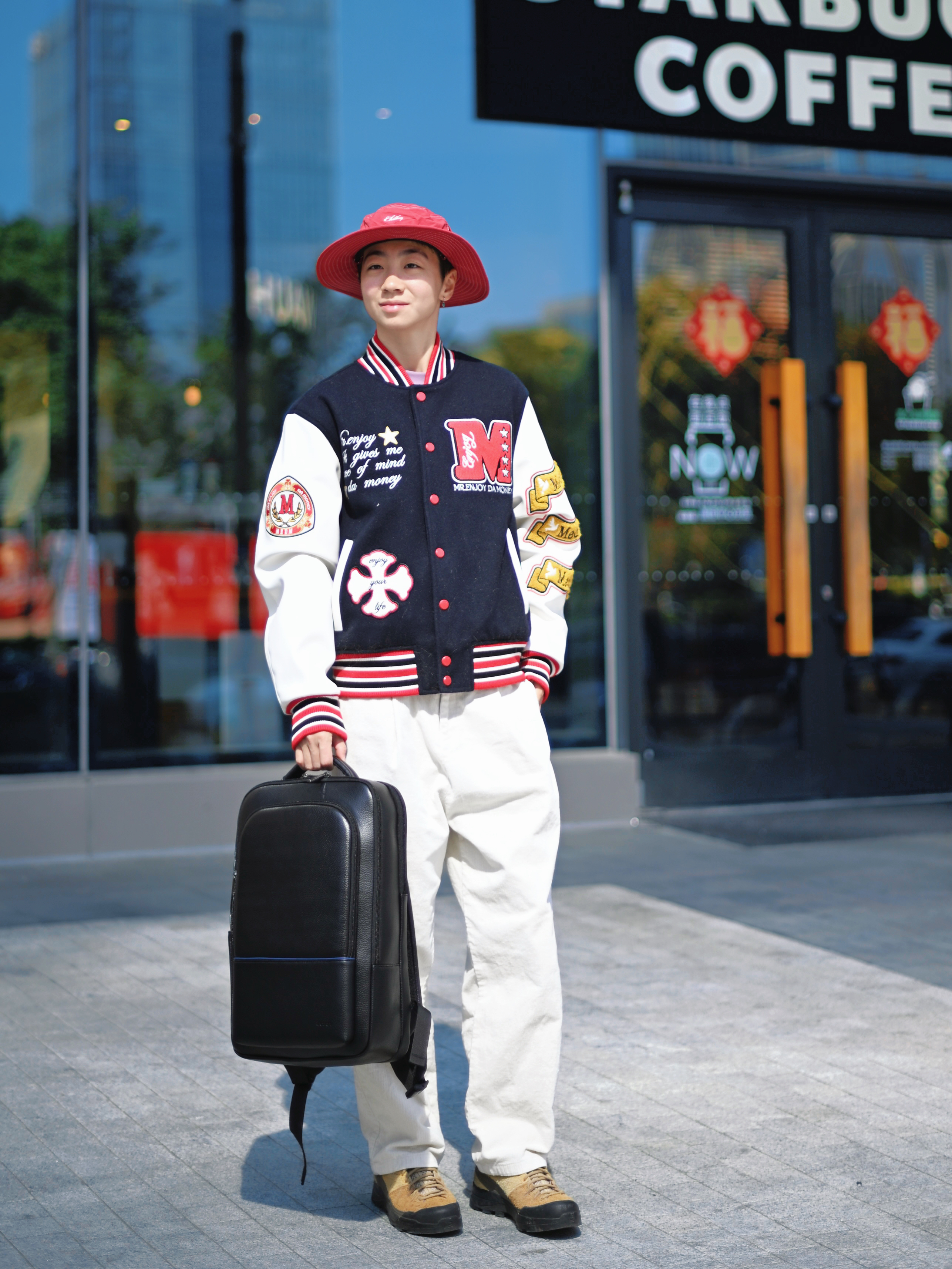 172CM|55KG 👔:m👖:m|👟:39码 新年穿搭新姿态 上身选择拼接棒球服 红蓝白撞色充满活力 搭配白色休闲长裤 营造清爽视觉 脚下棕色工装靴注入复古基调 红色渔夫帽巧妙呼应节日氛围 背上俺的博牌黑色双肩包 大容量内里轻松收纳笔记本电脑和日常用品 冬日出行中不可或缺的时尚搭档耶✌️