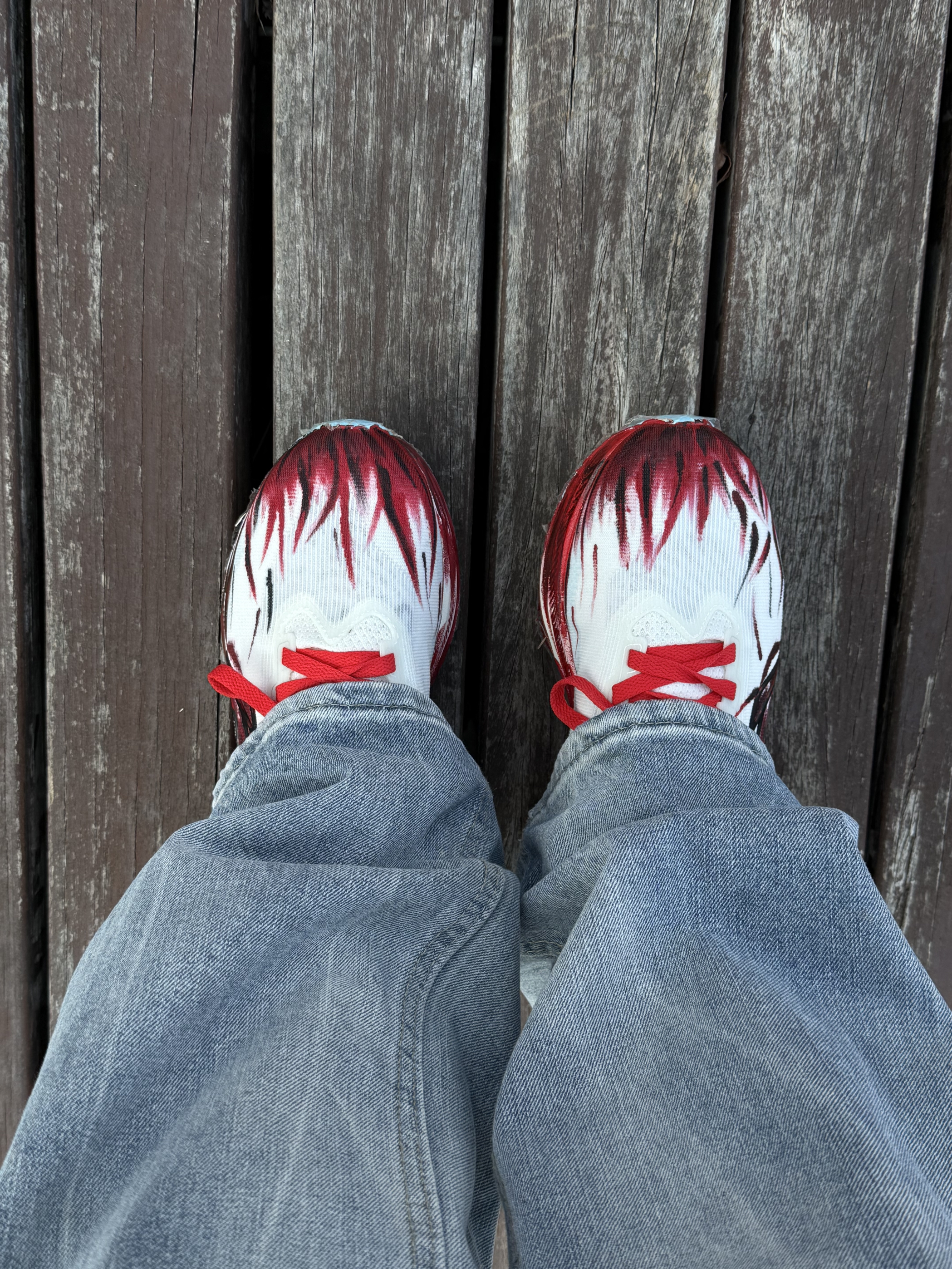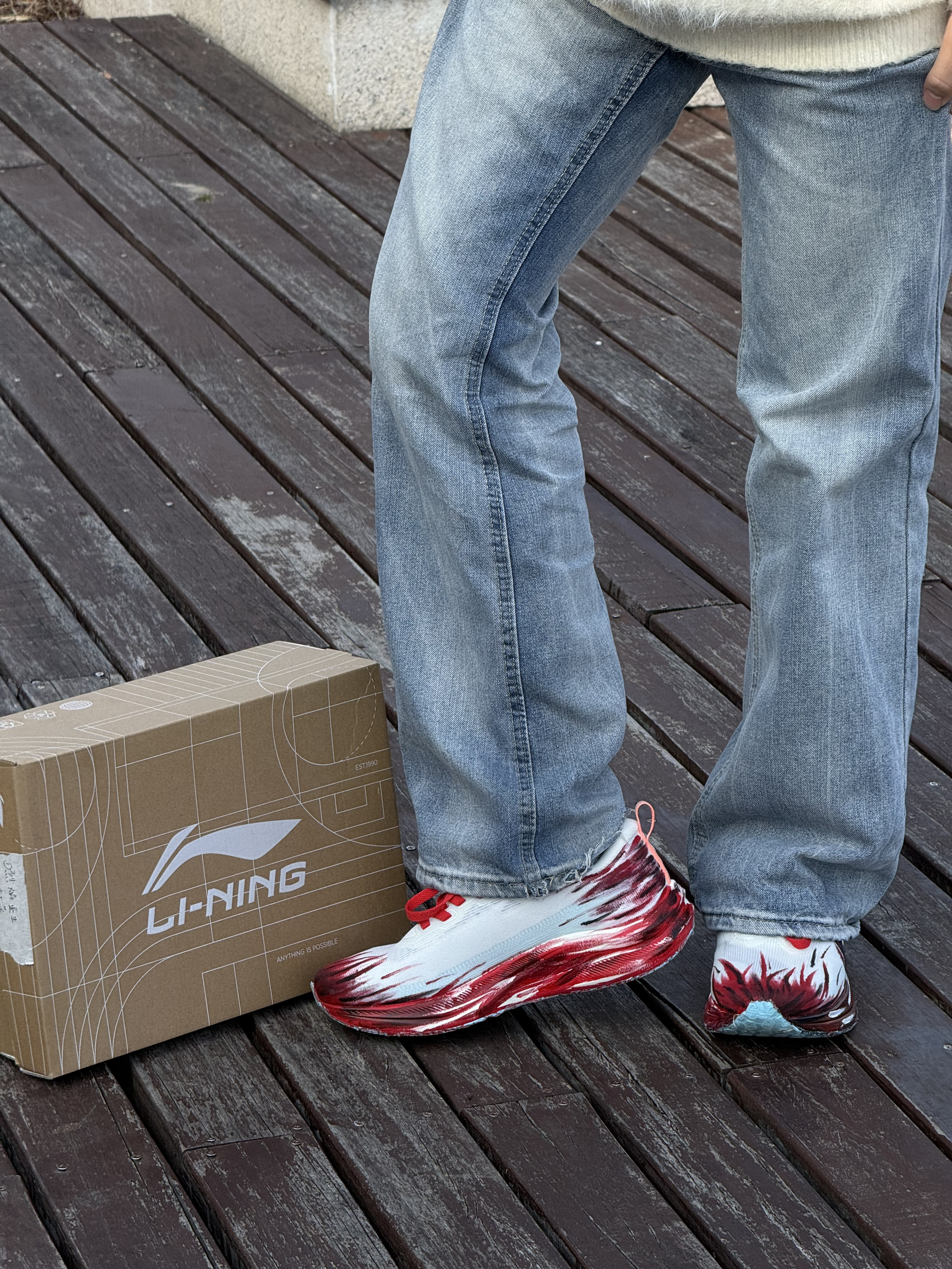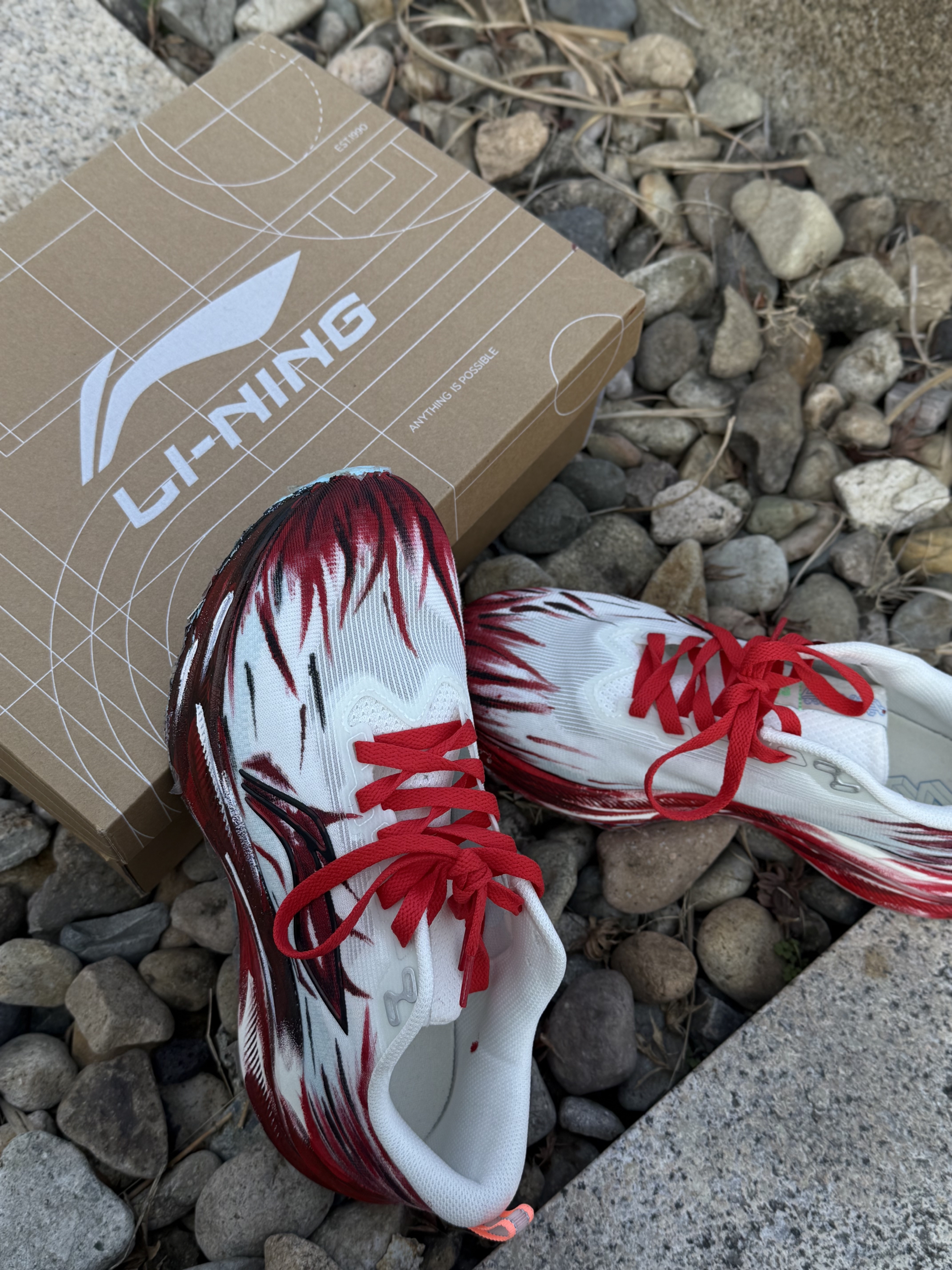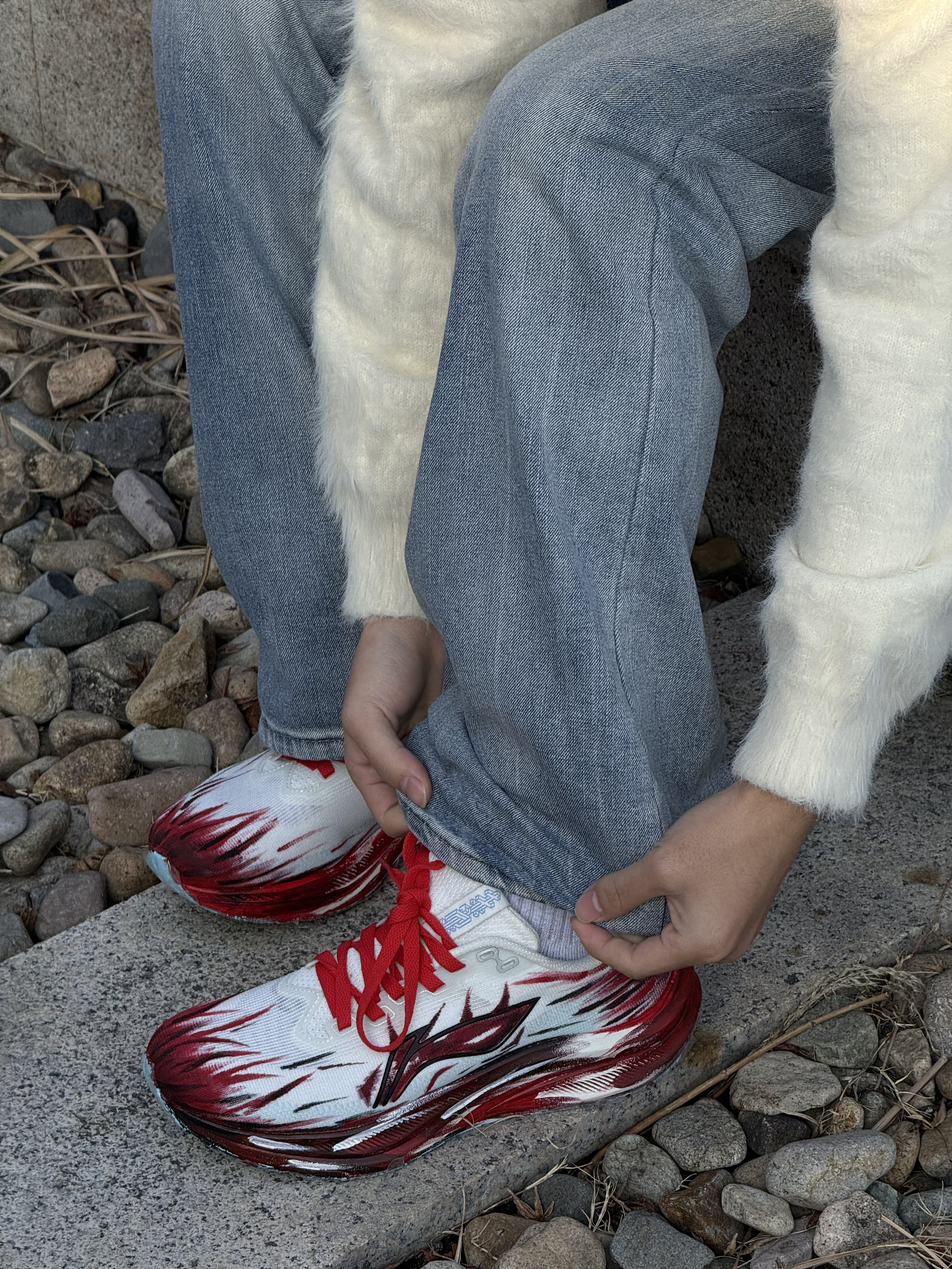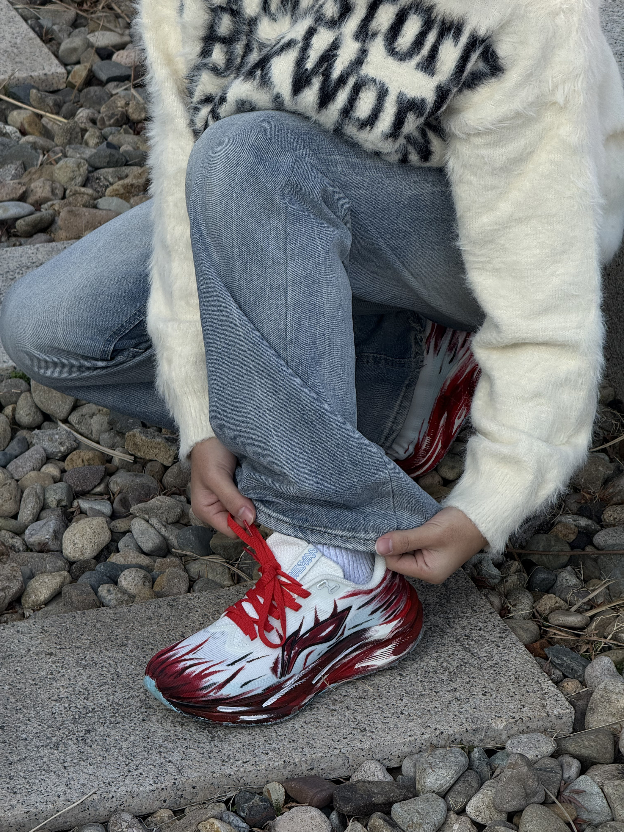 谁懂啊!新年战靴就该长这样! 这双红白火焰纹真的把“红火”二字具象化了,鞋身的泼墨纹路自带速度感,完全戳中马年的飒爽气质。
