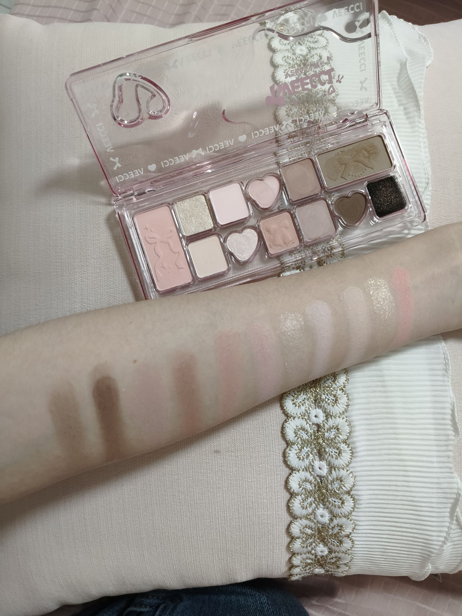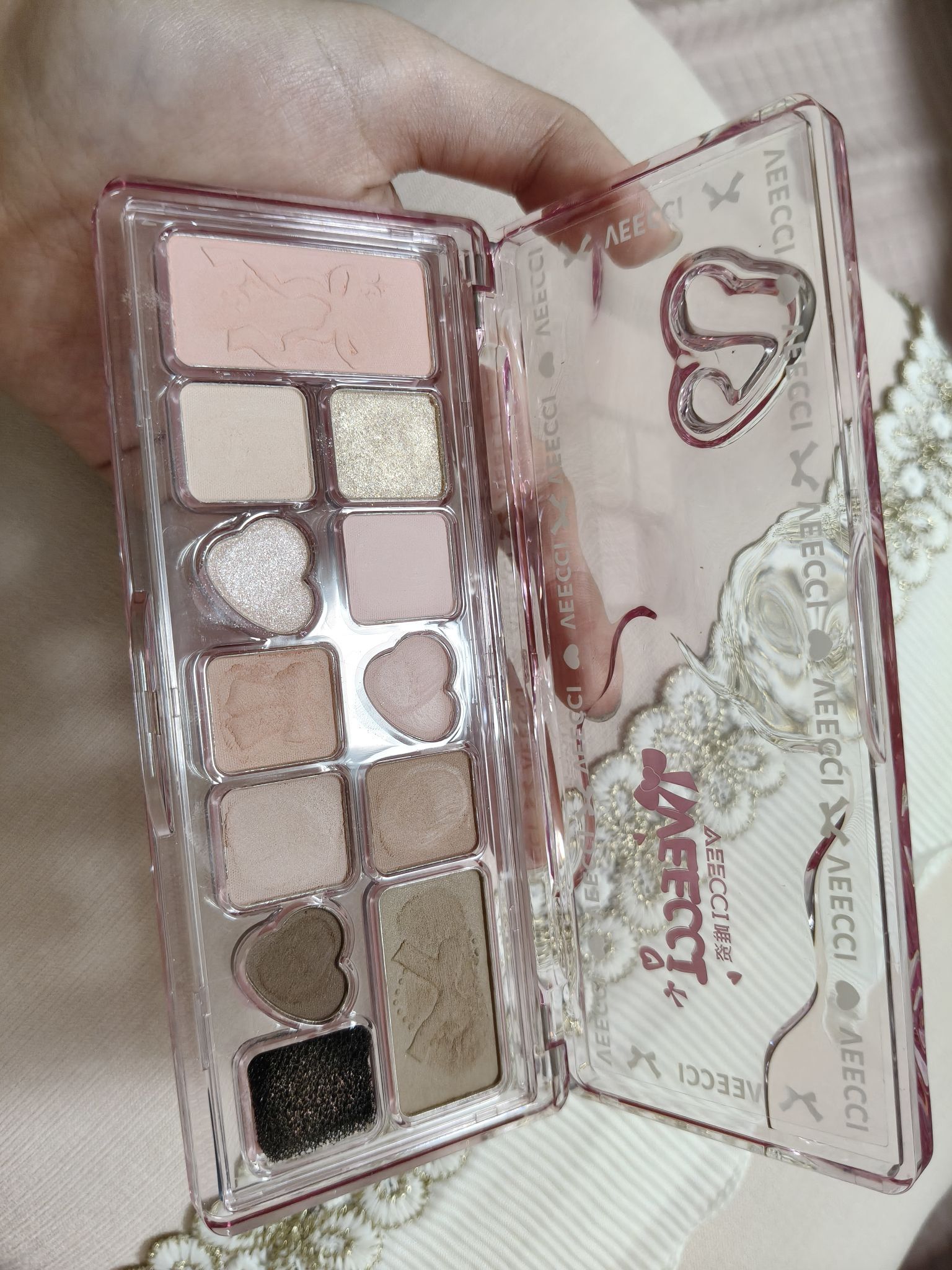 挖到宝了!唯姿02号眼影盘真的太懂少女心了💖 透明粉壳+爱心压纹,颜值直接戳中我!低饱和粉棕配色,温柔又消肿,黄皮姐妹也能放心冲。粉质细腻好晕染,哑光雾面、珠光清透,没有一颗废色。眼影、腮红、高光、修容一盘全搞定,新手也能画出清透感。日常通勤、约会淡妆都适配,性价比拉满,学生党闭眼入不亏!