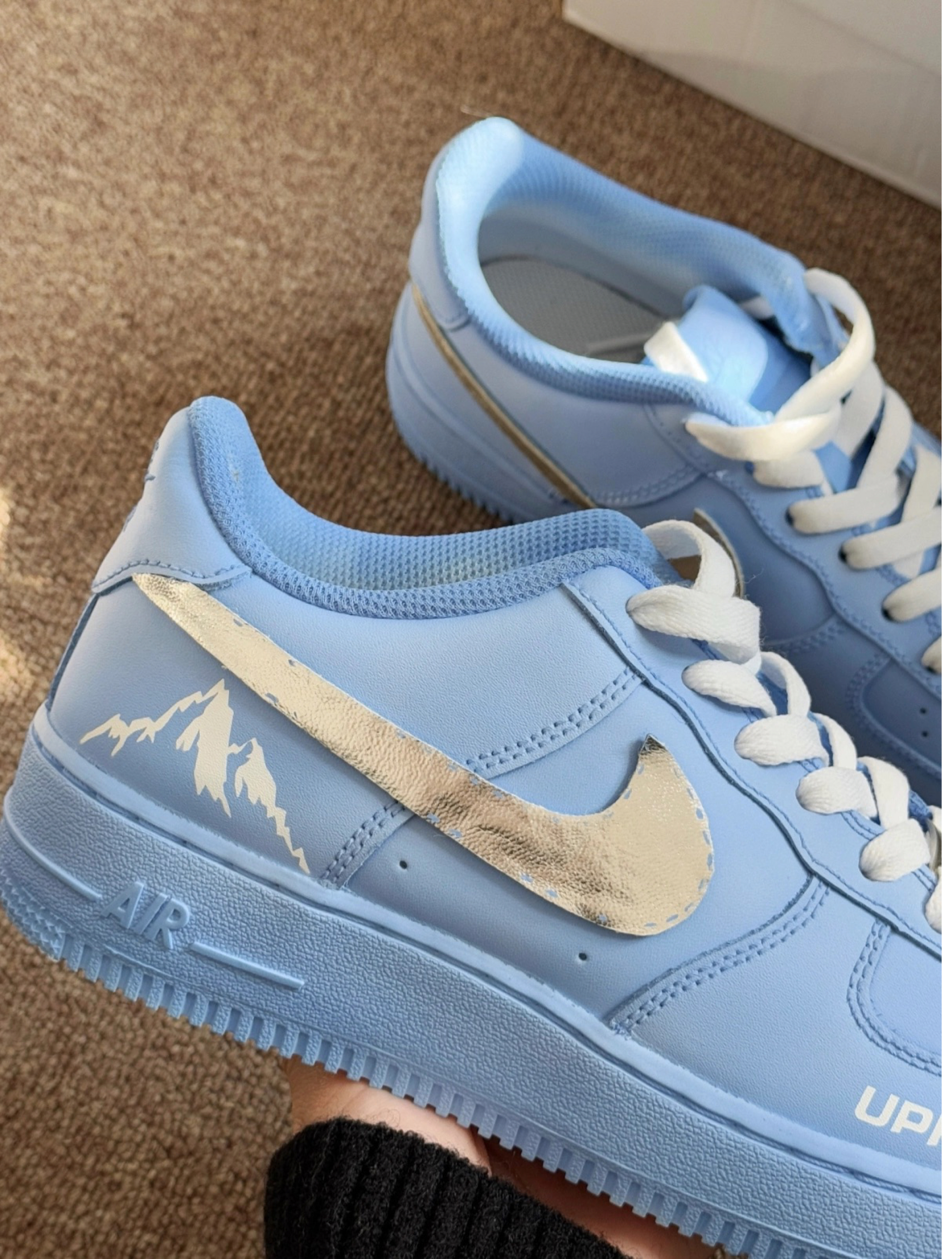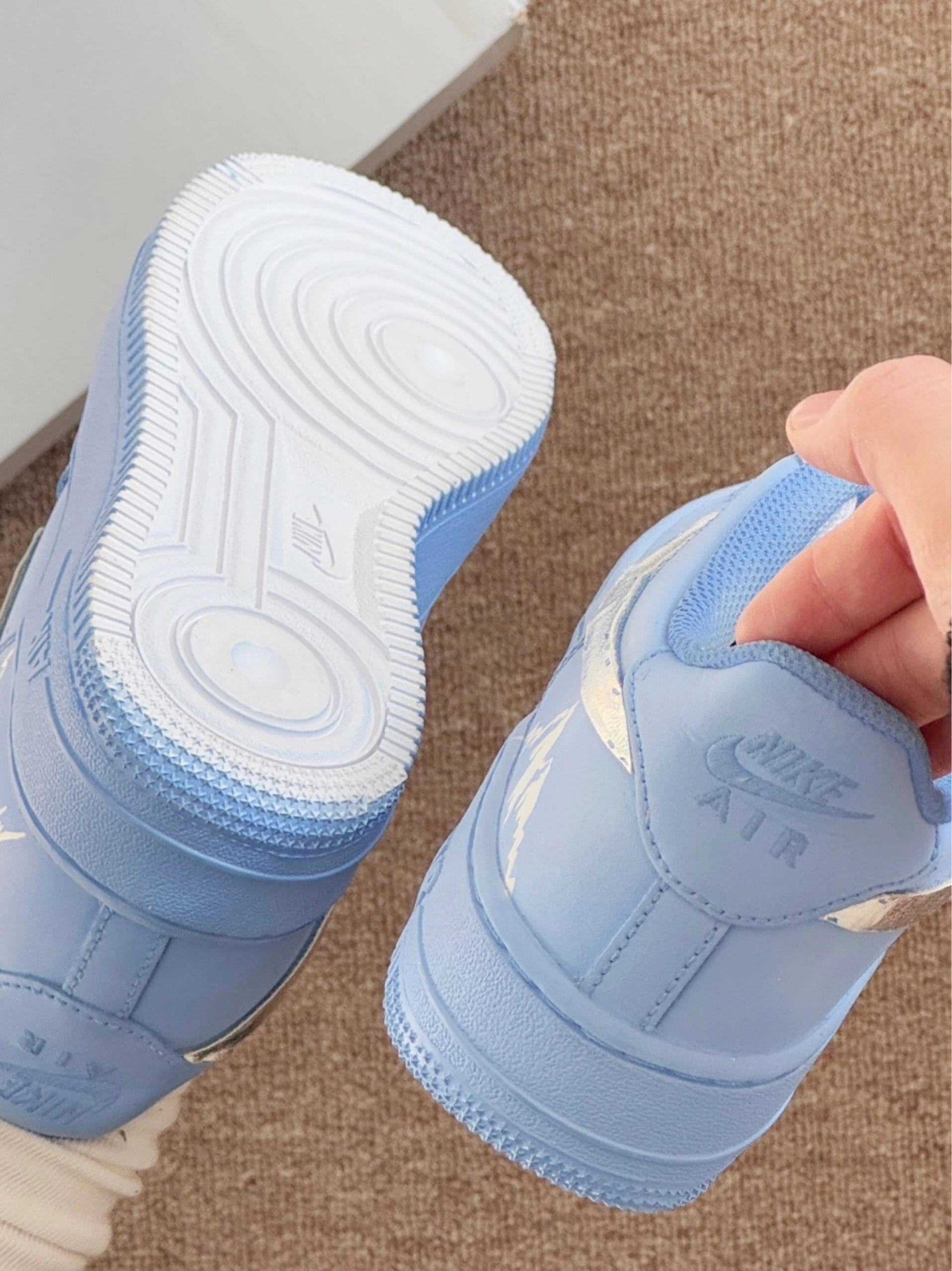 今天穿刚到的冰岛蓝调9AF1上学!早八赶课走了15分钟,配黑色束脚裤+白T,脚感舒服,支撑力刚好,没累脚©。 中午和闺蜜吃饭,她盯着鞋说“这蓝调太戳我! 皮质看着好打理”念~它蓝白配色柔和不炸眼,版型不笨重,搭黑白灰都合适V。 小贴士:尺码正常不偏码,瘦脚宽脚都能穿了;白色部分脏了用~轻擦就行~ 你们上学爱穿什么配色的运动鞋?评论区聊聊呀