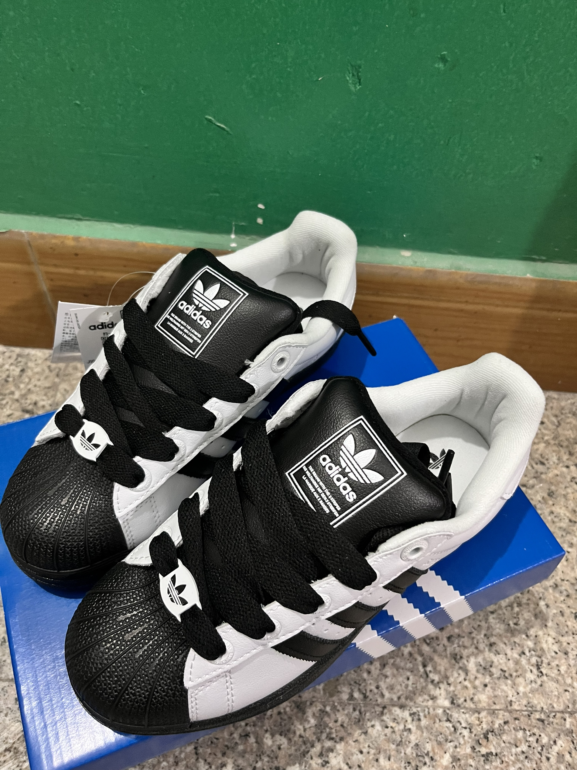 救命!新学期的第一双鞋我直接封神了! 这双Adidas Superstar黑白配色真的是开学季氛围感神器✨ 经典贝壳头+撞色三条杠,复古感直接拉满,不管是搭校服、牛仔裤还是百褶裙都超绝,妥妥的校园C位! 鞋舌三叶草标和鞋带扣细节拉满,皮质软乎乎的,上脚显脚小还巨舒服,暴走一天都不磨脚~ 重点是我私藏的鞋带系法已经放在收藏夹第一个了,手残党也能轻松get同款氛围感,上课路上回头率爆表! 不管是早...