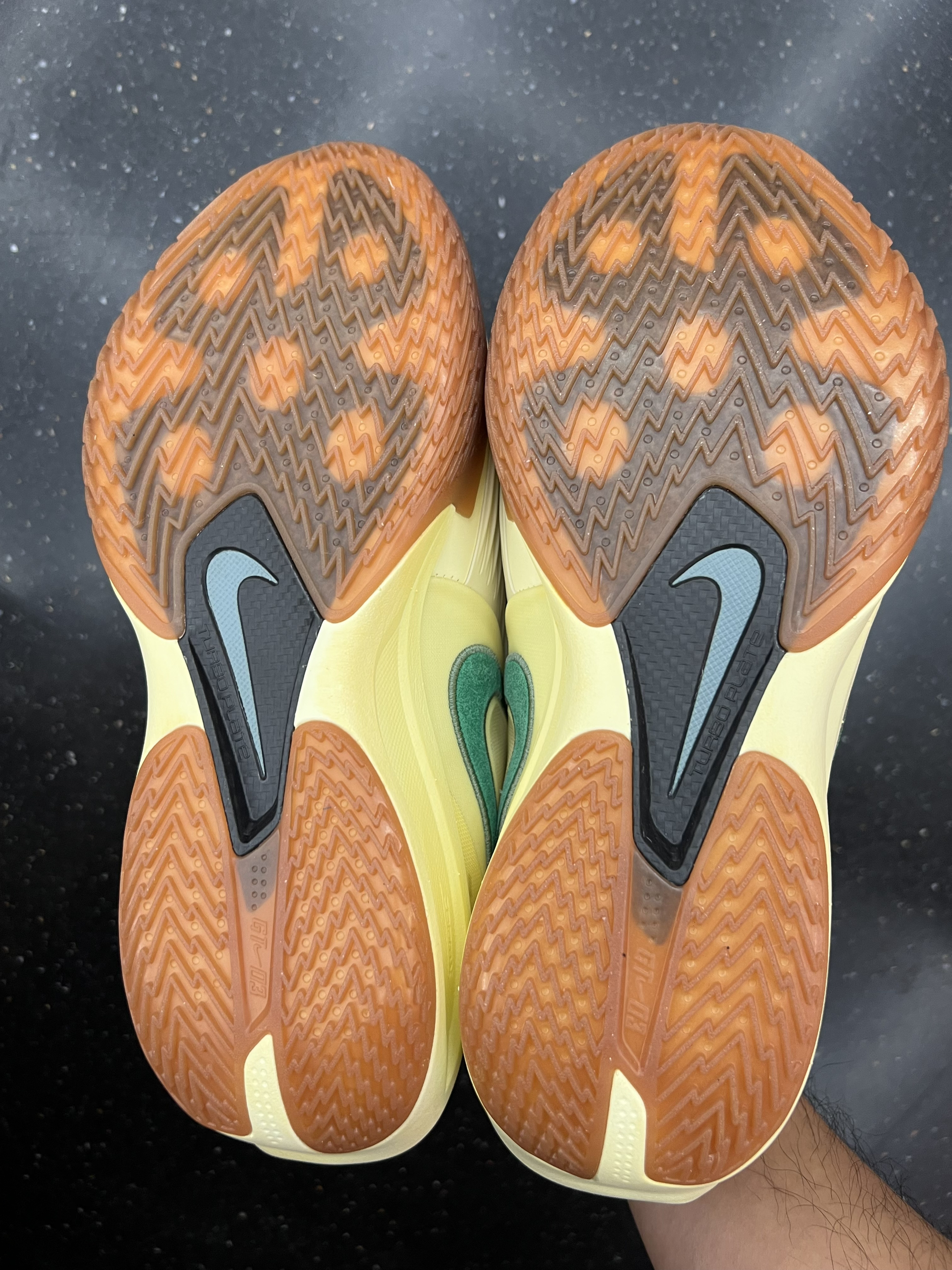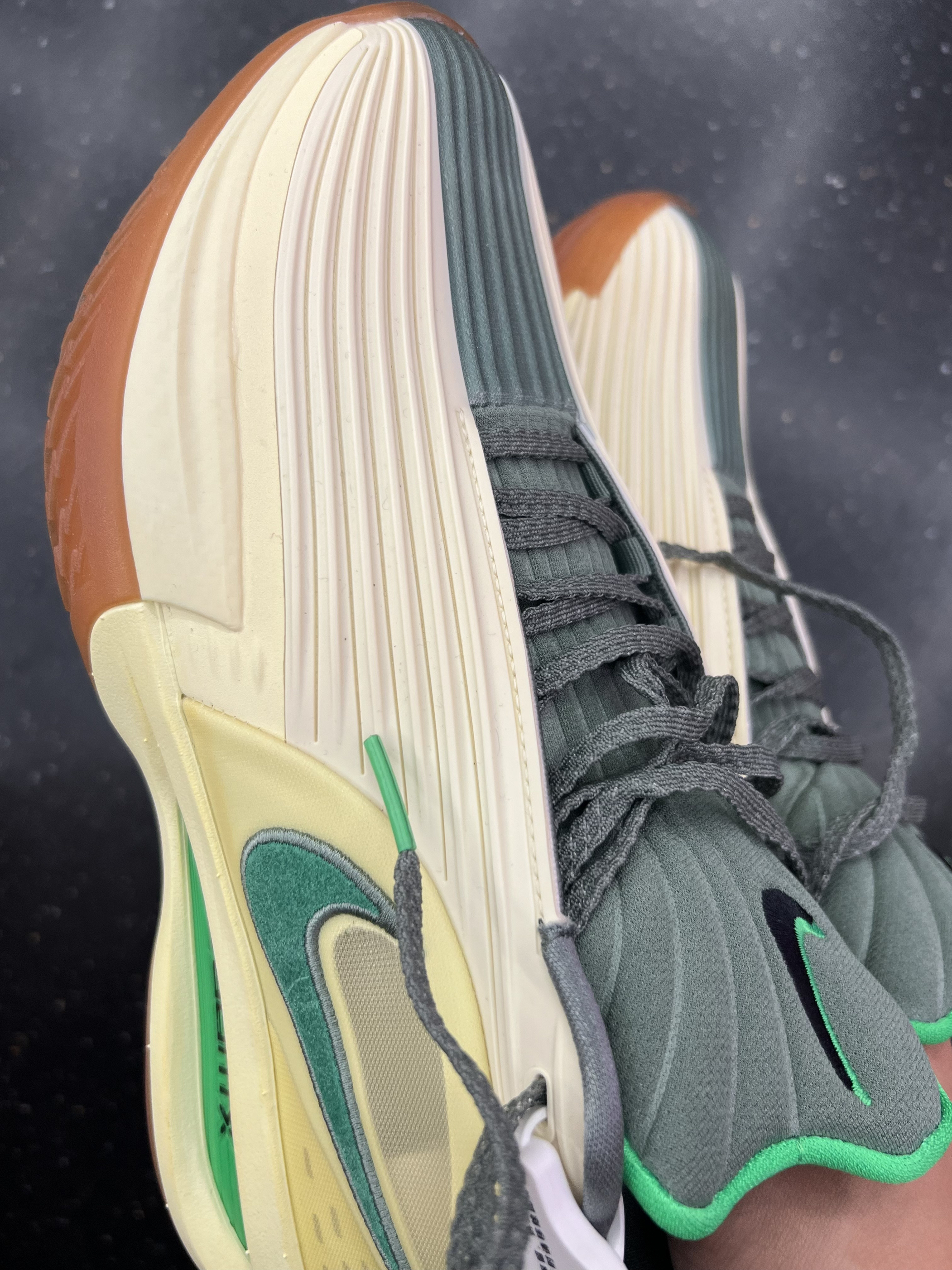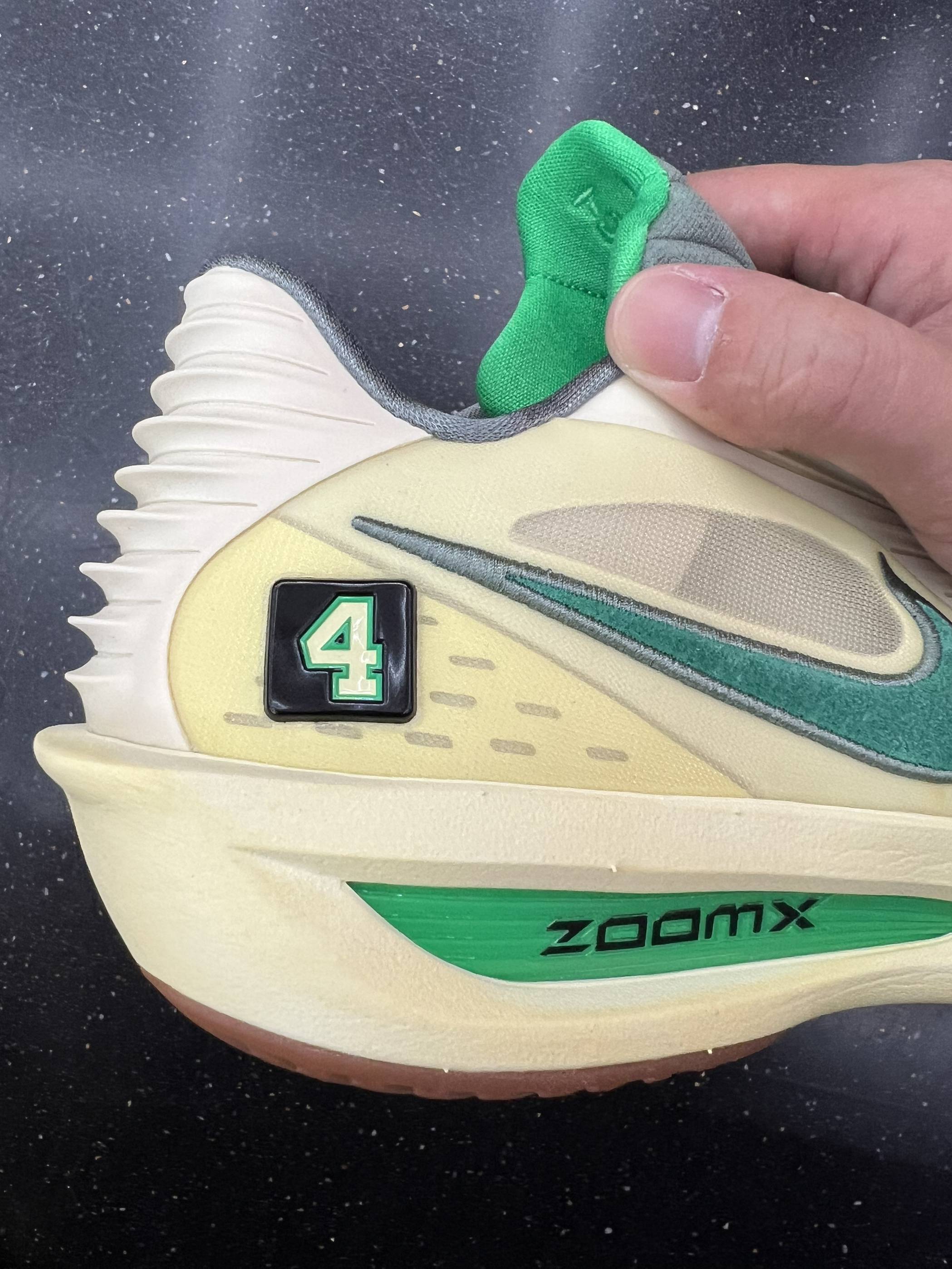 情人节送男生,鞋子是一个好选择,篮球鞋更是男生无法抵抗的,如果再加上一抹绿…… 今天推荐的这双CUT3 turbo霍勒迪配色,应该算的上是颜值与实力兼并 整体鞋子流线型设计,视觉上速度感强,鞋舌设计增强包裹性,有点类似AJ35的设计语言 ZoomX双层中底确实弹,落地缓冲明显,算得上是耐克顶级的缓震配置,能量回弹和响应速度兼备;碳板比普通版TPU提供更强的抗扭转向支撑,就是后屁股圆润了点,脚踝力量...