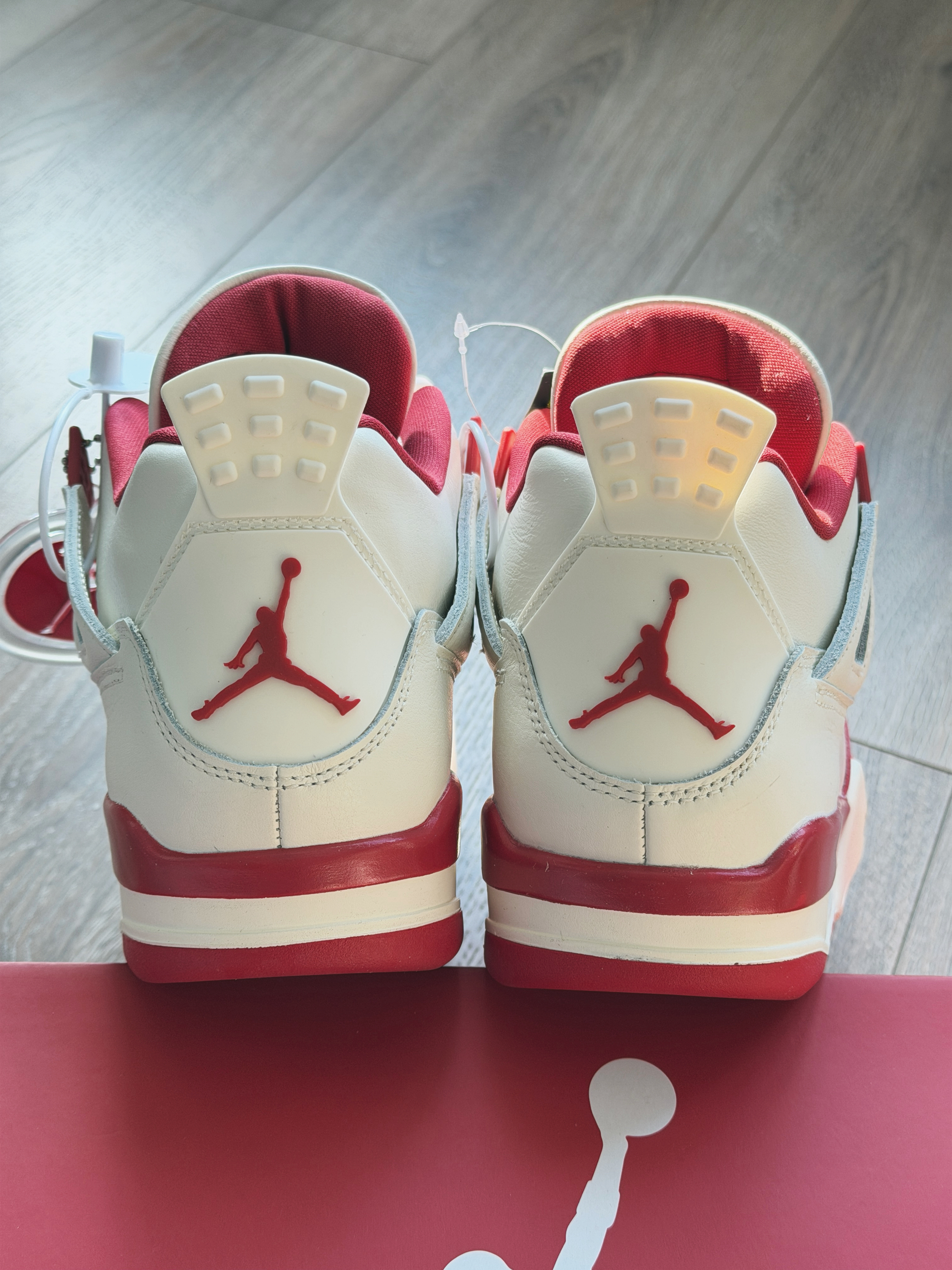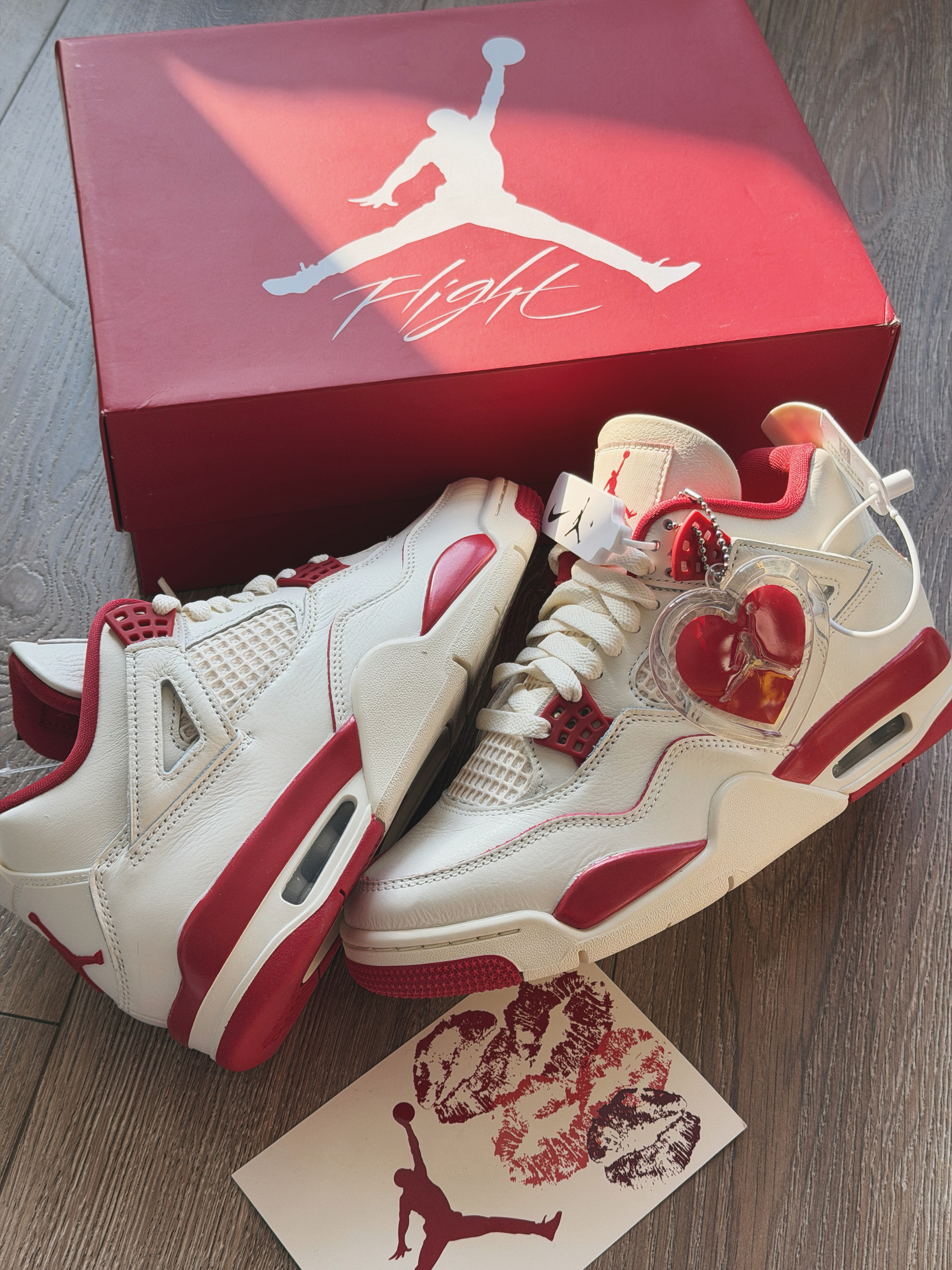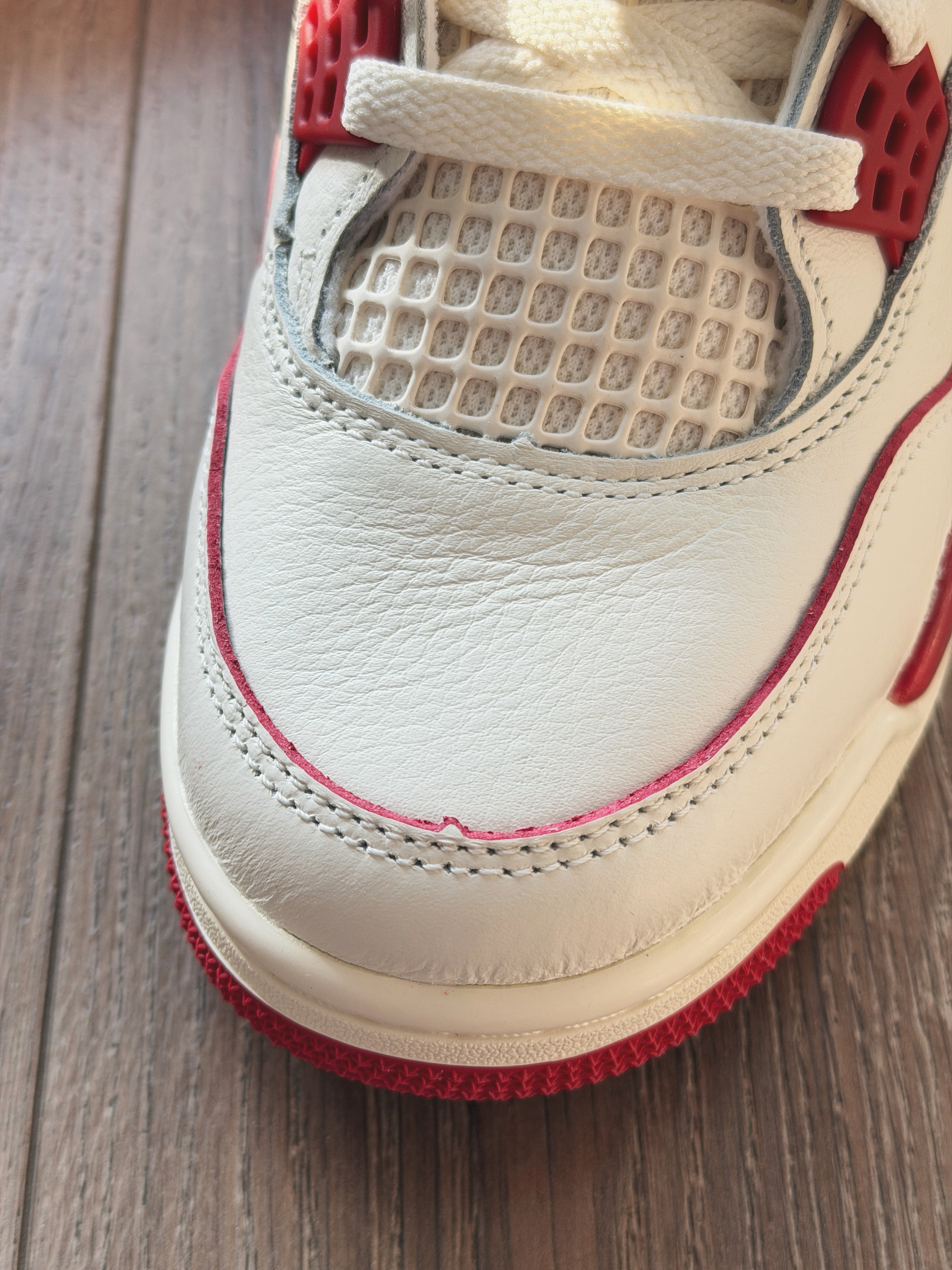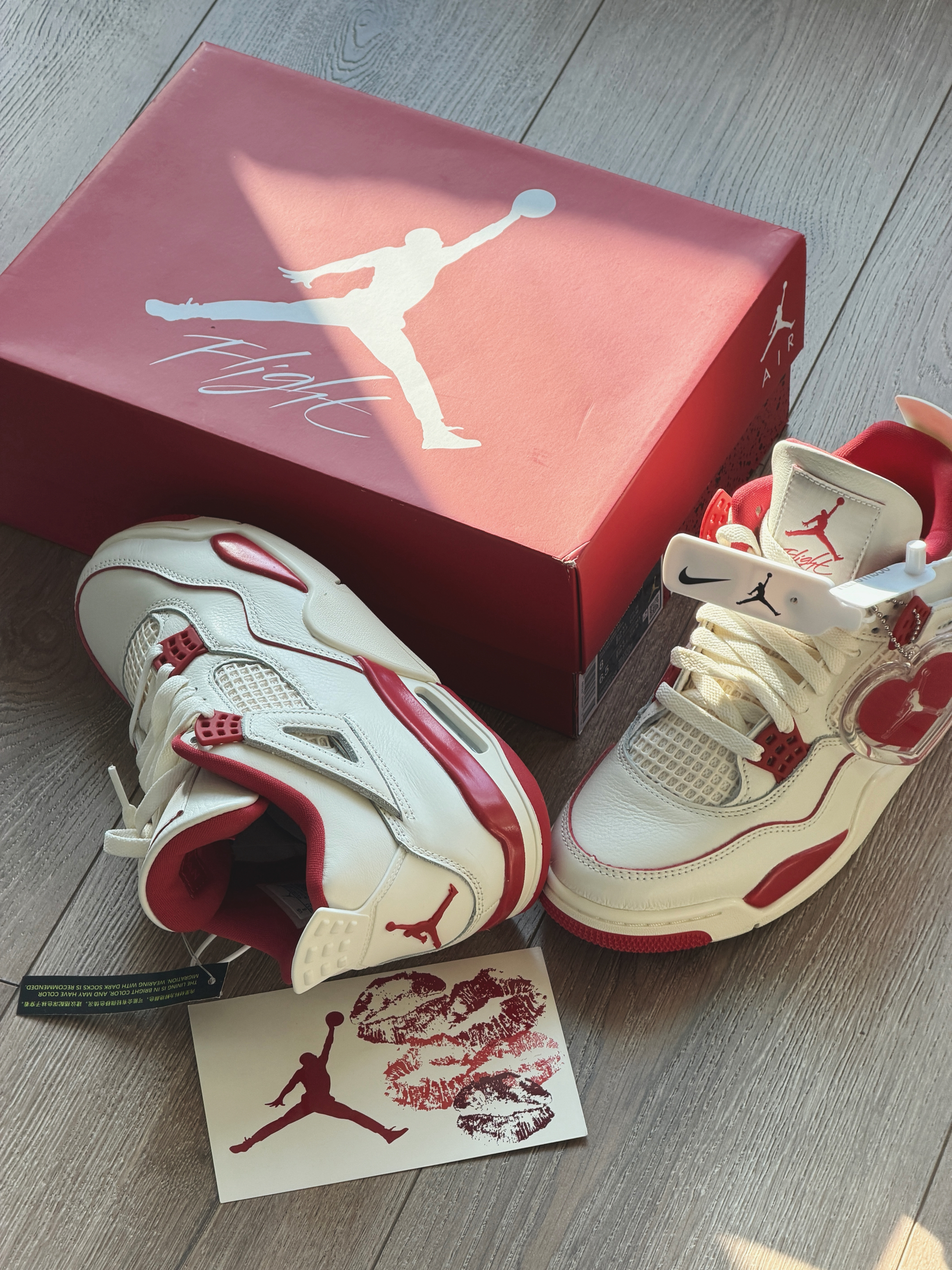 💌超好看节日配色方案以及重新设计的爱心吊牌!贴心的随鞋赠送节日贺卡,今年这双节日限定AJ4真的对味了! 💌全鞋身米白荔纹皮,皮质非常不错!国内生产做工基本没什么瑕疵,脚感蛮舒服。情人节收到这双鞋真的会心动💗