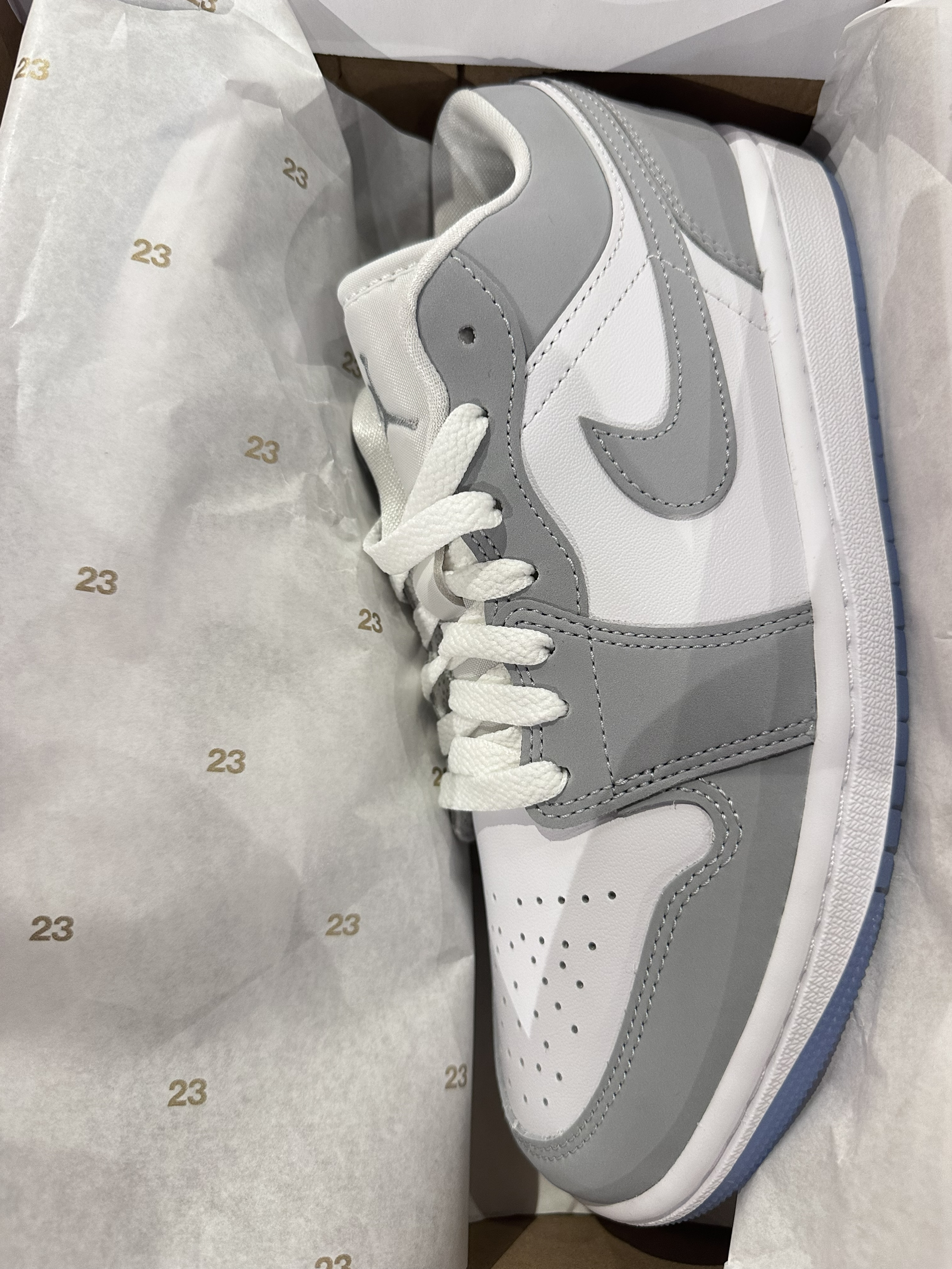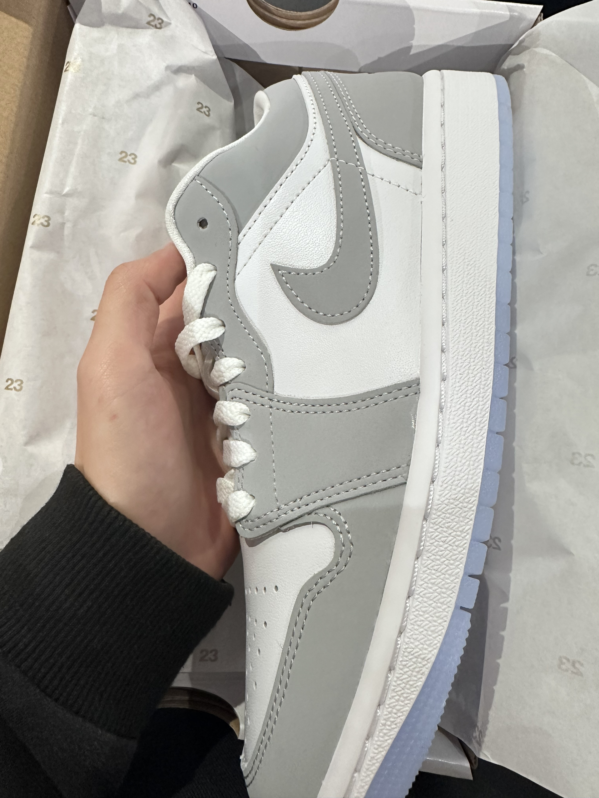 终于入手了这双心心念念的AJ1银灰!低帮的版型对小个子很友好,浅灰色调高级又耐看。鞋身的细节做得很到位,鞋垫也很软,走一天都不累。属于越看越喜欢的宝藏鞋子~