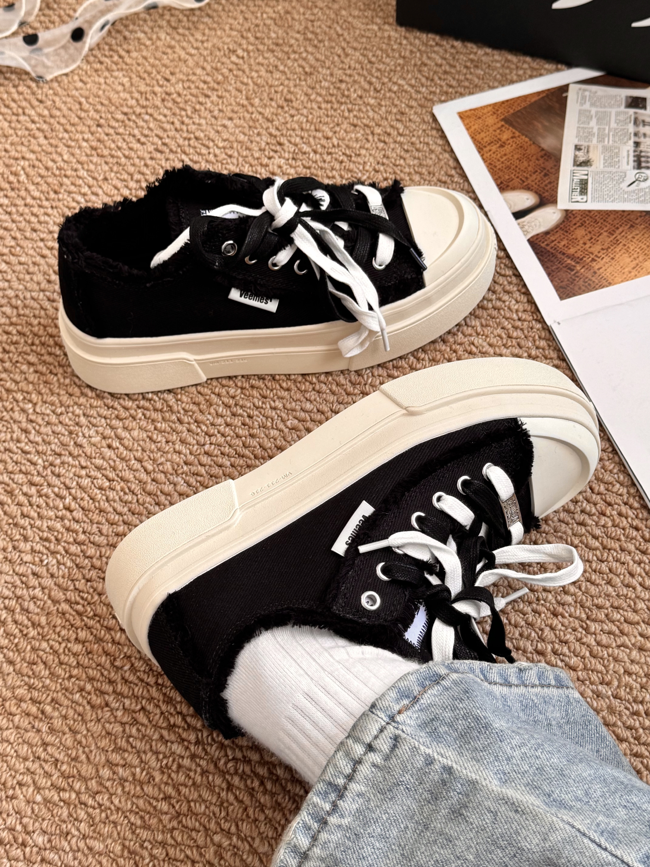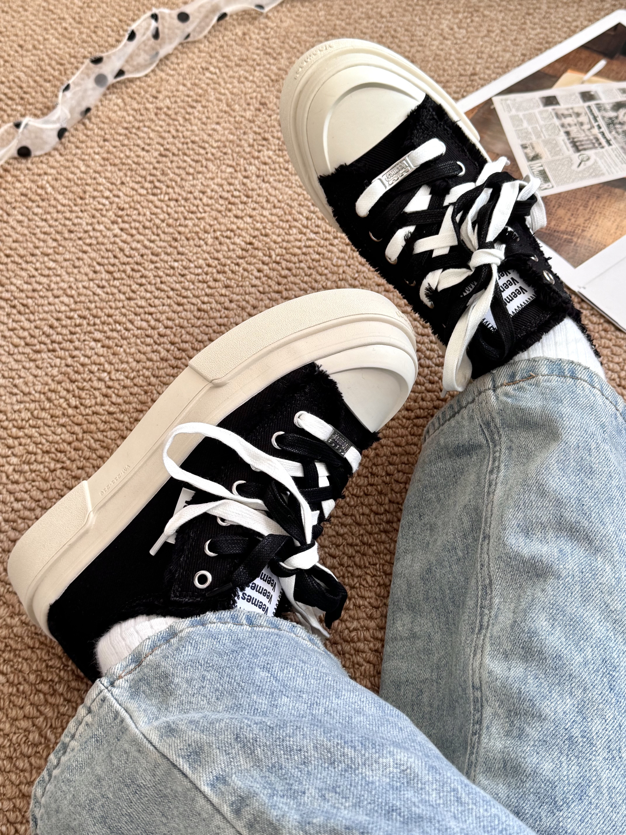 本篇笔记关联了【王一博同款】微迷 复古 百搭平底 增高 毛边 厚底 帆布鞋 VM-C3517 黑色等商品,为用户提供真实的使用体验和购买参考。