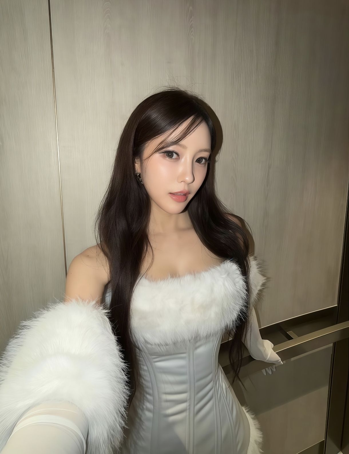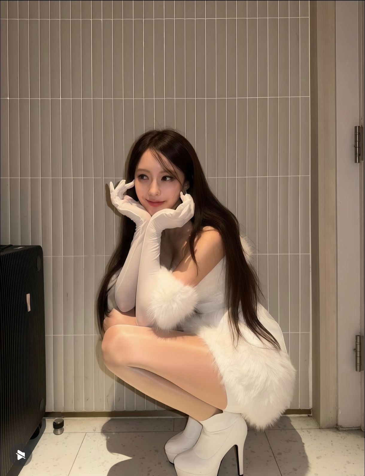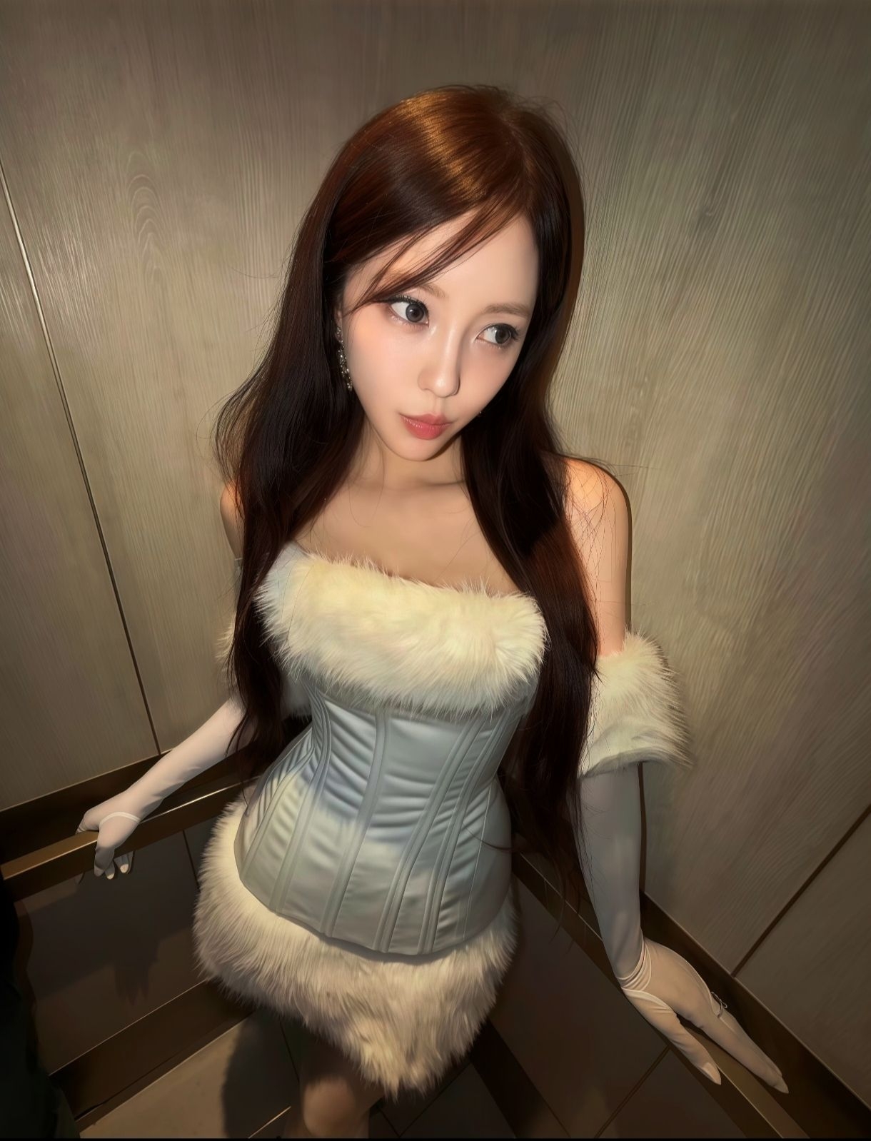 谁懂啊家人们!刷到孝敏这套造型我直接原地封神! 裹着毛绒抹胸裙,白到发光的缎面+软fufu的毛边,像把冬日的雪揉进了衣服里。长手套一戴,手都变得矜贵又撩人,连指尖都在散发“我很贵但我很温柔”的信号。 最绝的是那种“又纯又欲”的反差感——明明是露肤度很高的造型,却因为毛绒和白调,显得像不食人间烟火的白月光。蹲下来托脸的瞬间,又甜得让人想把全世界的糖都塞给她。 这种“把性感穿得高级,把纯欲...