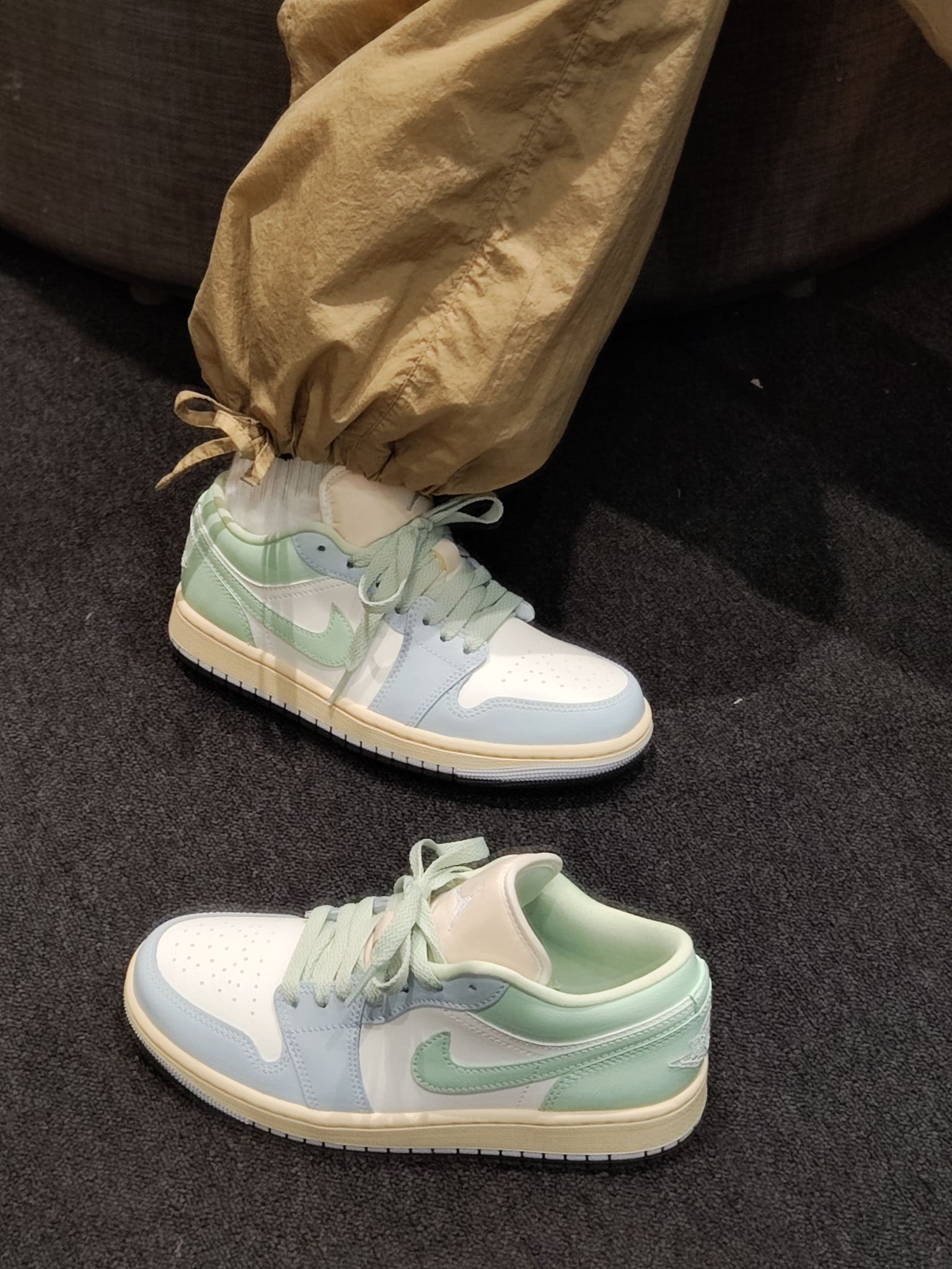 海盐蓝+薄荷绿的马卡龙撞色,自带奶油滤镜感 低帮版型巨显腿细,黄皮上脚直接白两个度! 软乎乎的配色像把春天穿在脚上 搭配卡其色束脚裤慵懒又随性,日常出街不费力 不管是搭牛仔裤还是百褶裙,都能解锁N种穿法