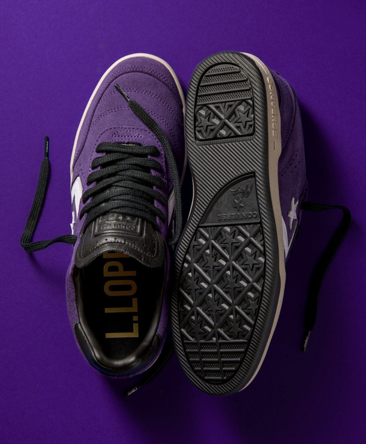 1. 全粒面翻毛,自带高光。 经典星箭标划破紫色夜幕,鞋舌处的CONS压印与鞋垫烫金“L.LOPEZ”签名,每一处细节都是对滑板传奇的致敬。不仅是脚下的潮流利器,更是经得起镜头考验的工艺杰作。 2. 紫调当道,质感为王。 摒弃浮夸设计,用高级翻毛皮诠释街头美学。耐磨橡胶包边应对日常磨损,经典杯底保留极致板感。始于颜值,忠于性能,这双紫武士,上脚即焦点。