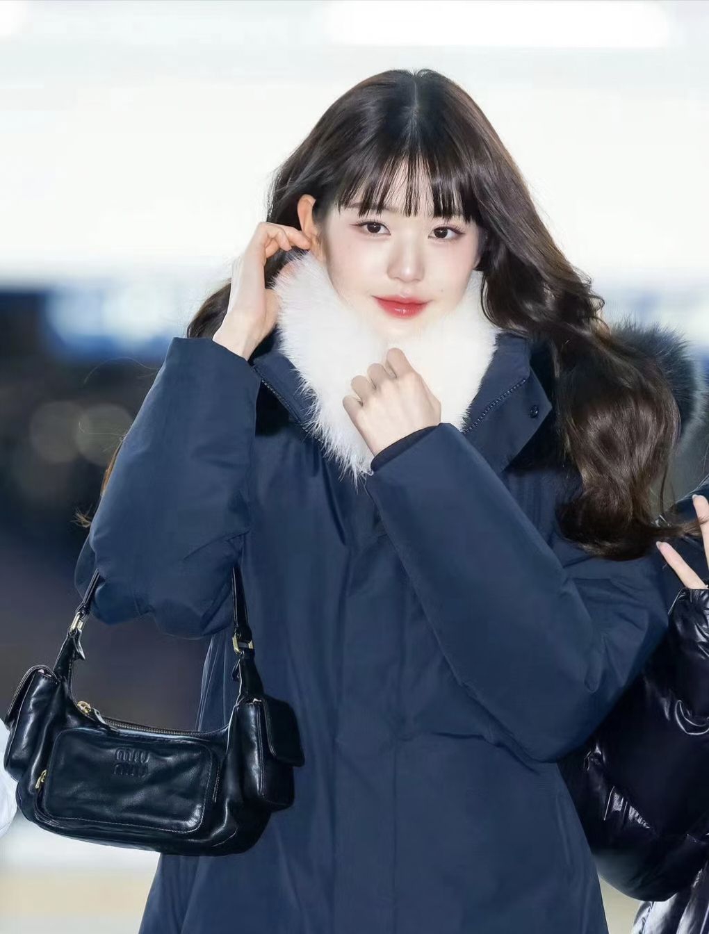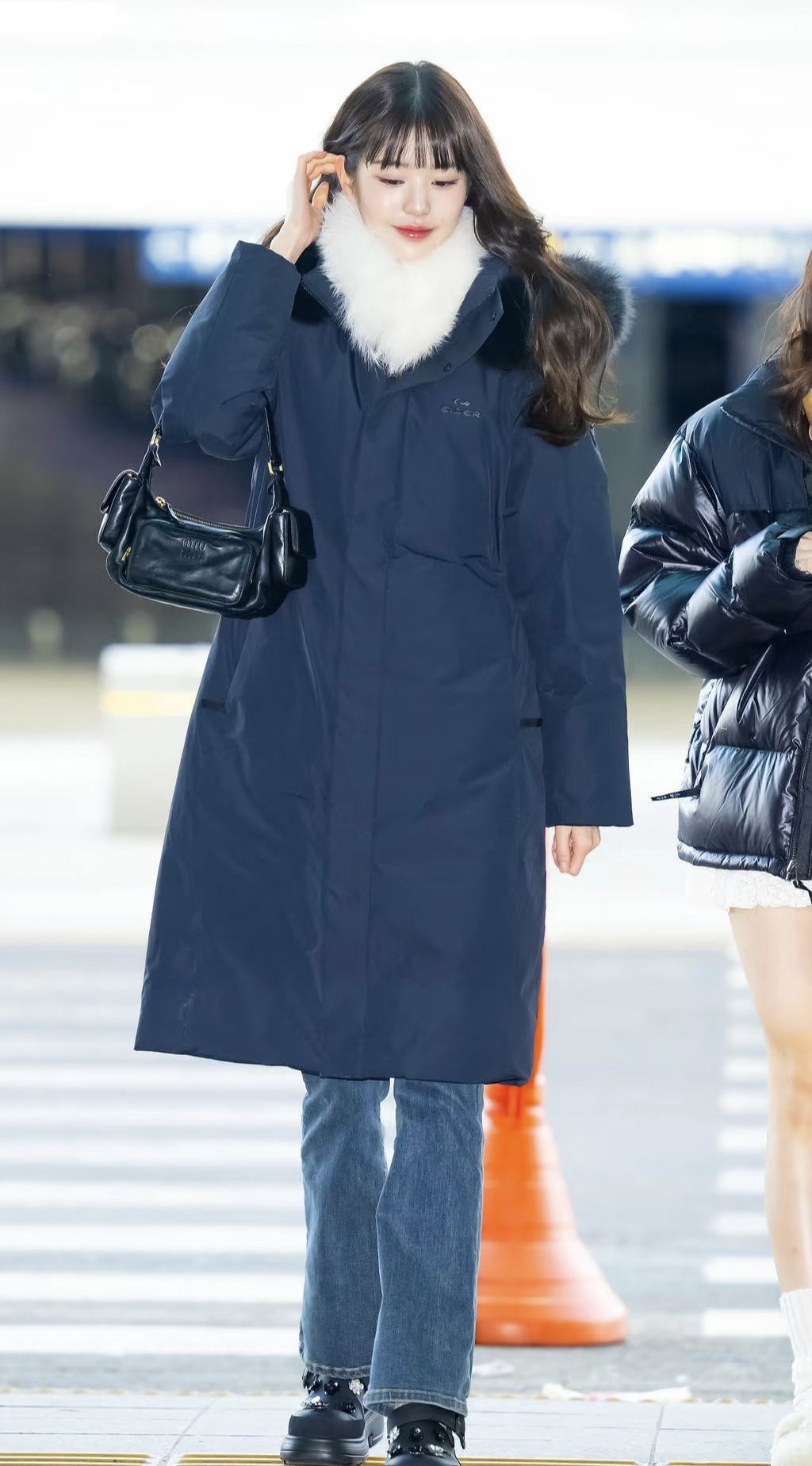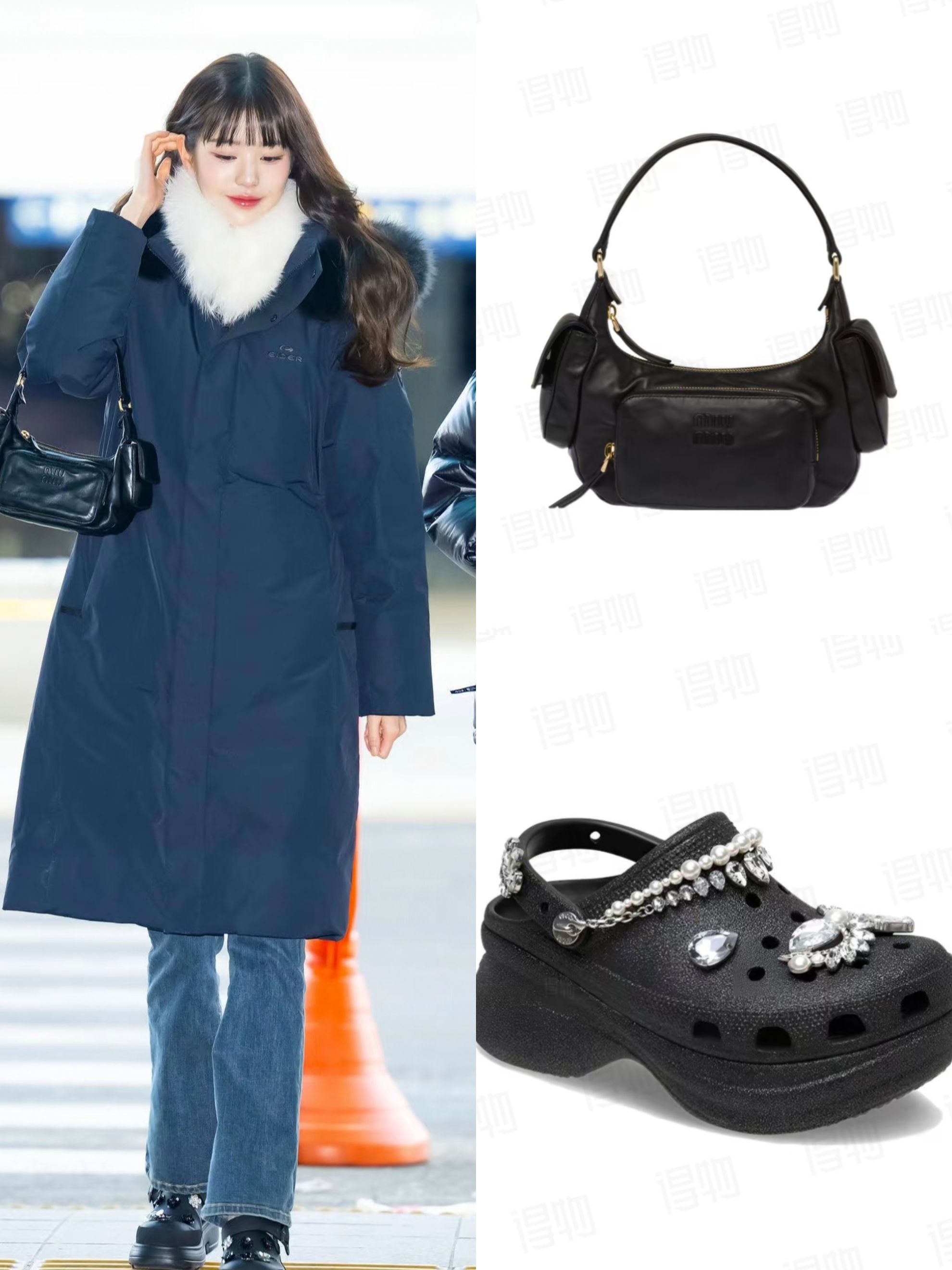 谁懂啊!在机场被张元英这套穿搭狠狠种草了🥹 藏青色长款羽绒服自带毛领,保暖又不臃肿,搭配微喇牛仔裤复古又显瘦;脚上的厚底洞洞鞋加了钻饰和珍珠链,甜酷感拉满,厚底还悄悄增高;再背上MiuMiu的黑色腋下包,整个造型精致又不刻意。 不管是赶飞机、通勤上学,还是日常出街,这套都能直接照搬,零下的天气也能时髦又暖和,完全不用担心显臃肿~