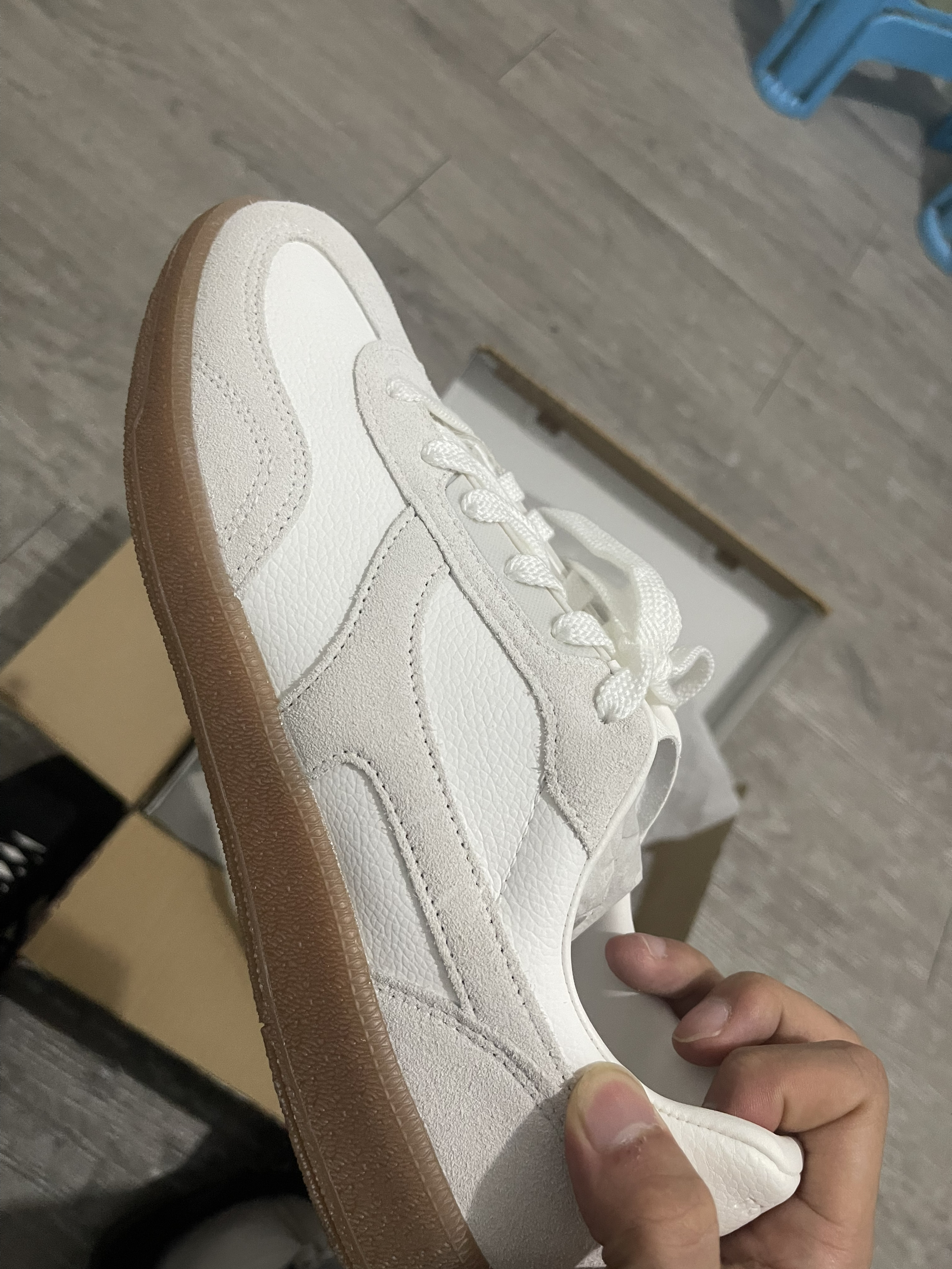 设计:经典德训鞋型,T型鞋头,复古百搭。 材质:合成革+网布拼接,兼顾透气与质感。 科技:COMFOAM中底,提供软弹脚感;全掌橡胶大底,防滑耐磨。