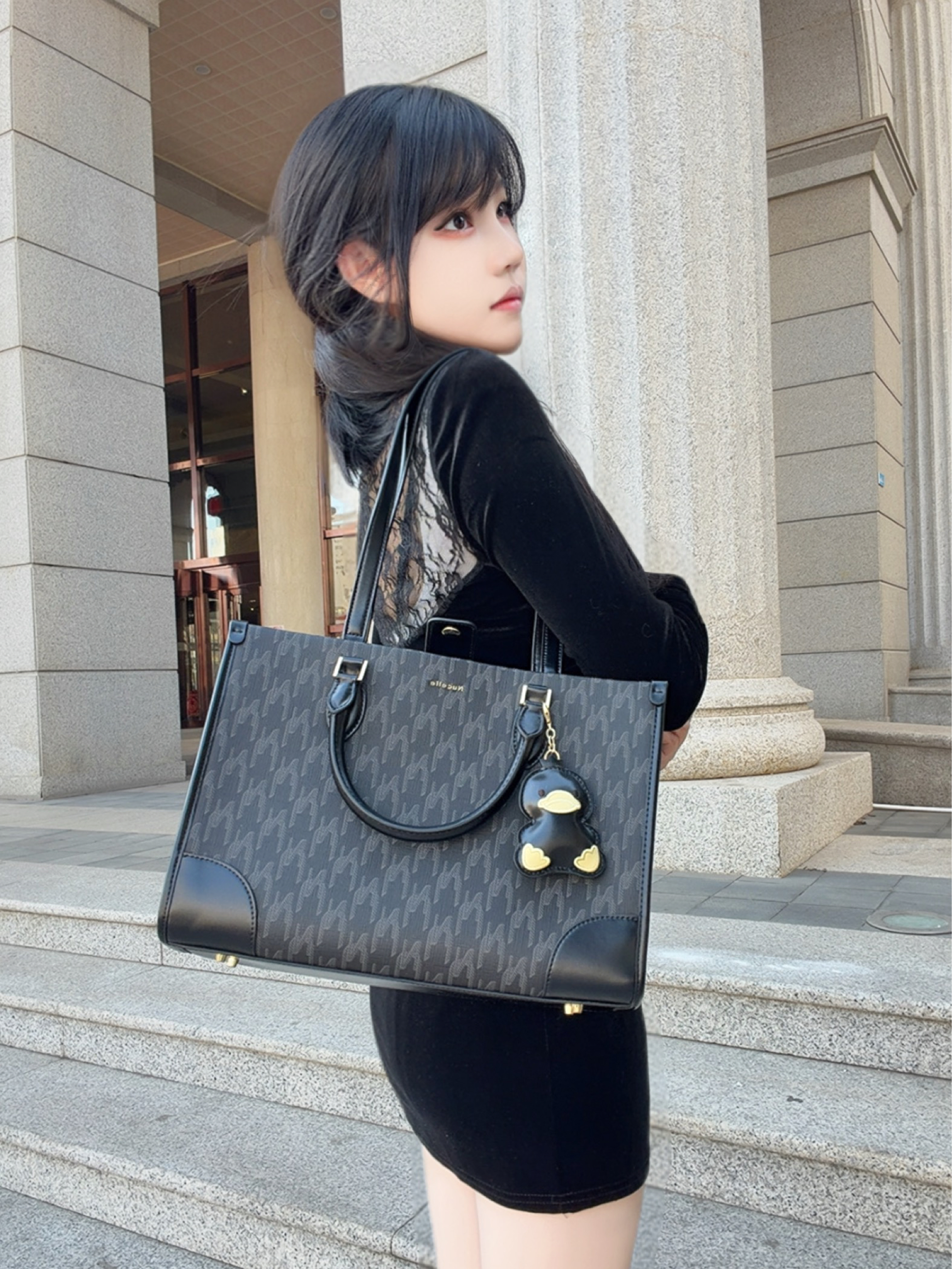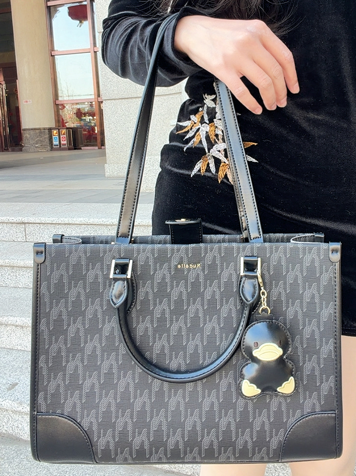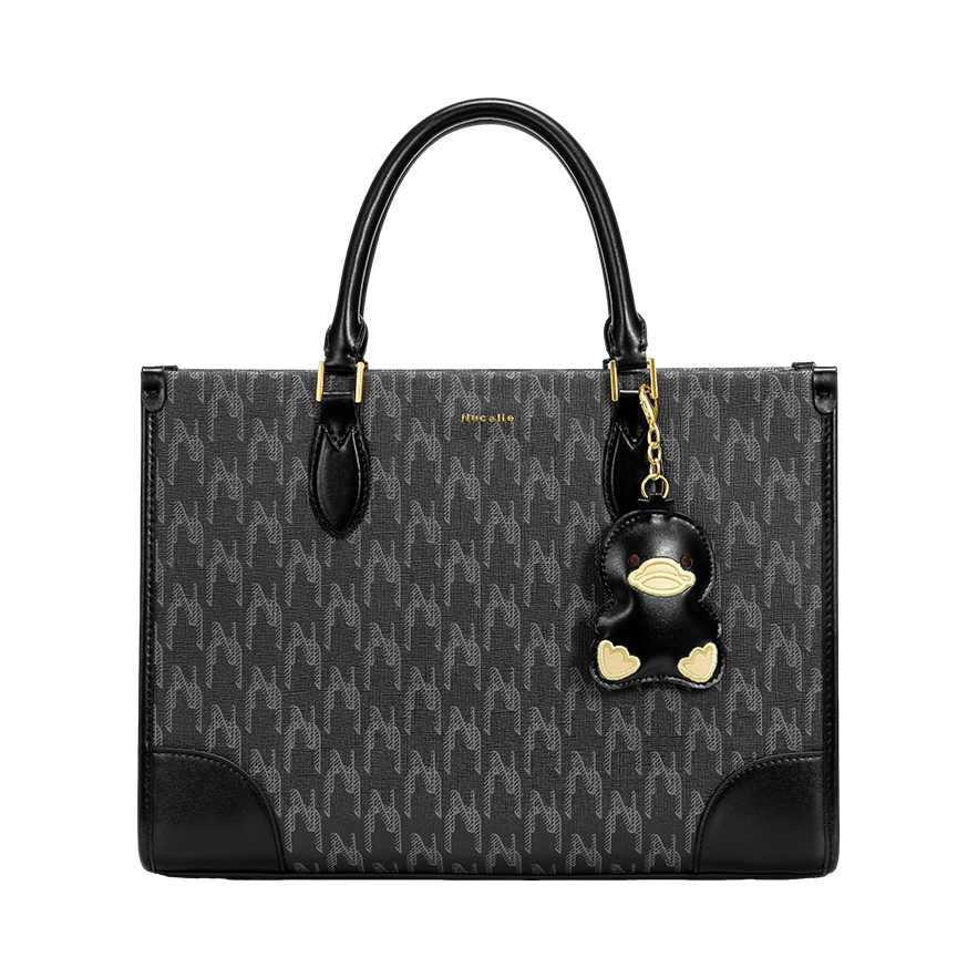 本篇笔记关联了NUCELLE/纽芝兰 时尚老花满印减龄萌鸭挂饰大容量上课通勤早八电脑包出游高中生托特包单肩手提包 星尘黑等商品,为用户提供真实的使用体验和购买参考。