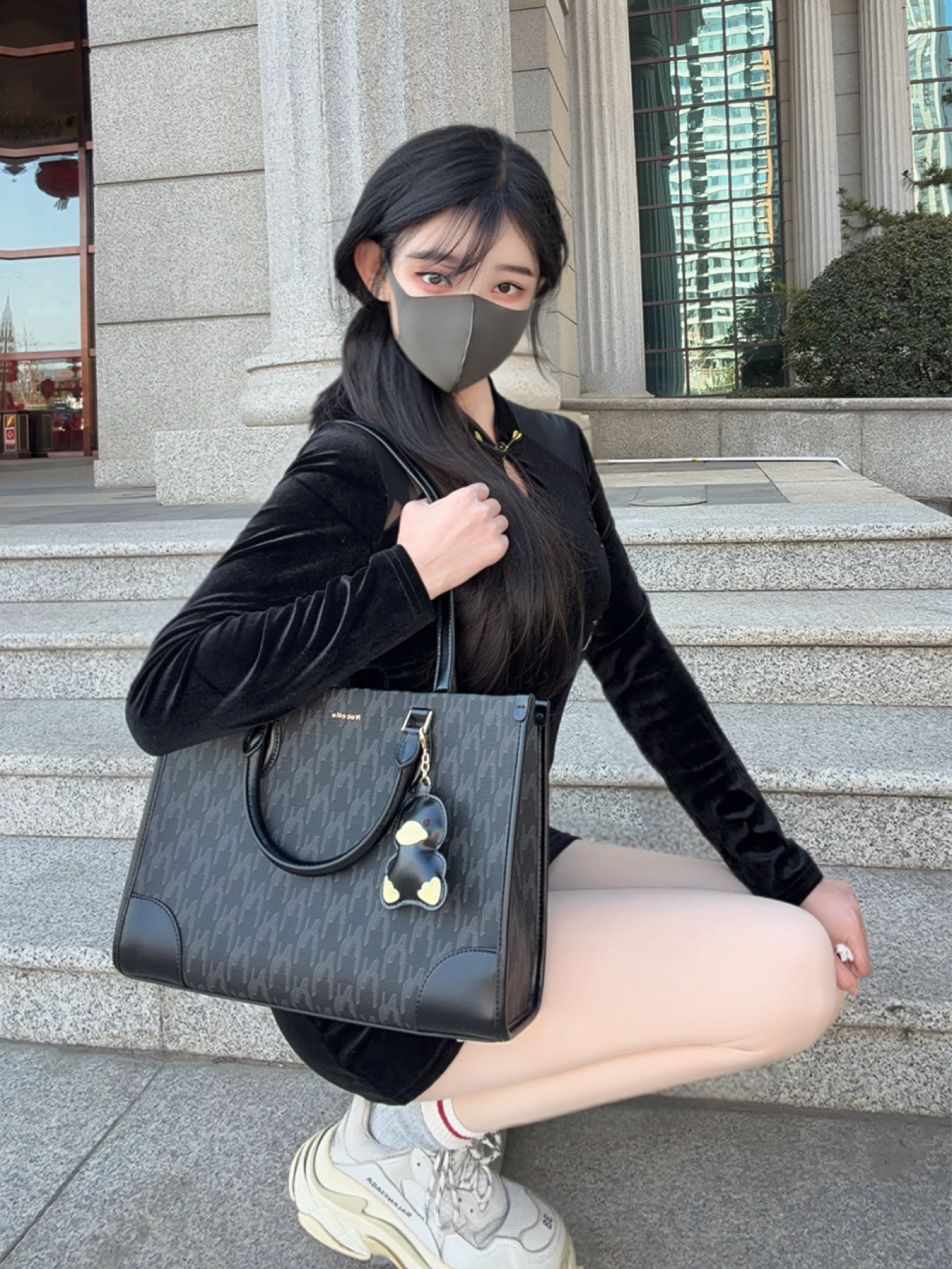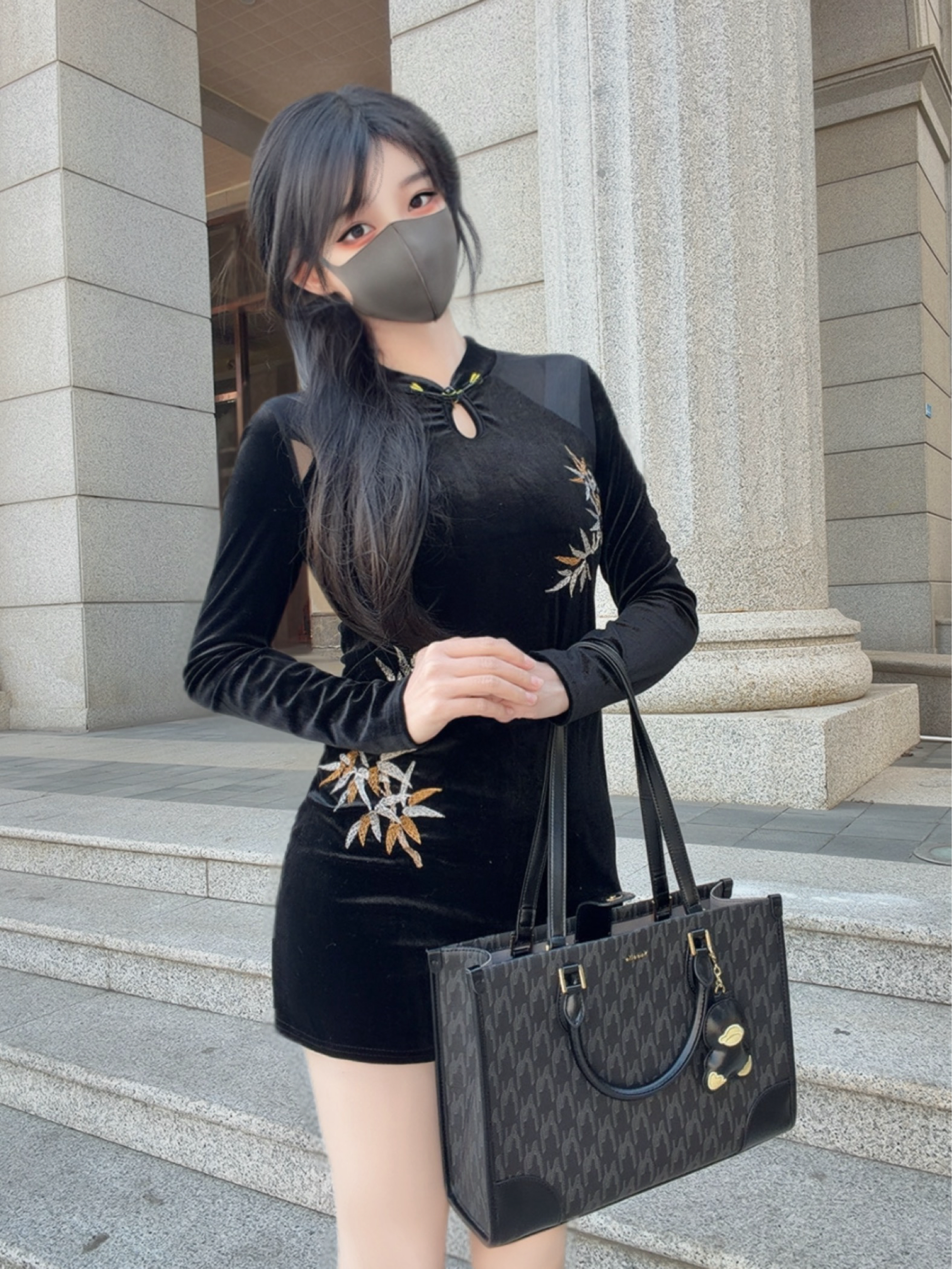 *今日设定🪪: 越是长大就越喜欢新中式风格,真的是属于血脉觉醒啦~ *搭配灵感💫: 黑色旗袍一上身,清冷气质满满的,又显瘦又气质👀 搭配大容量的托特包,经典老花图案很百搭~出门逛街时的东西随便装,随手一挎就有种慵懒的时髦感!