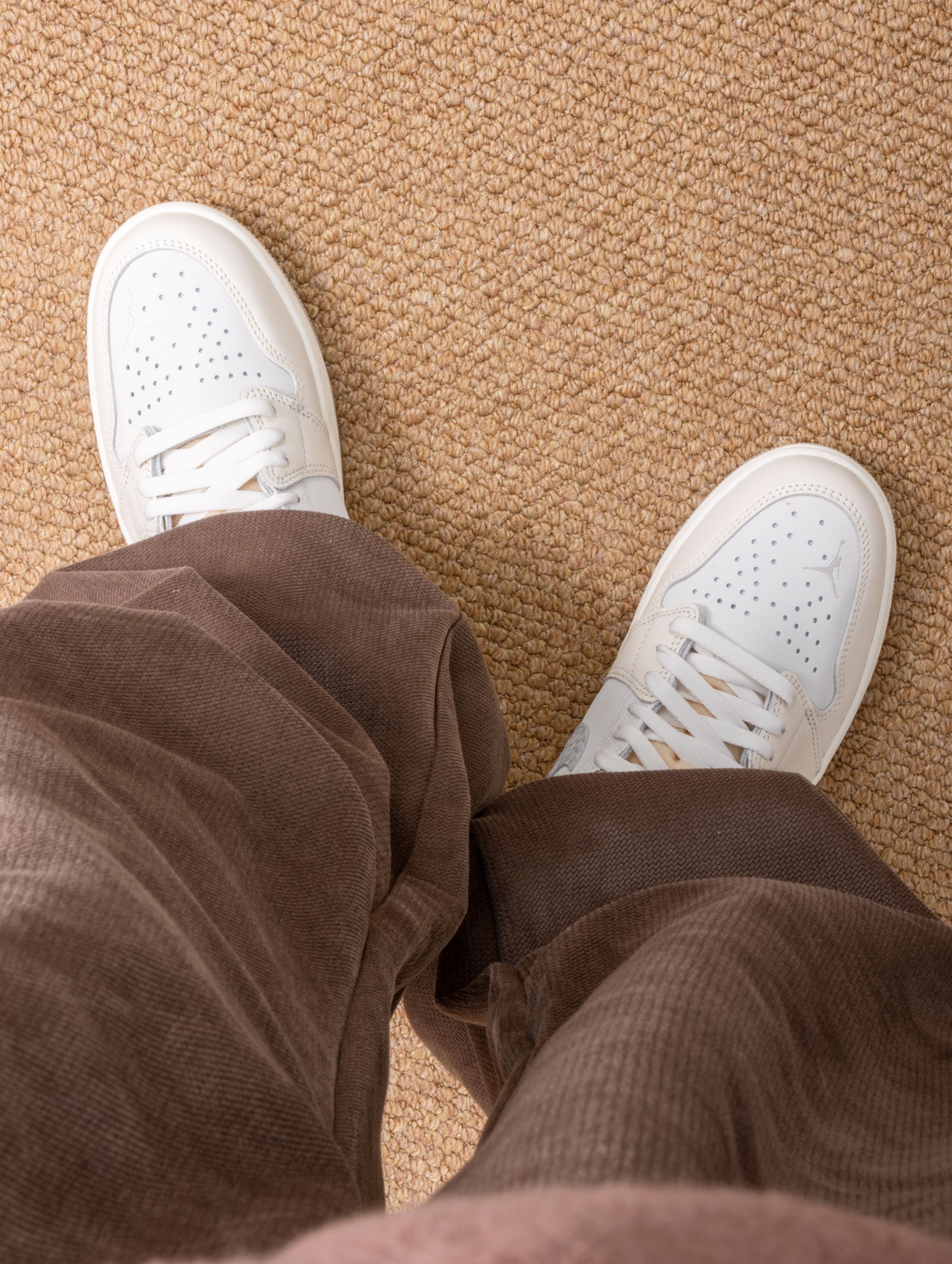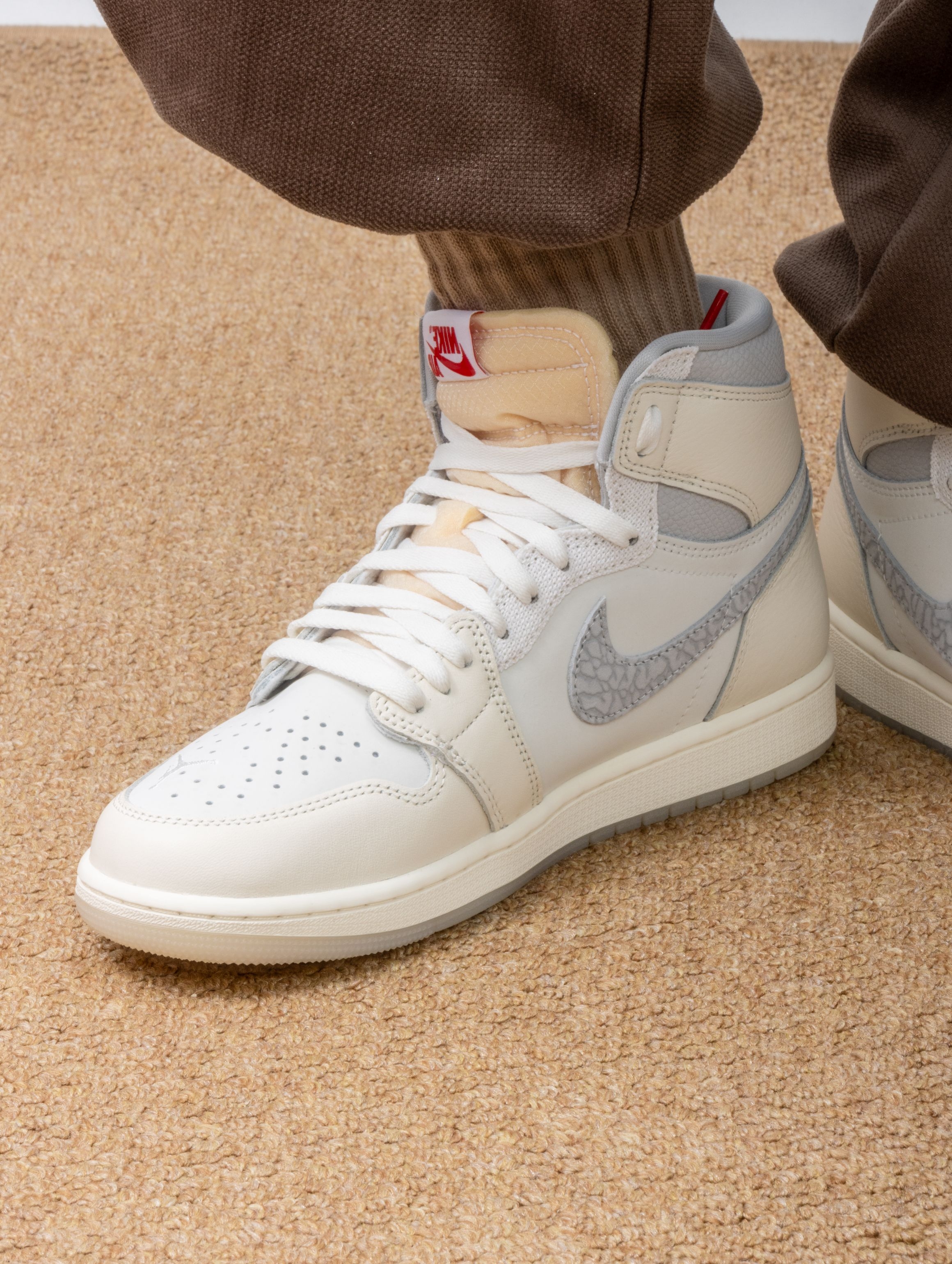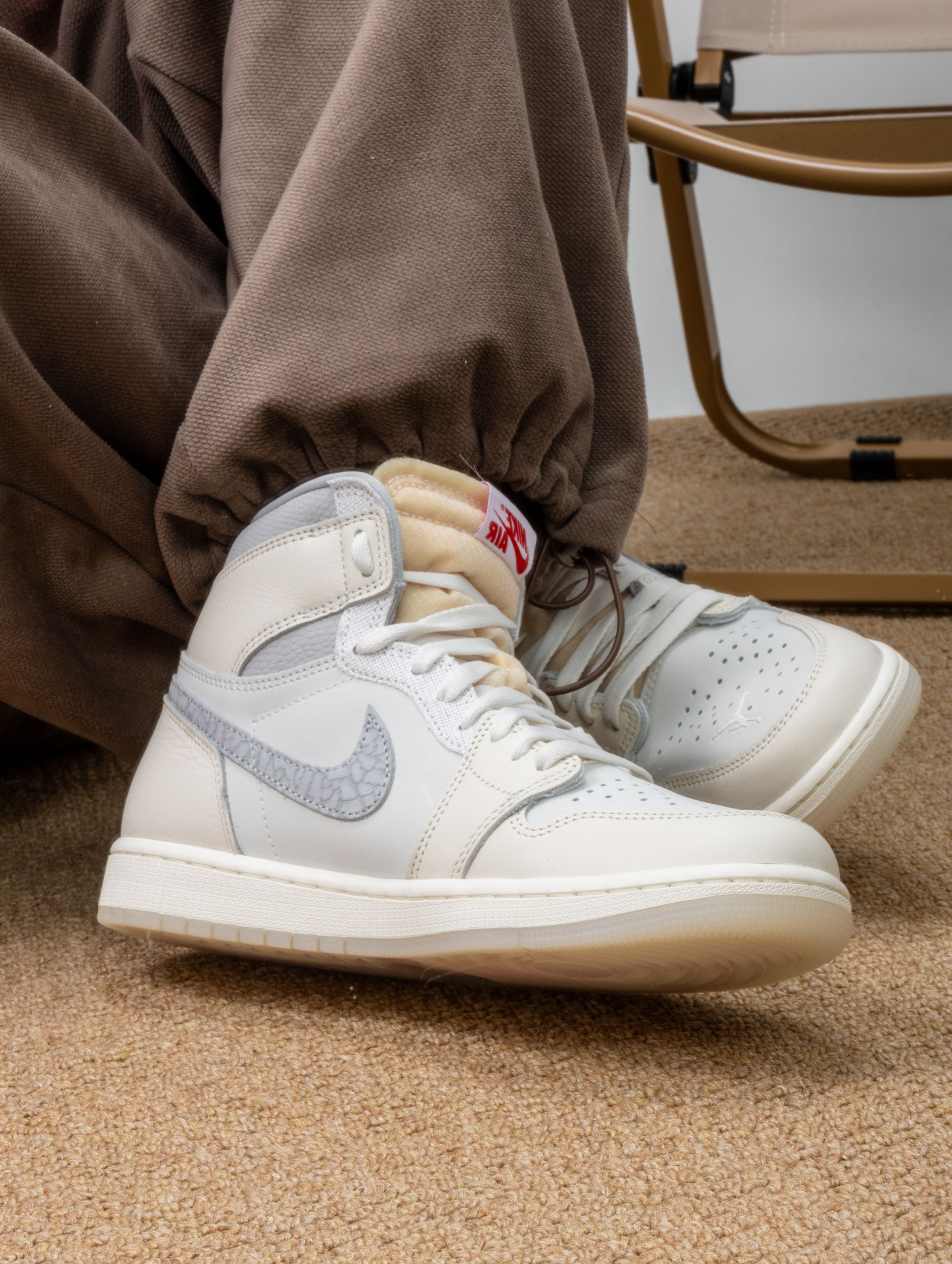 AJ1这双白灰真的属于“拿到手才懂系列”!实物比网图干净太多,Sail色鞋头配浅灰鞋帮,麂皮质感软得像刚开封的奶油。 上脚完全不需要磨合期,高帮裹住脚踝却一点也不勒,下午逛街几个小时脚底板都没抗议。 最近出门不知道穿什么就摸它出来,衣柜里随便捞件卫衣牛仔都能搭。