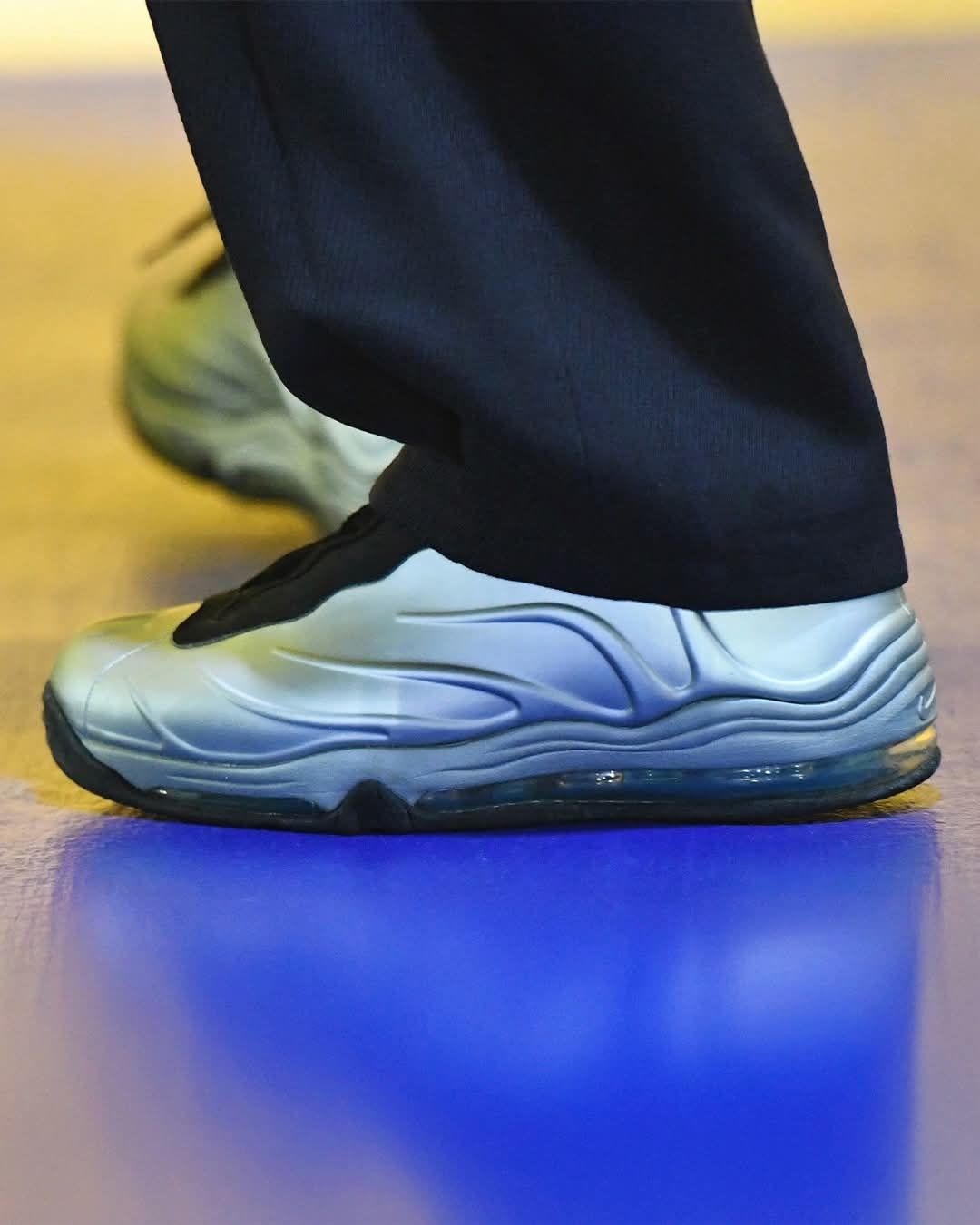 谁懂啊家人们!库里这波直接把情怀拉满了💥 上脚邓肯当年的经典战靴 Nike Total Foamposite Max,银黑配色+流线型发泡鞋面,复古篮球风直接拿捏。 这双鞋当年可是科技与颜值的代名词,标志性的Foamposite发泡材质+全掌Air Max气垫,现在看依旧能打。库里用宽松毛衣+阔腿裤搭配,把篮球鞋穿出了街头潮流感,完美平衡了运动属性与复古腔调。 从三分线到潮流圈,库里的鞋品...