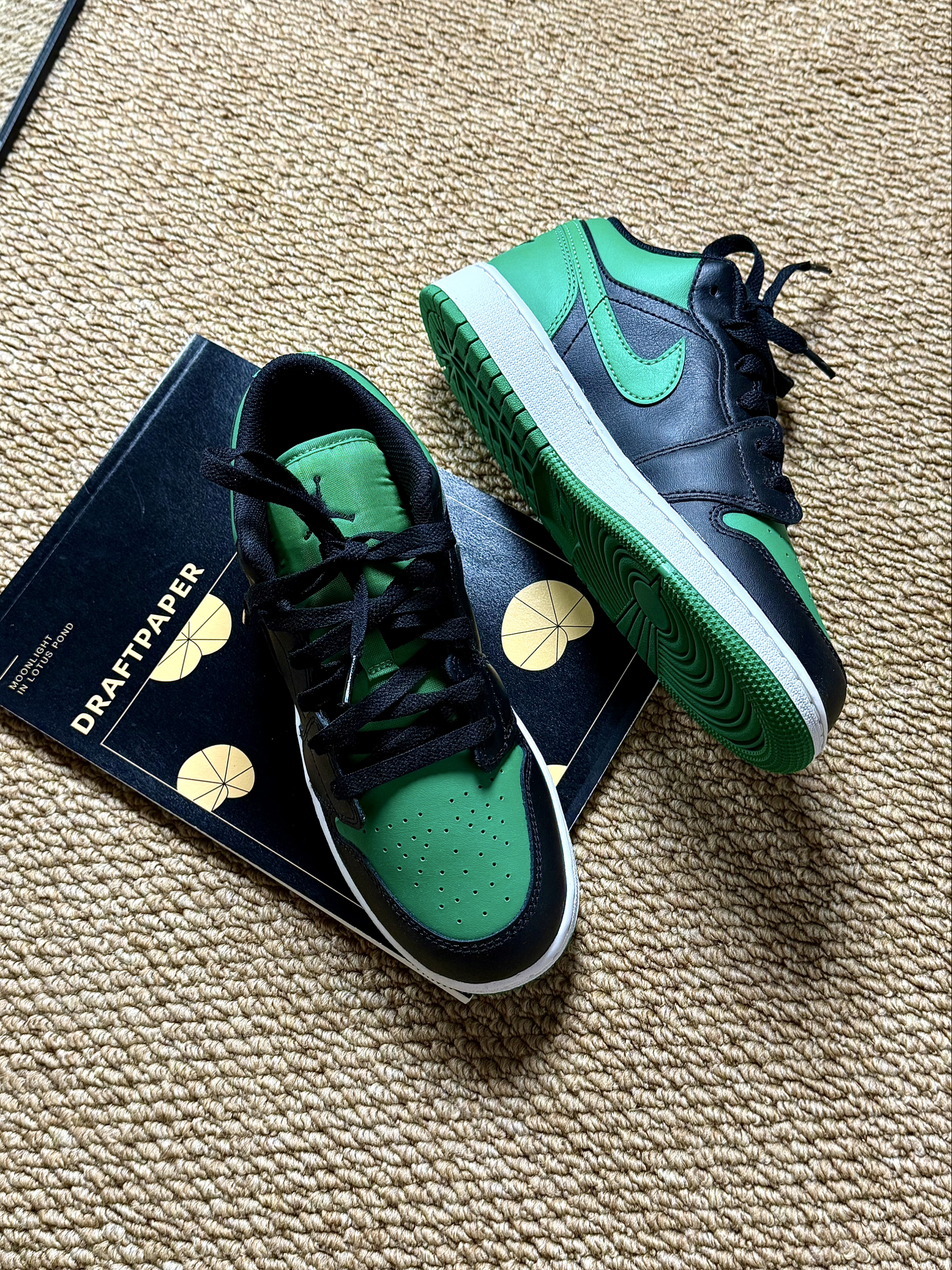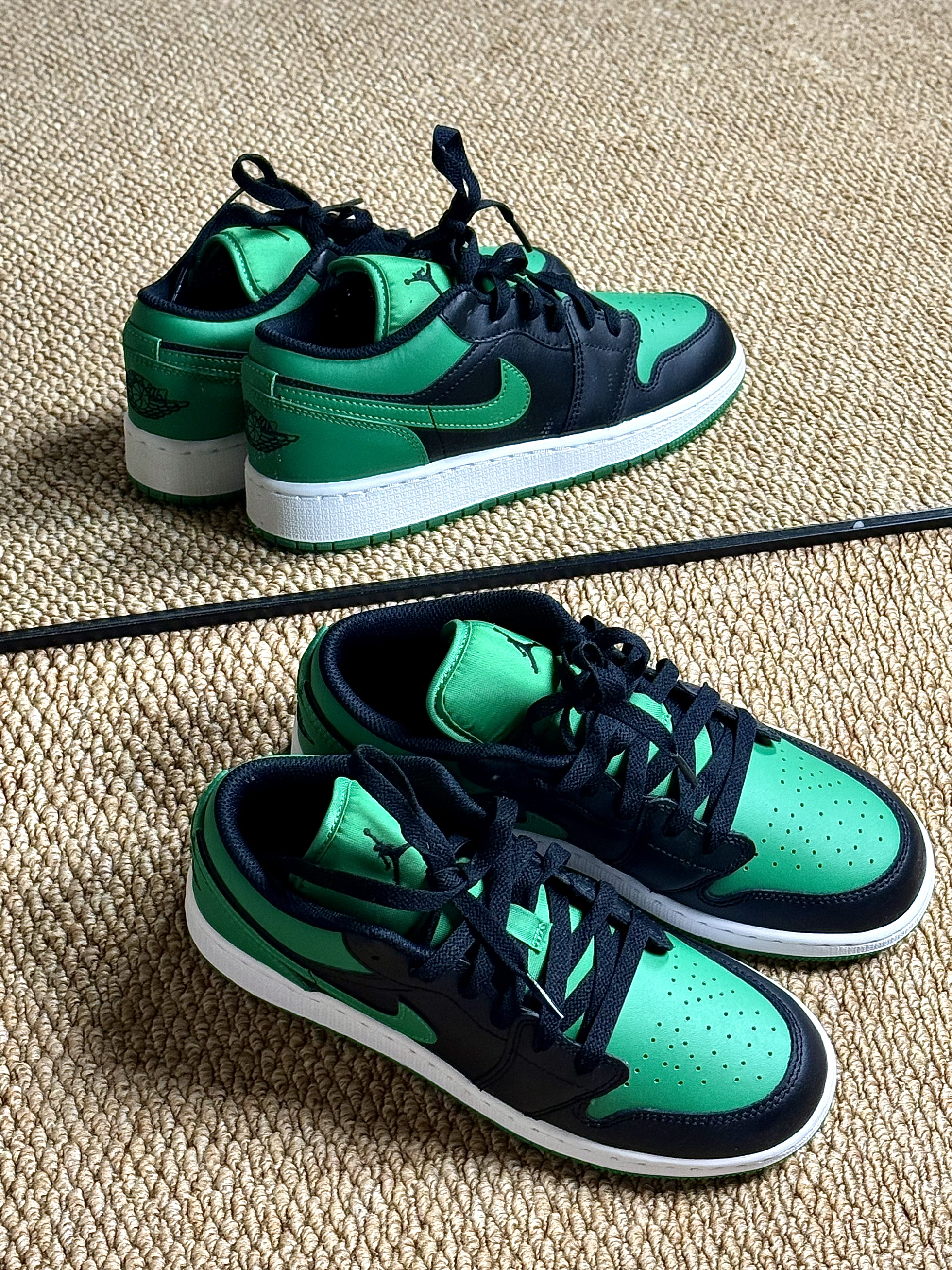 这双AJ1 Low黑绿我已经穿了整整两周,今天就来个掏心窝子的实测,不吹不黑,帮你避坑! ✅ 优点:颜值与实用性双在线 1. 配色真的绝 黑绿撞色经典又高级,做旧处理比OG款更有复古感,而且百搭。 2. 低帮设计太友好 对小个子和粗腿星人特别友好,露出脚踝的设计能在视觉上拉长腿型,比高帮AJ1显瘦太多,春夏穿也不闷脚。 3. 皮质质感在线 荔枝纹皮革摸起来很有质感,走线工整,细节处的飞人Logo和...