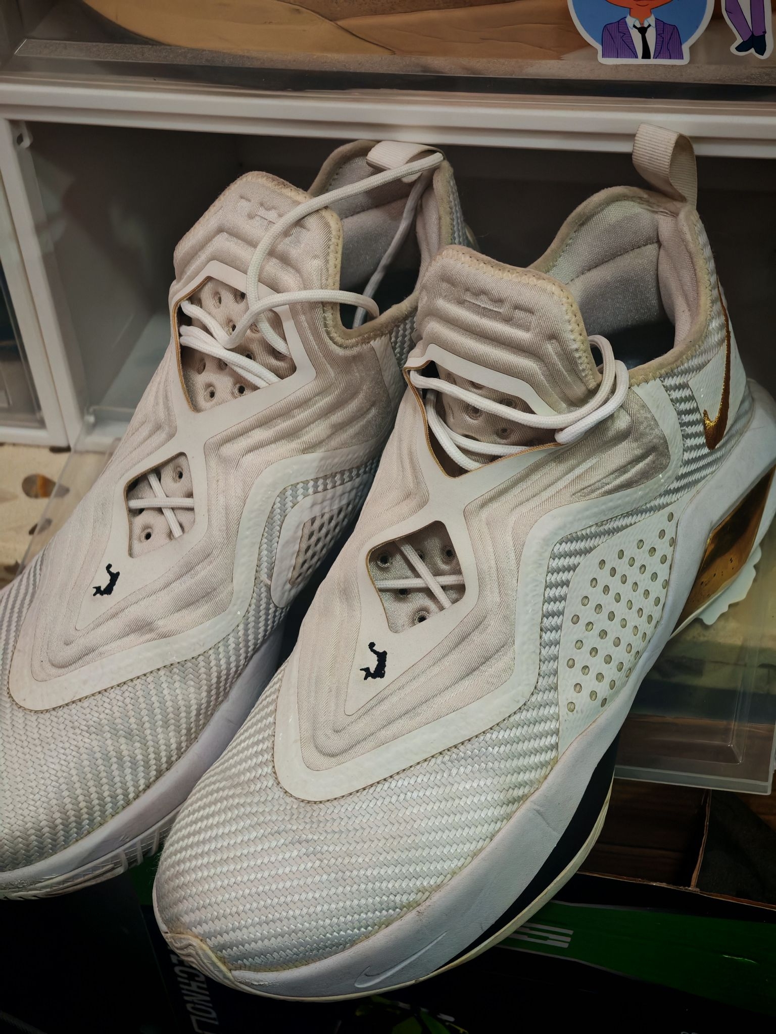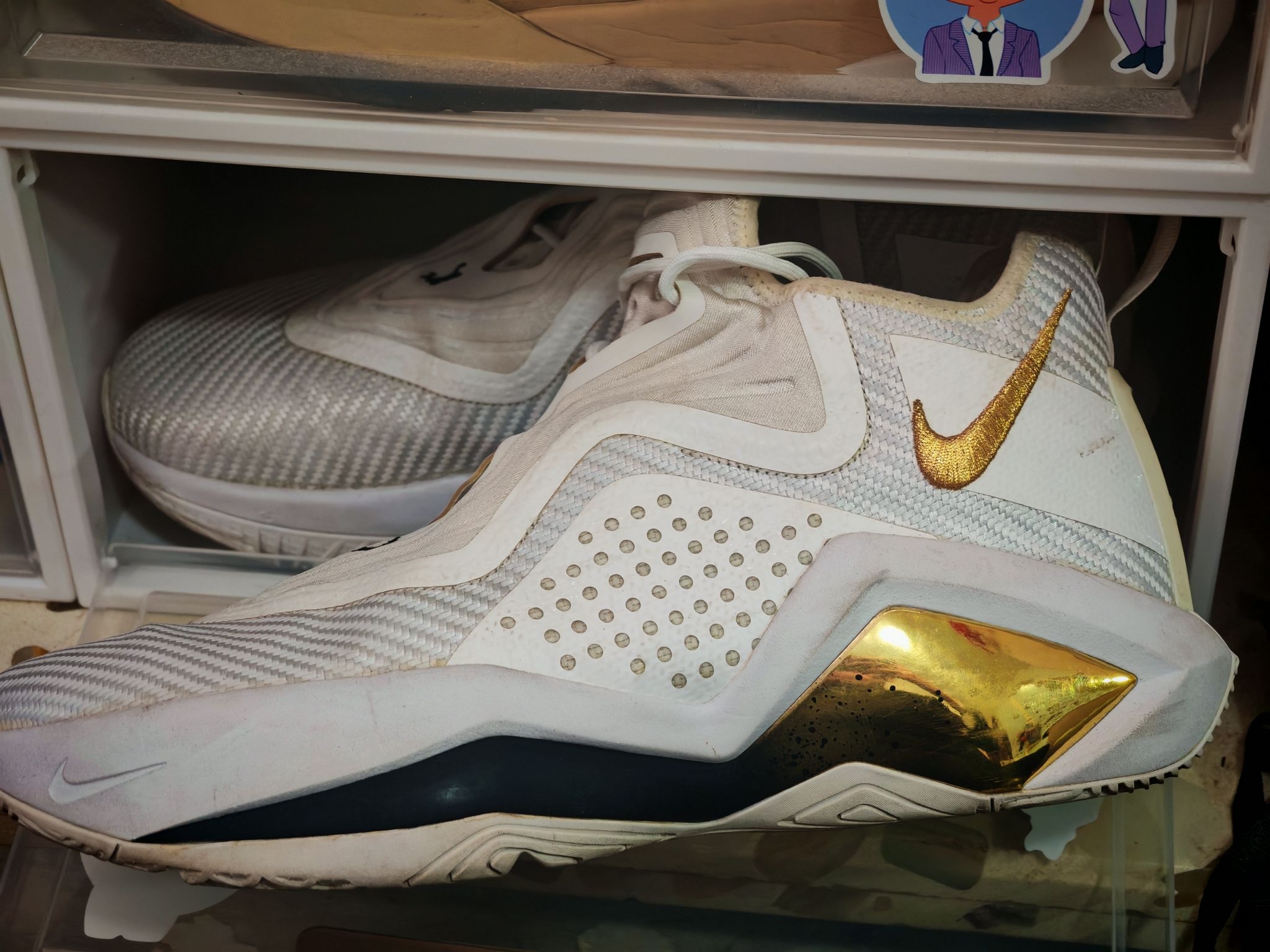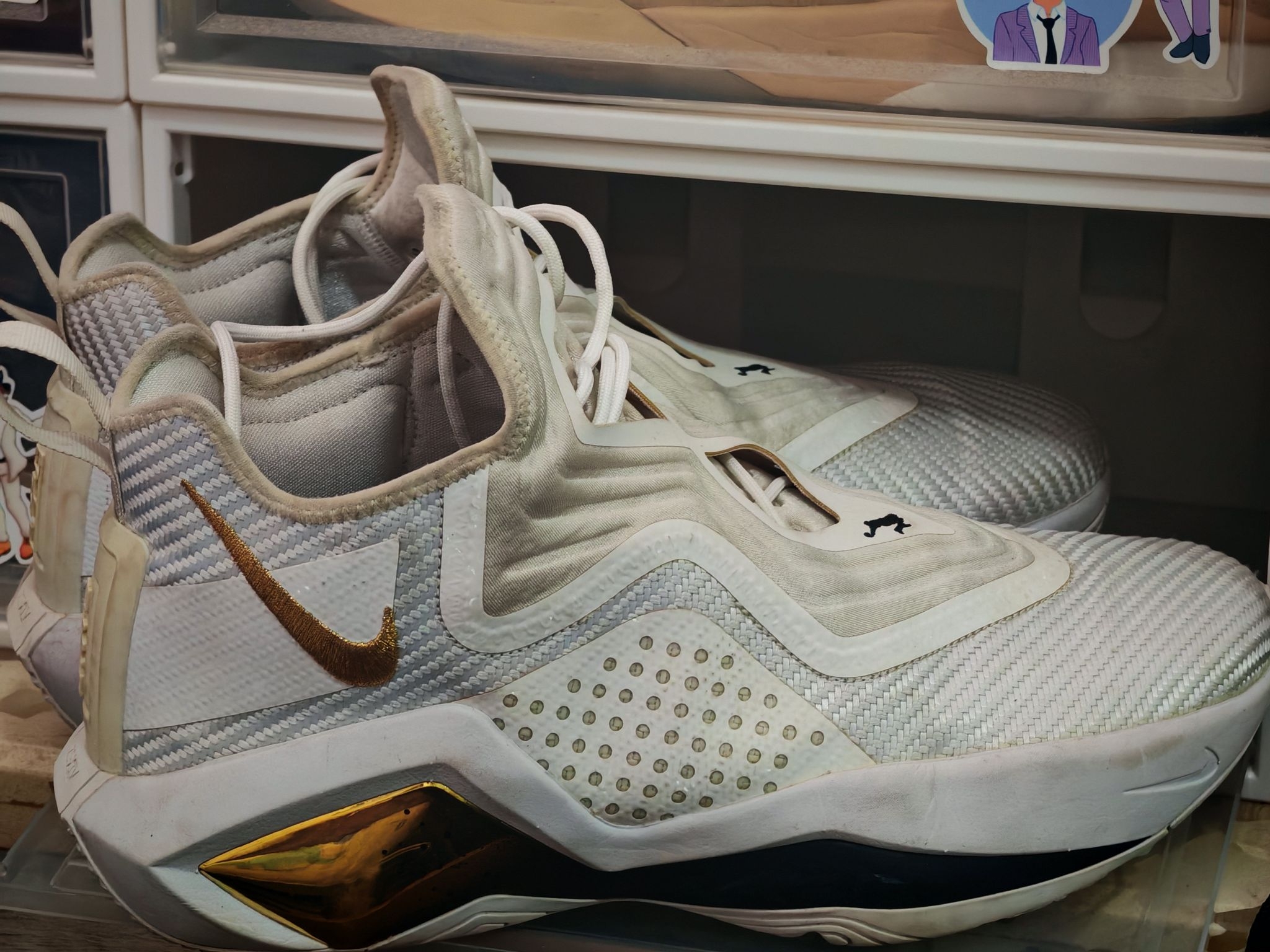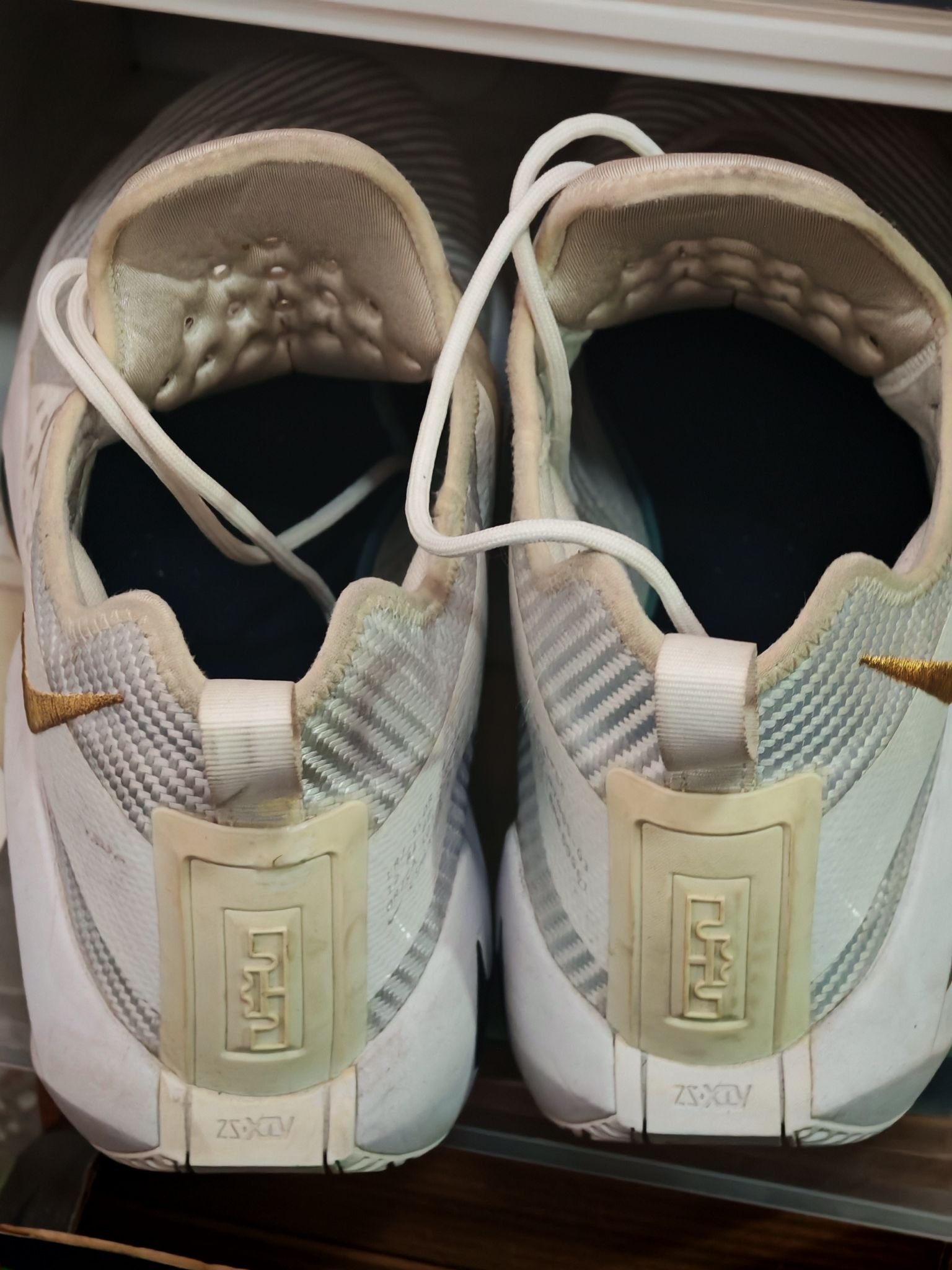 👟球鞋名称:耐克詹姆斯士兵14ID(配色白金色由自己定制:灵感来源于NBA总决赛奥布莱恩杯的金色以及骑士2018年总决赛出场服) 🔍分享理由:作为以前詹姆斯支线的常青树🌲鞋款,以它优异的实战性能,均衡的前后掌气垫配置常年受实战党的喜爱,我这双士兵14也不例外,前掌扇形后掌马蹄形的超大ZOOM,脚感澎湃,当年在NBA也有不少NBA球员选择上脚它,比如绿军的汤普森,富尔茨等 🤔整体感受:包裹十分紧...