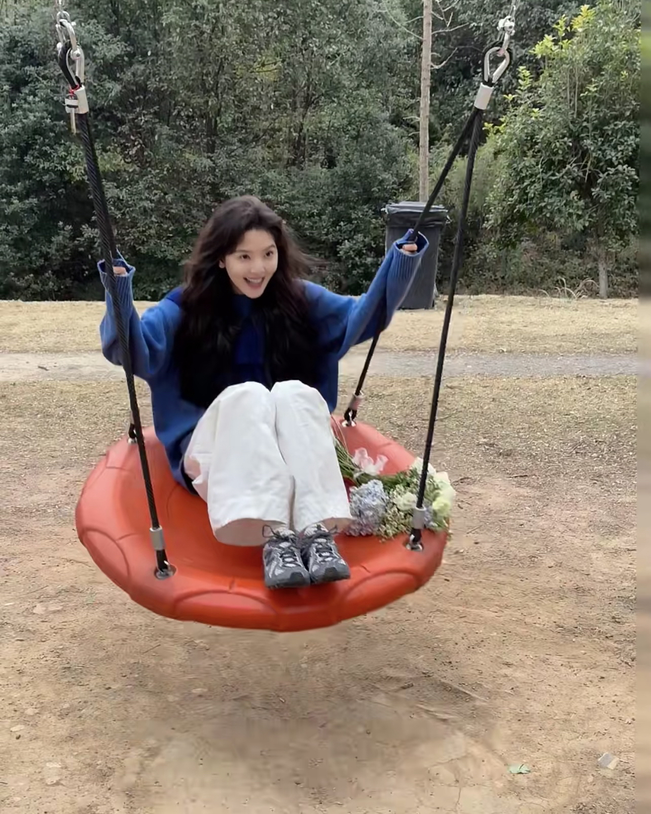 楠楠私服 身穿克莱因蓝假两件毛衣➕白色裤➕新百伦鞋子 好青春啊 笑起来这溢出屏幕的生命力谁能拒绝 太治愈啦 妥妥青春女大 #章若楠 #new balance鞋子 #年末聚会女明星穿搭