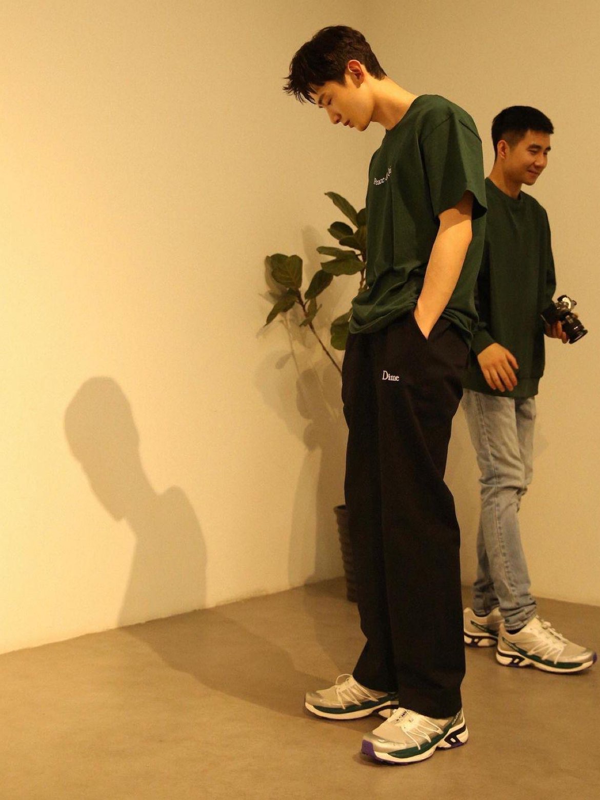 简约T恤搭配黑色裤子加上跑步鞋 简单休闲也不失时尚 裤子:Dime #Dime 鞋子:They Are X Salomon XT-Wings 2低帮跑步鞋 灰色 413139 #SALOMON 🕊⛰ #白敬亭的共享穿搭库