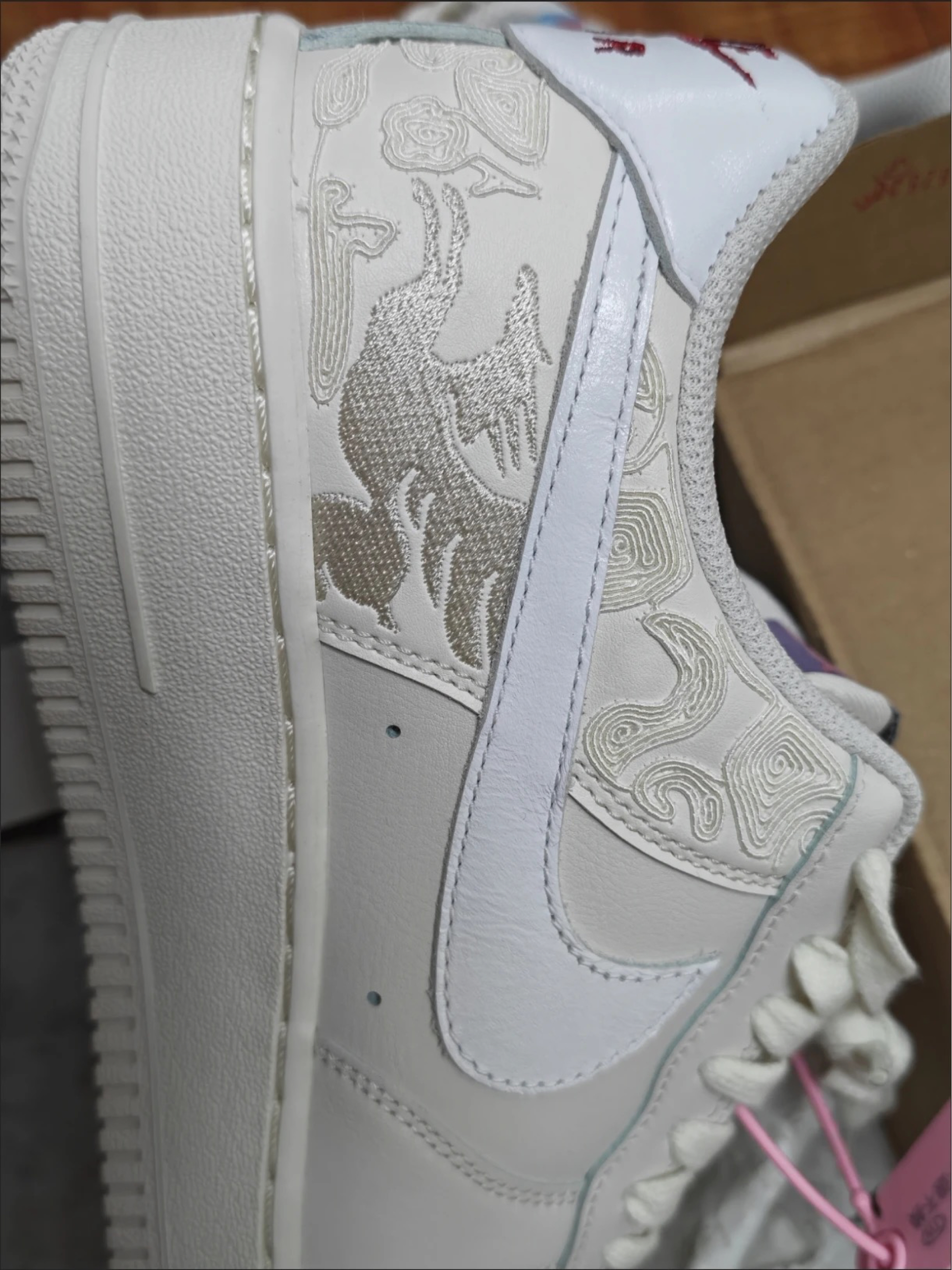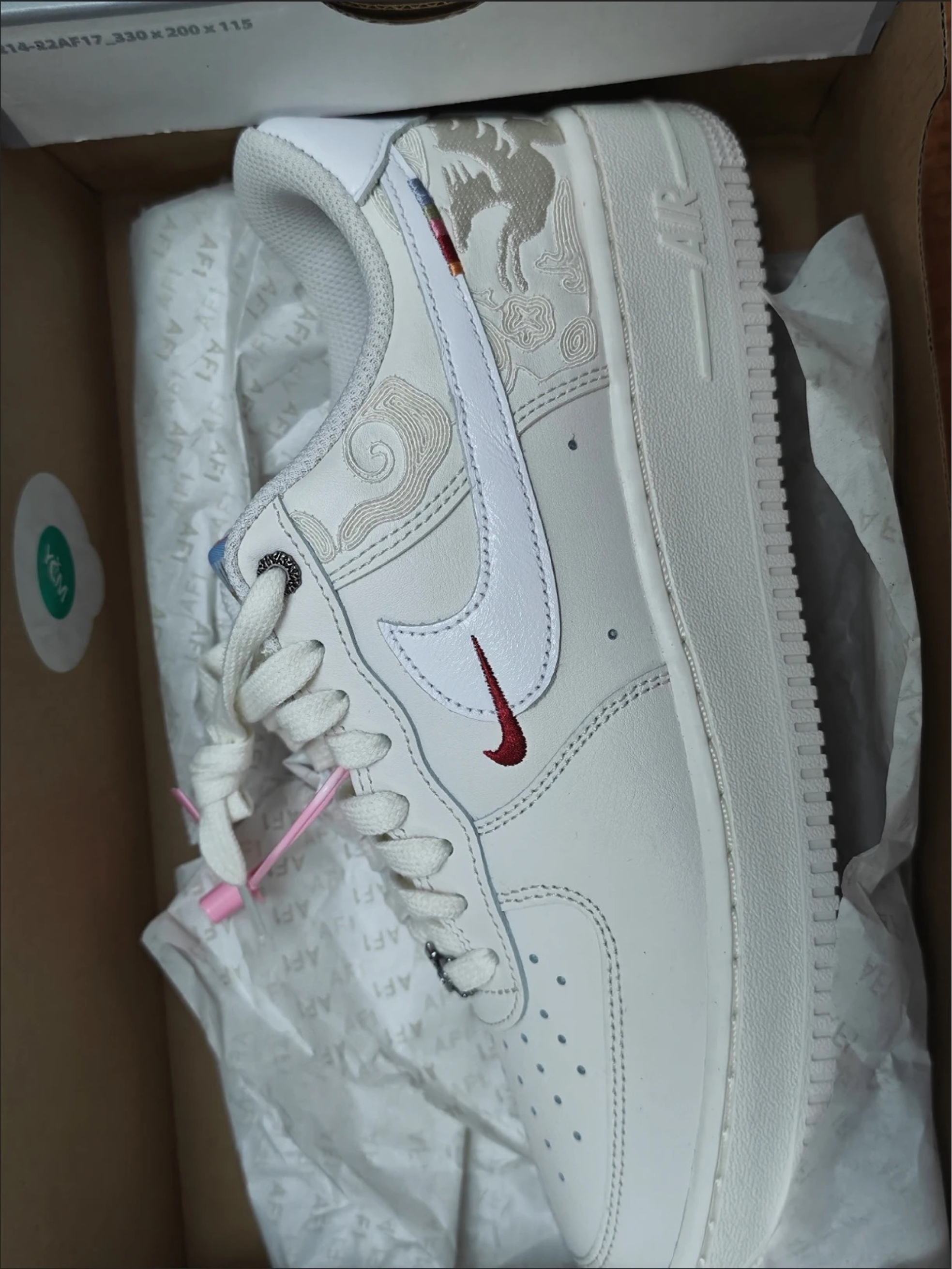 这双AF1真的是新年鞋款里的黑马!奶白皮革+国风刺绣,质感直接拉满。 • 细节控狂喜:鞋身的祥云、奔马刺绣精致不廉价,红白小勾点睛,后跟彩色织带暗藏巧思,上脚自带“马上有好运”的新年buff。 • 百搭不挑人:经典空军版型,奶白底色适配所有风格,牛仔裤、运动裤、工装裤随便搭,日常通勤、拜年出街都能hold住。 • 正品保障:识货验真渠道靠谱,限定款入手不踩雷,自穿有面、收藏有值,新年穿新鞋,...